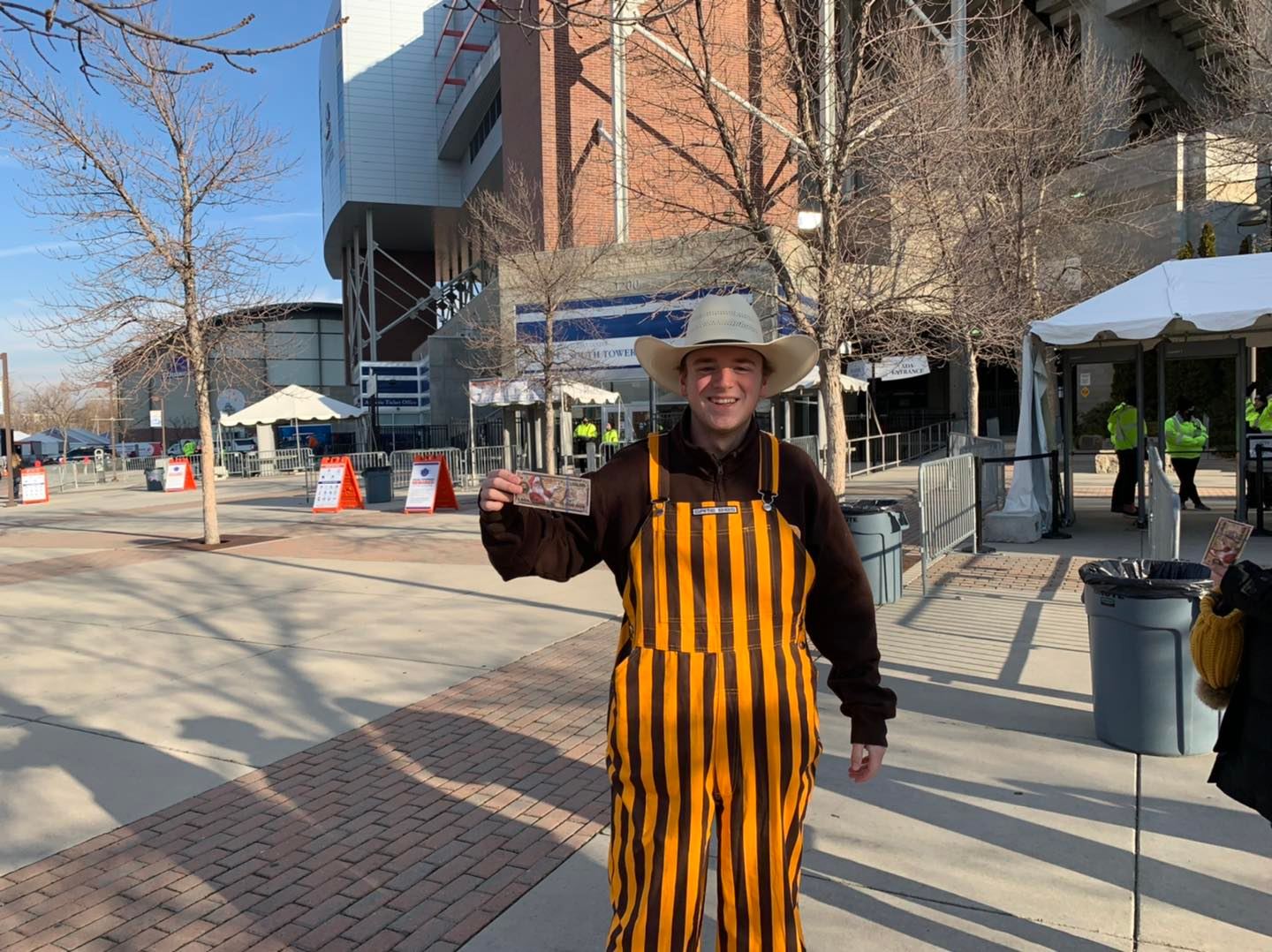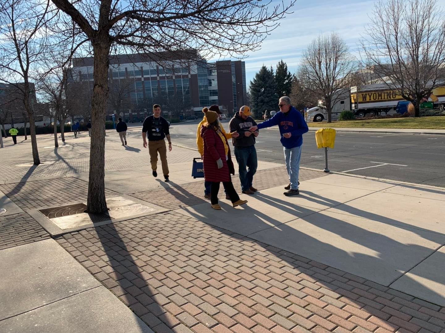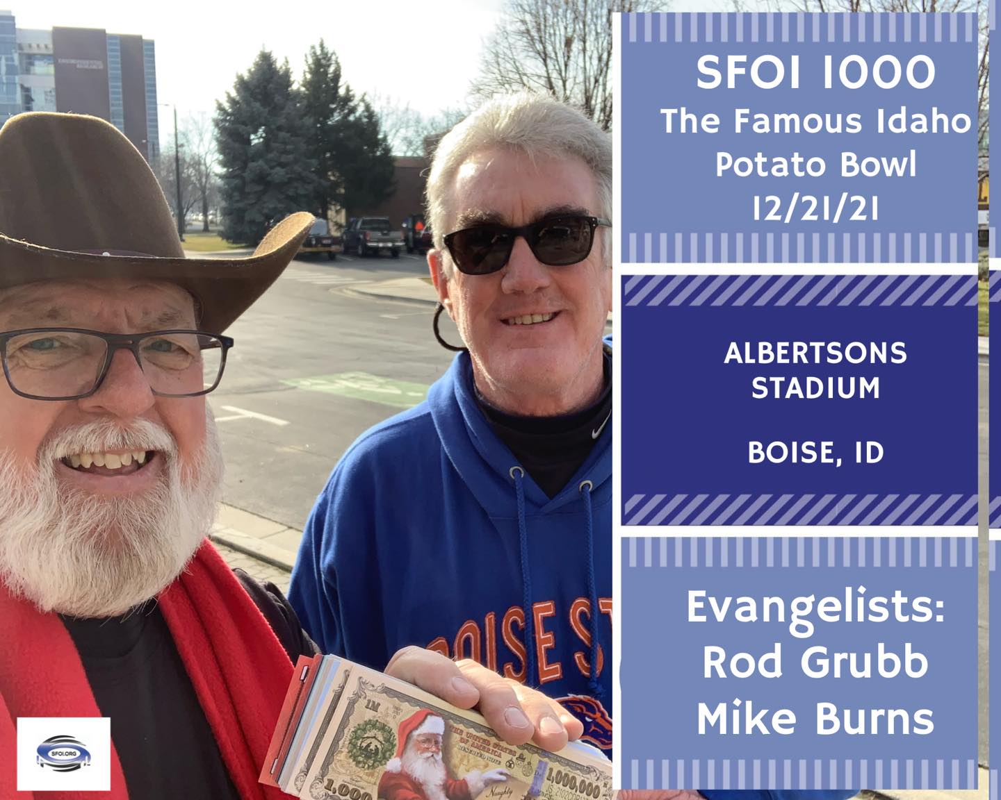 Today’s outreach, at Albertsons Stadium, marked our 6th Sports Fan Outreach International (SFOI) football outreach of the 2021 season at Albertsons Stadium. My partner Mike Burns and I were very thankful for the 1:30om kick-off for today’s Potato Bowl game featuring the Wyoming Cowboys and the Kent State Golden Flashes. With the exception of one game this year, all of our previous games this season, were 7pm kickoffs. Because this was a daytime game, we were blessed with fairly pleasant December temps in the 40’s, with mostly clear skies and no wind.