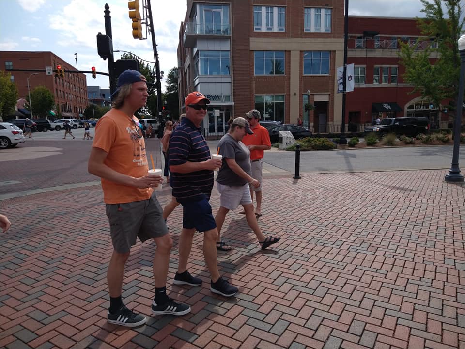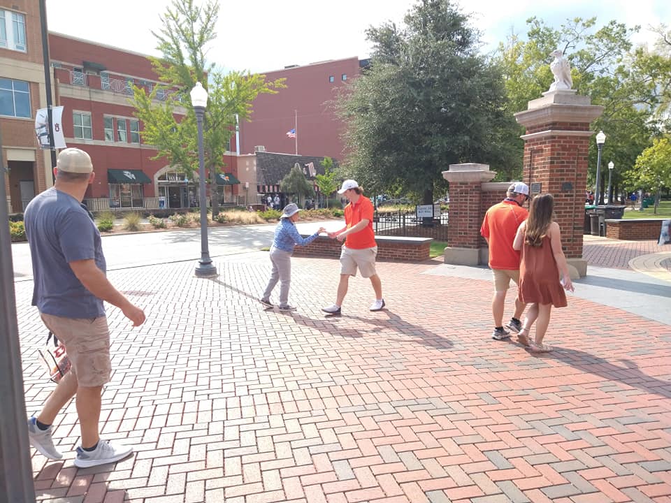 Scott and I set up on the sidewalk beside Toomer's Drugs and as Scott began to preach I offered Gospel tracts to those passing by. Hundreds of fans passed our location in the 2 hours or so that we preached and gave away Gospel tracts. There were several people that expressed their thankfulness that we were there and as usual a few were not so glad.