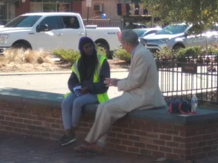 Blessed to have had some other Christians walk up who were witnessing themselves. Was encouraged and was able to pray with them and encourage with them in Word. We all saw how this work given is not just for the sinner, but for our benefit.  Praise the Lord!