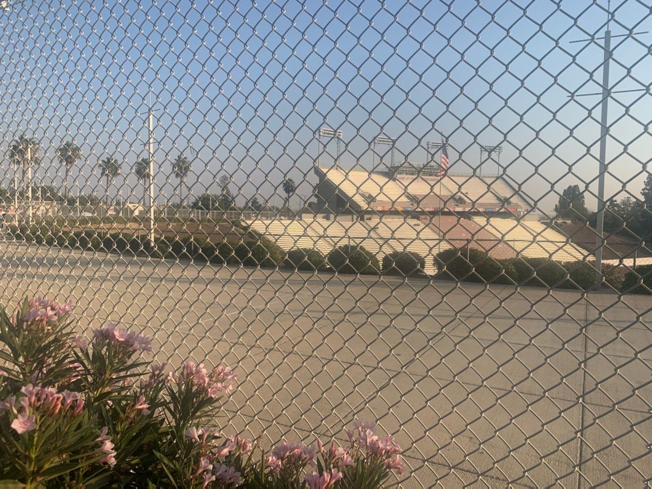 Photo shot from the east side, fans move from the east to the west I assume to avoid being in the sun. There is a place on the north side (not shown as I'm taking this photo from the south side) where I hope to preach as the fans walk to west side.
