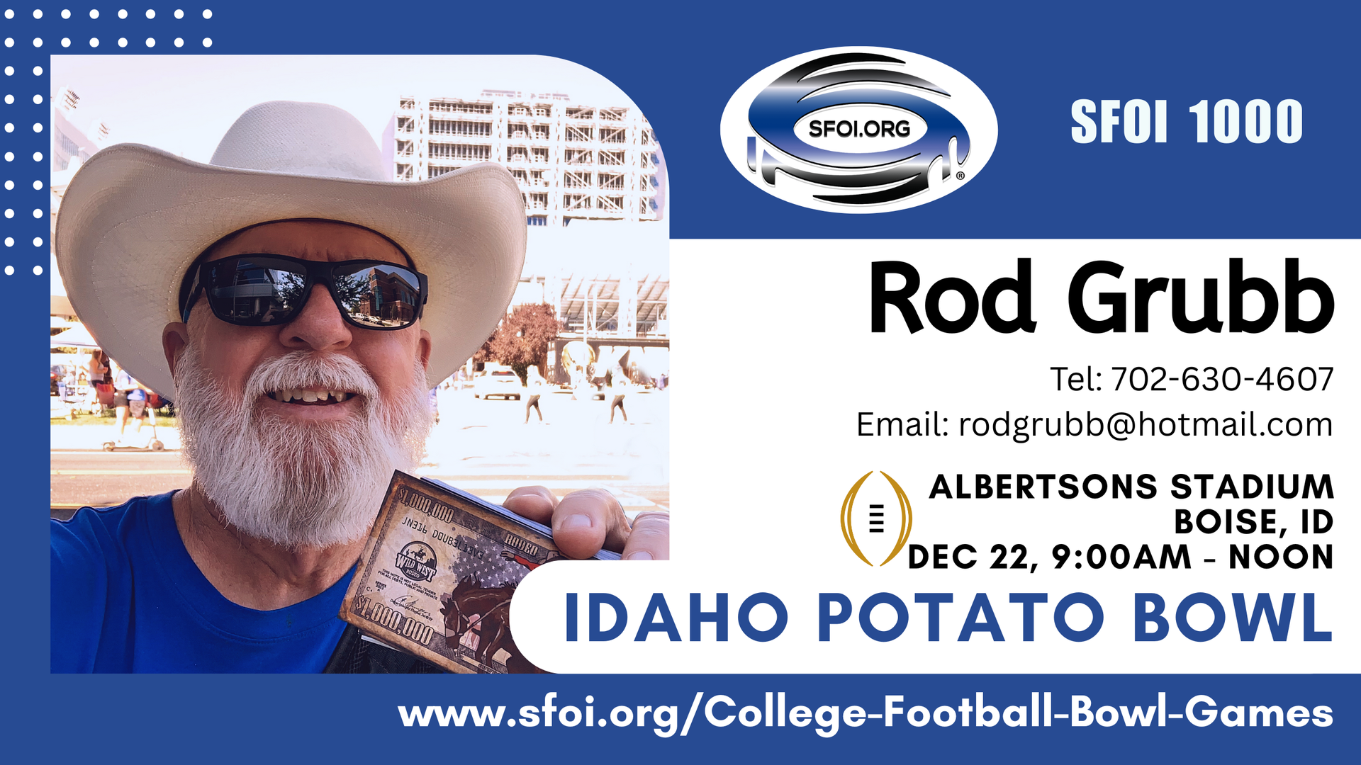 SFOI Famous Idaho Potato Bowl #SFOI1000 Outreach — Open-Air Video (12/22/2025)
