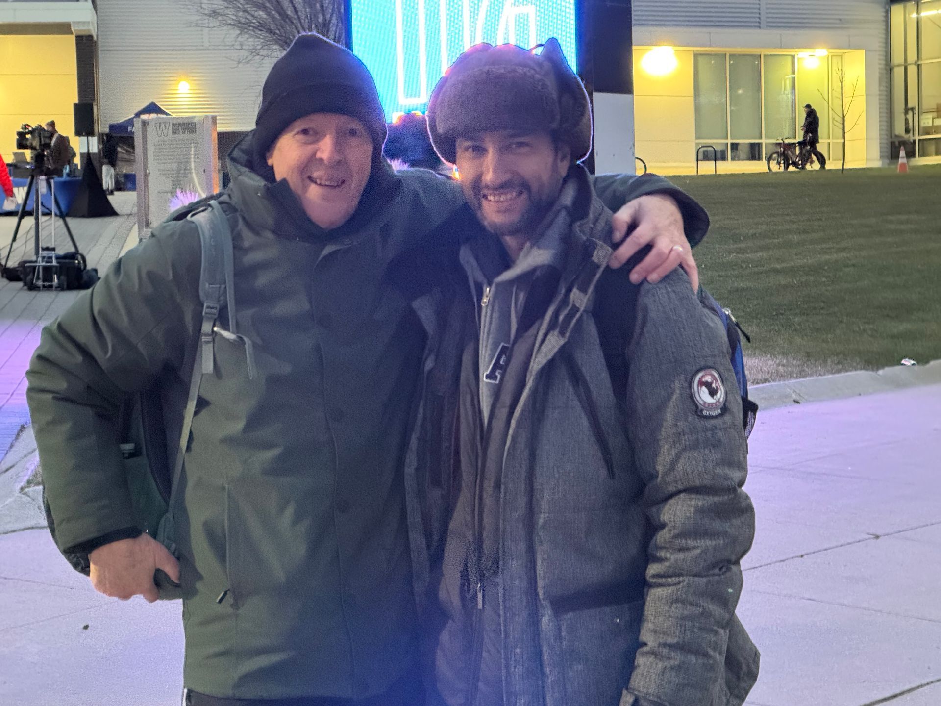 The Grey Cup '25 outreach team and hosts from left to right: Ernie Barnum, Stirling Long, Daniel Brayssassew, Nick O'Berry and hosts Nancy and Brian. Rev. Bill Adams took the picture