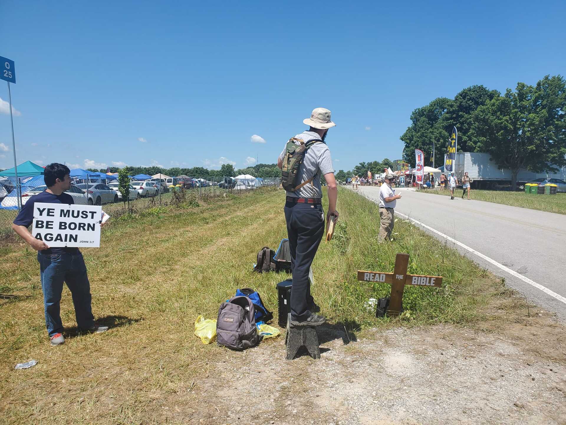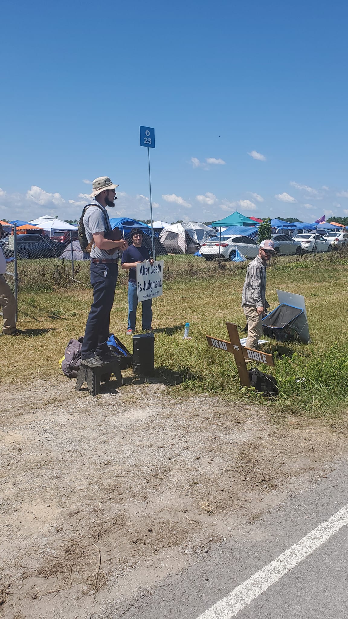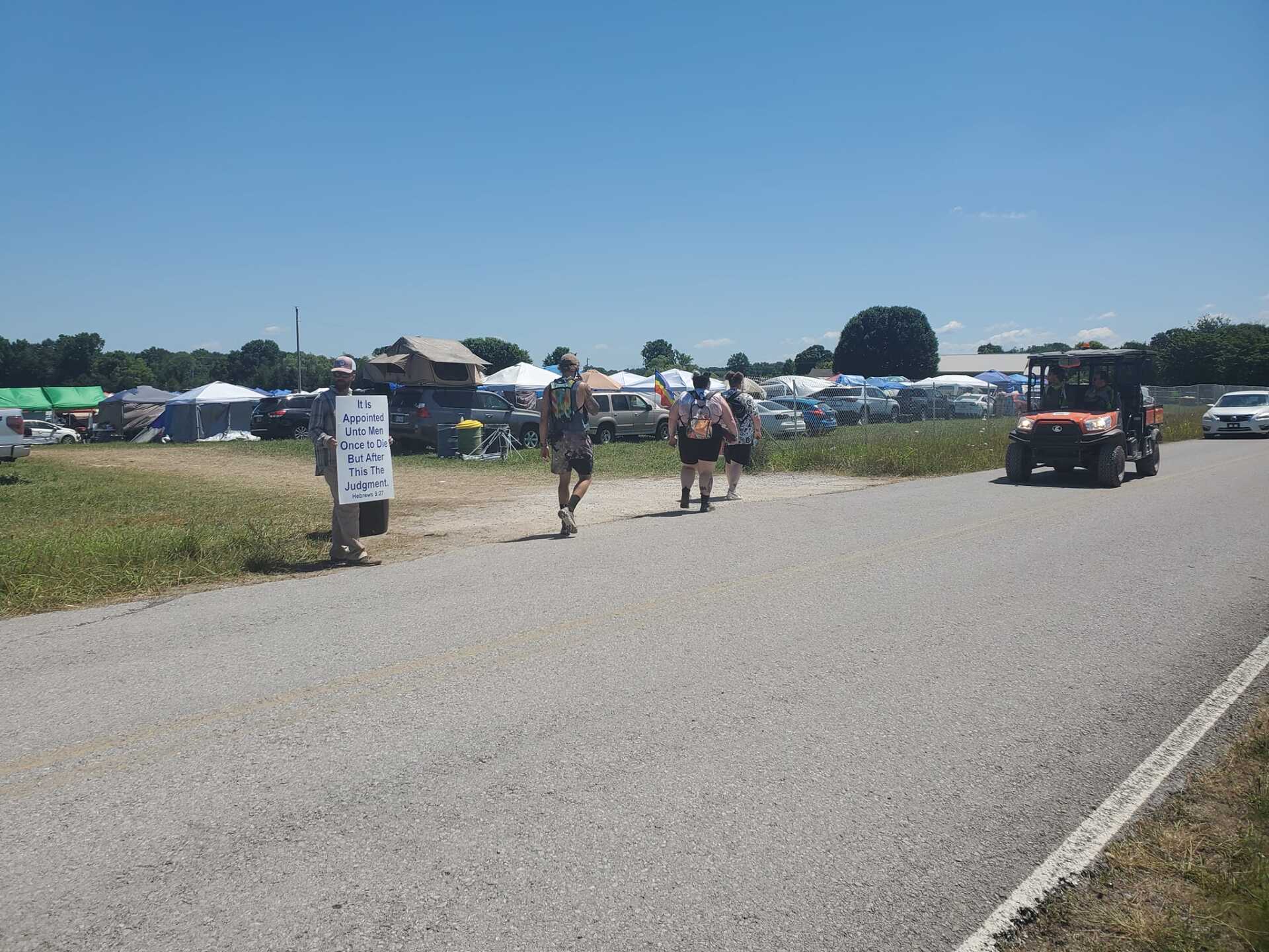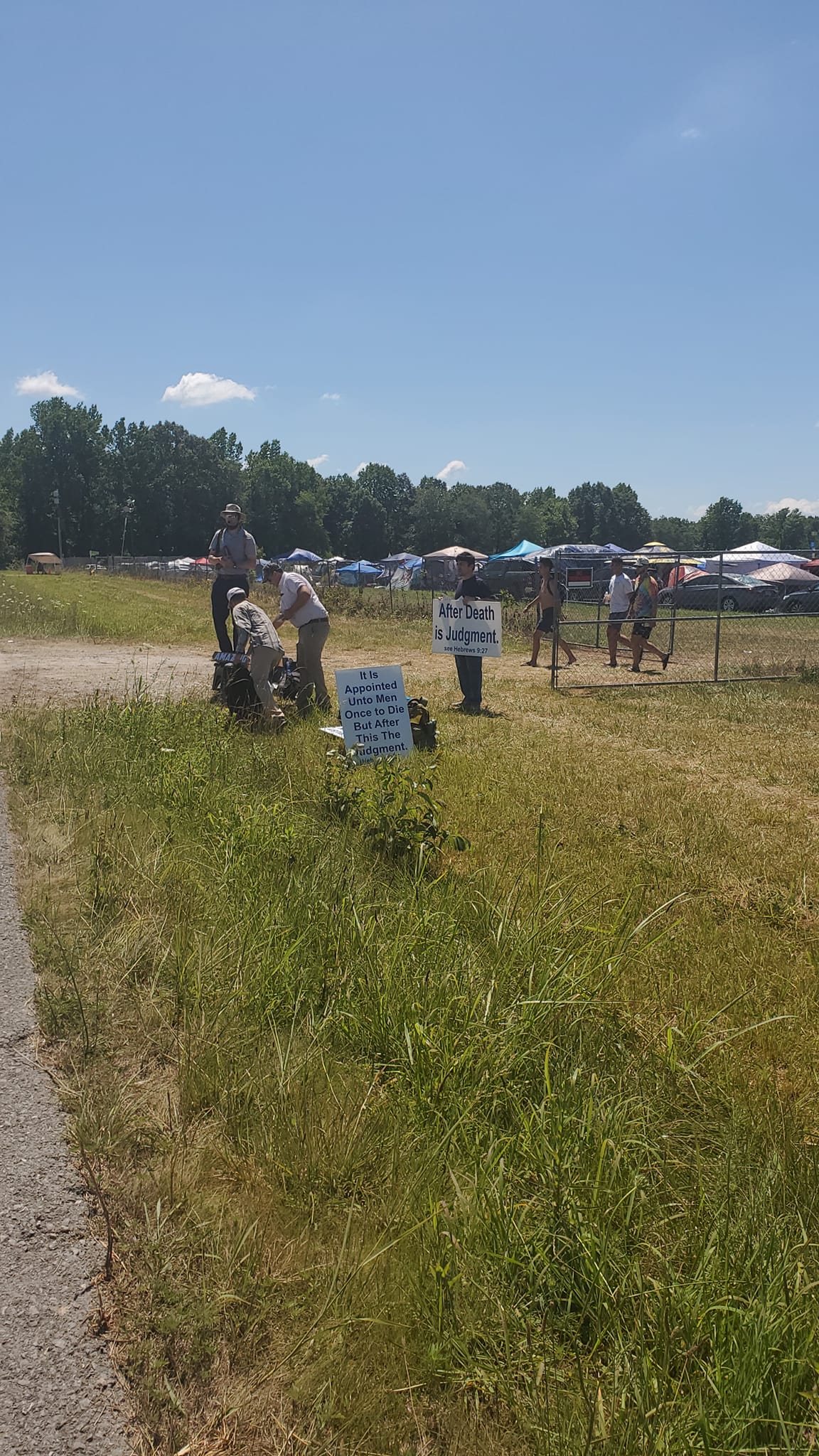 Joshua Richards - As promised, here are the rest of the photos from the Bonnaroo Music Festival Outreach that I was not able to upload due to no cell reception. There were many mockers, and some who legitimately were sharing a false Gospel getting people to pray a sinners prayer, but there were some that stopped to just listen to the preaching. One of them I talked with briefly was named Ryan. As I talked to him, he Interrupted me so he could continue listening to the preaching. We also had I believe 2-3 Brothers who preached open air for the very first time. God was faithful as always. Pray for these dear souls!