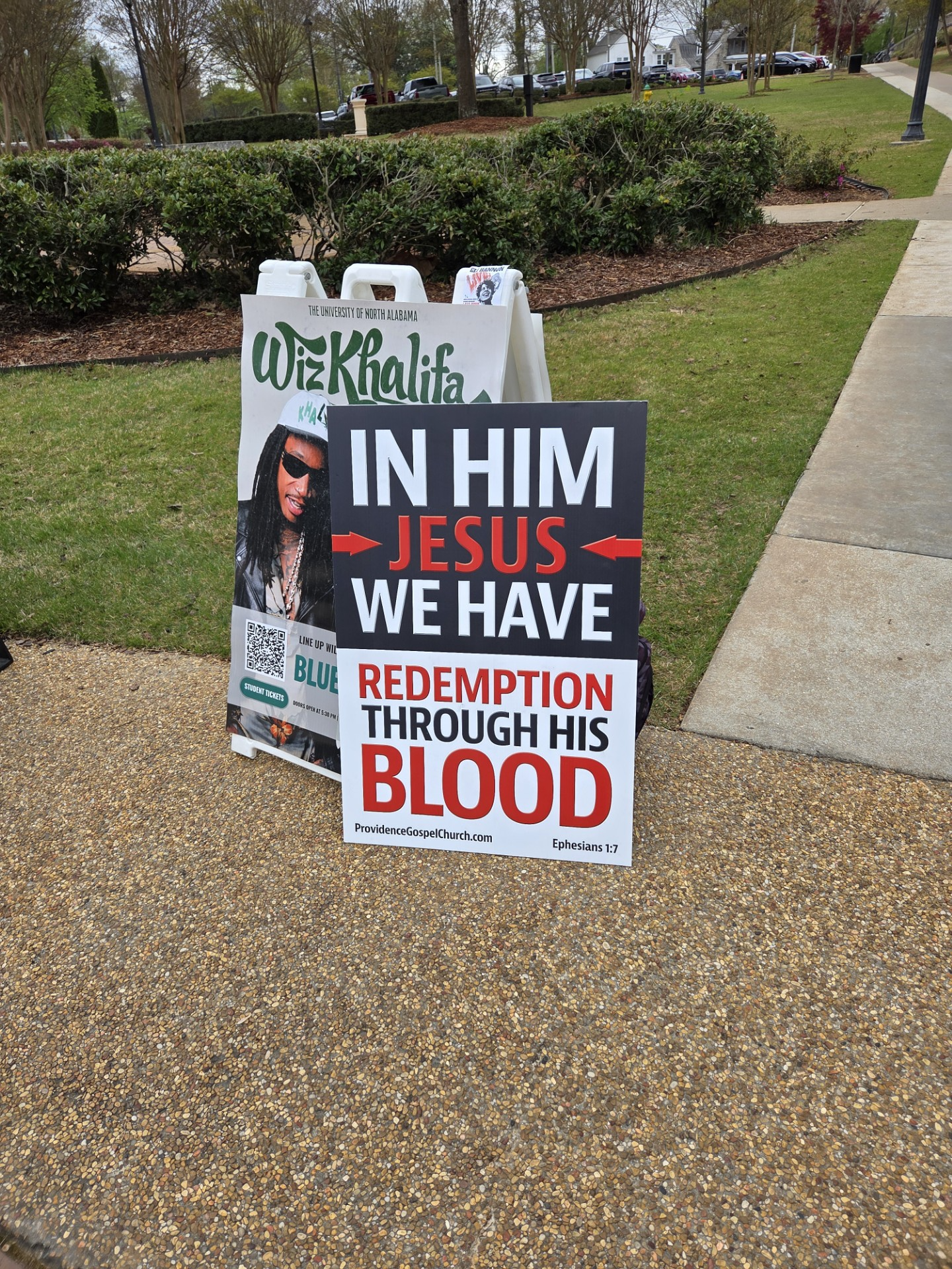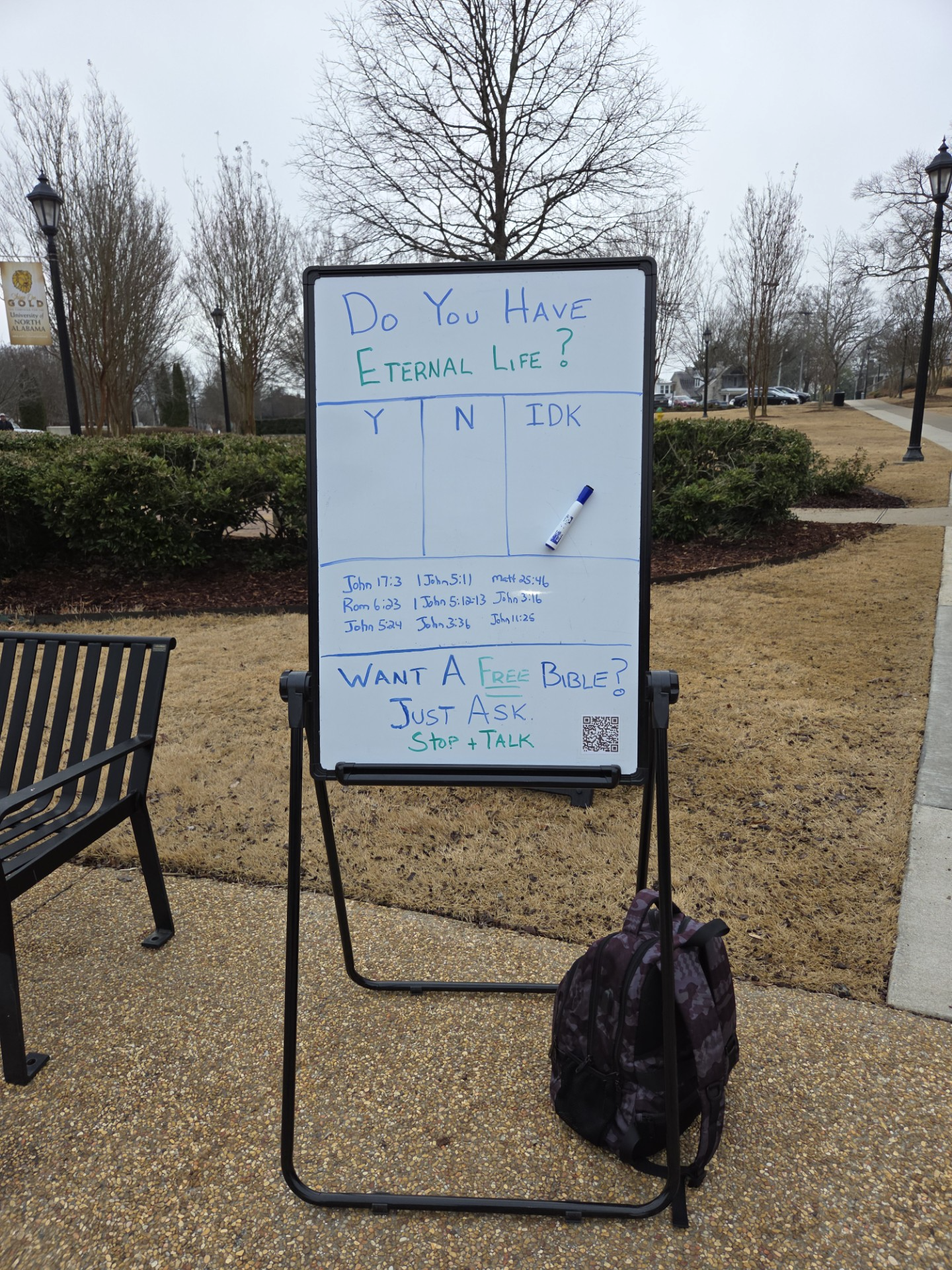 This was the tract of the day at UNA Campus this morning. Passed out over a hundred and had a couple of good conversations. Young man named Drew he was a Christian wanting to go into ministry and was having some struggles in his life. I was able to pray for him. Then there was a older Korean lady that was encouraged I was there and spoke with me for several minutes. No King but Christ!