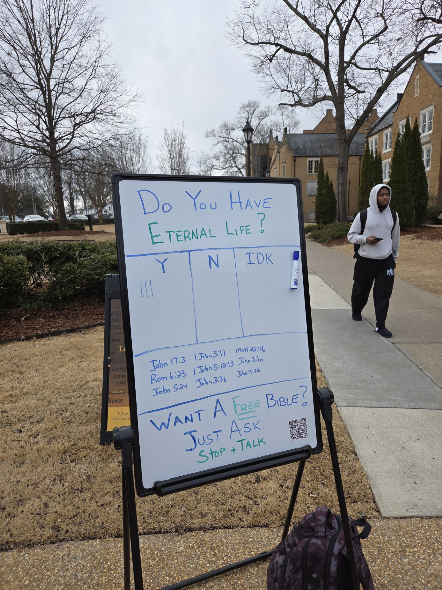 Andy and myself went to UNA today. We handed out around 150 gospel tracts to the students
