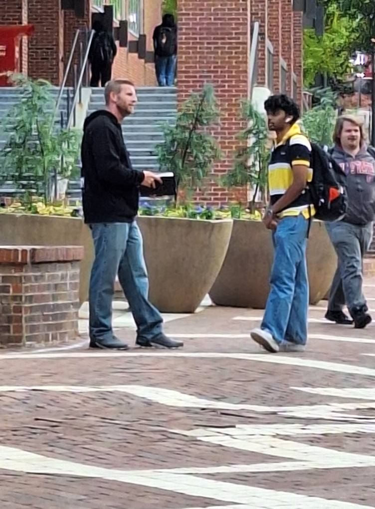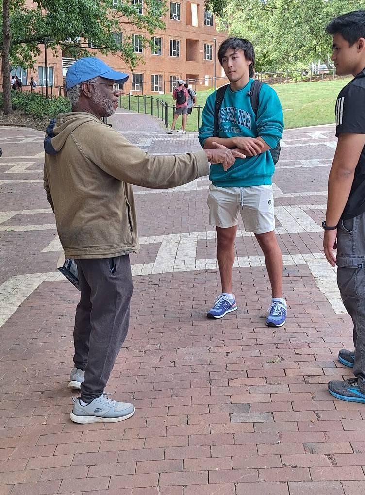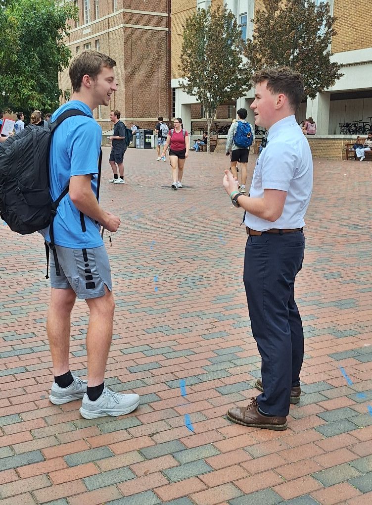 Pray for us as we bring the Gospel of Jesus Christ to the students at UNC this afternoon. Tony a UNC student sharing the gospel with a Mormon on campus. Jack is a UNC student sharing how he came to faith in Christ recently with one of our team. He came up and thanked me for being here and also thanked me for sharing the gospel with him. In his own words he said, "My life is so much better now." PTL