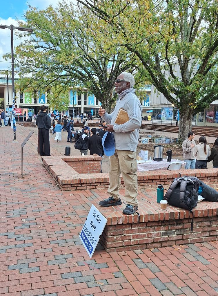 Pray for us as we're bringing the Gospel of Jesus Christ to the students at UNC this afternoon in the drizzling rain. Blessed with some great gospel conversations