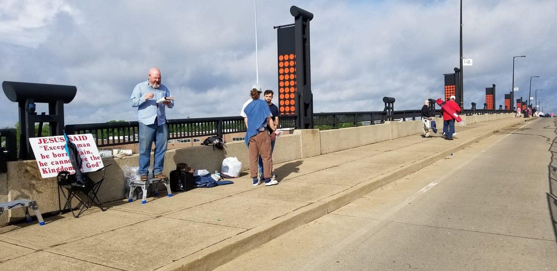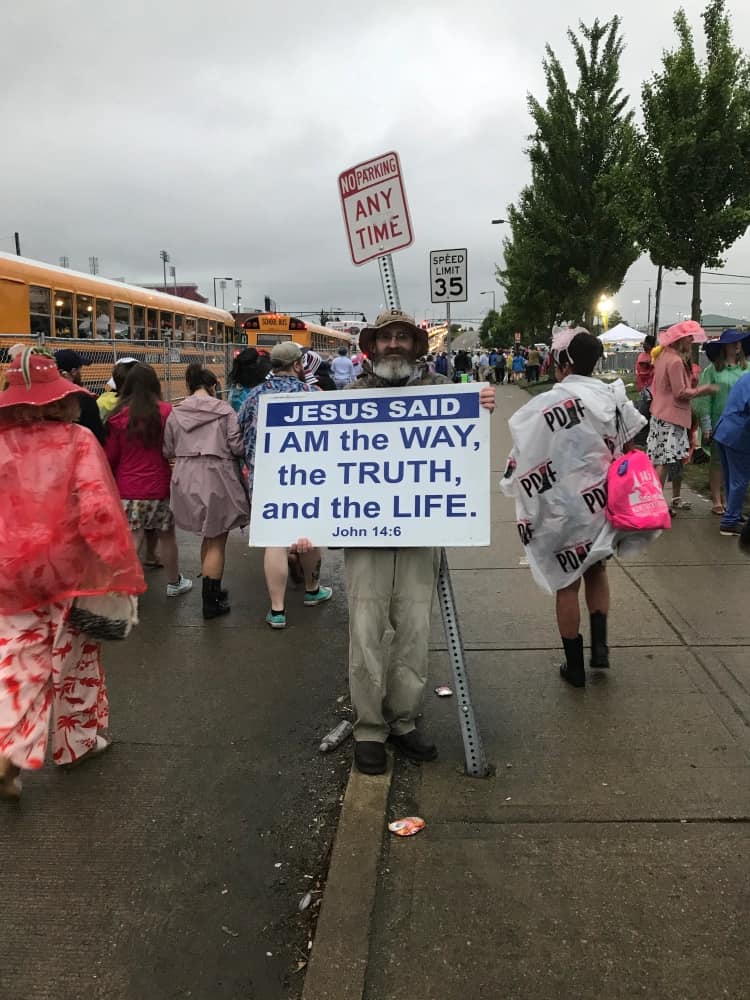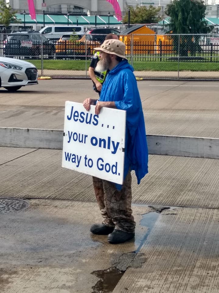The first time was in 2019. I was a bundle of nerves. It was my first time doing this time of street evangelism and starting at the Kentucky Derby is like being thrown into the deep end of the pool to learn how to swim. I was desperately dependant on strength from the Lord. My most memorable moment was at the end when I held a sign quoting Jesus’ words from John 14:6 for thousands to read as they exited Churchill Downs shoulder to shoulder. I said hardly a word for an hour and a half as people paraded out under the voice of powerful preaching from my fellow co-laborers.