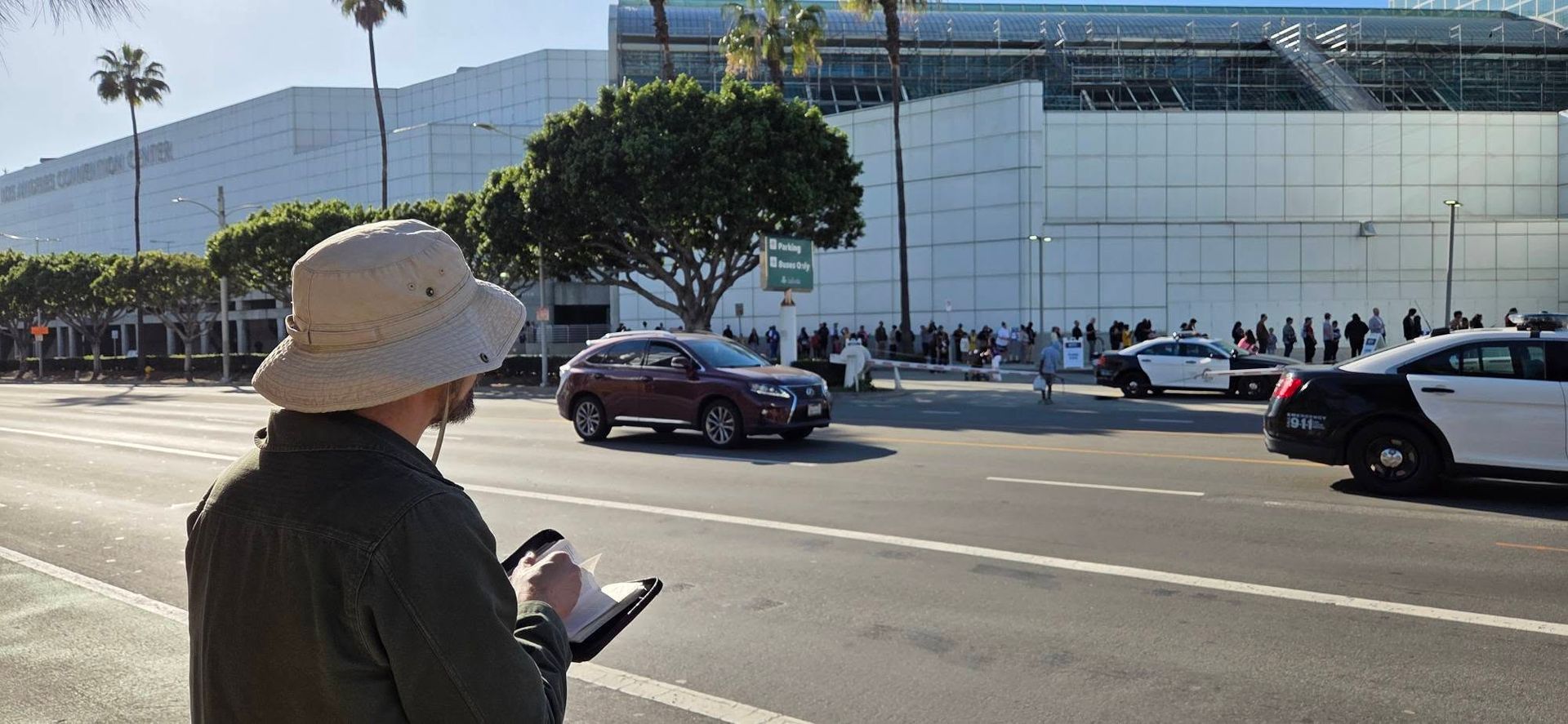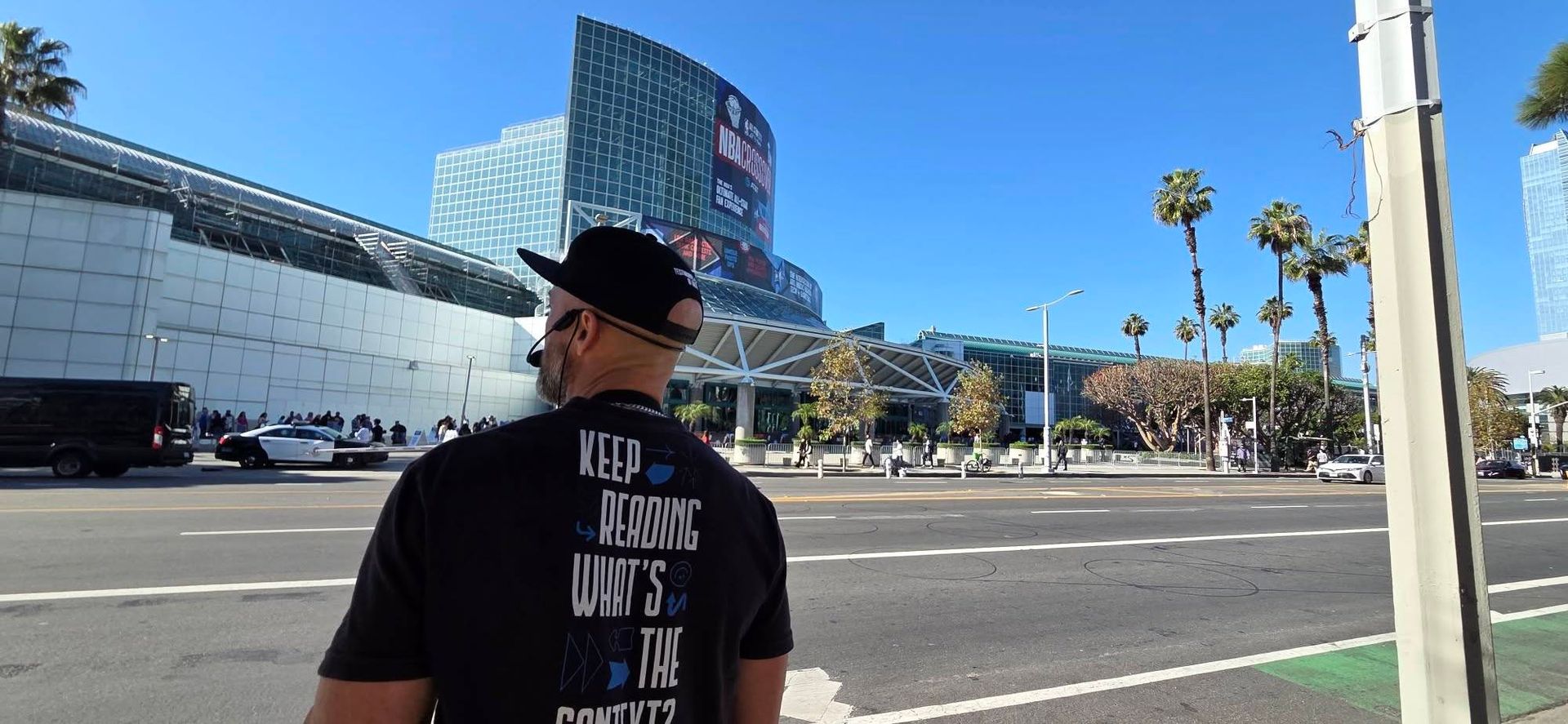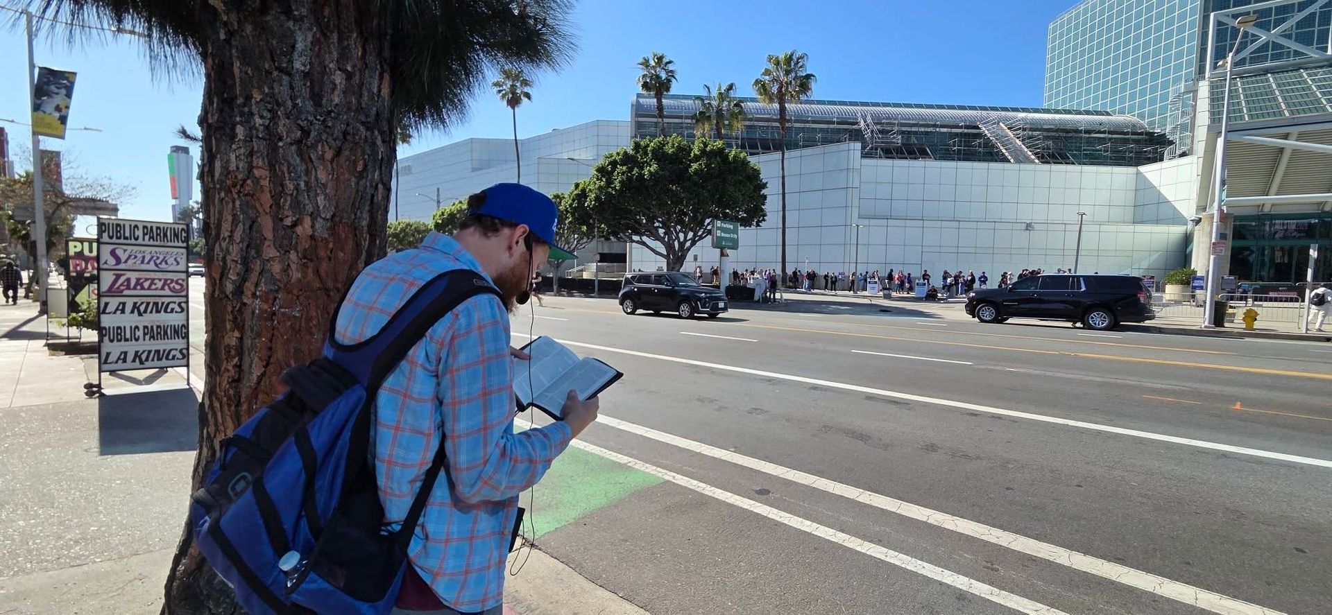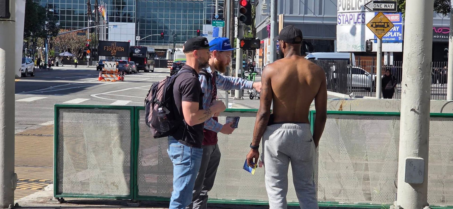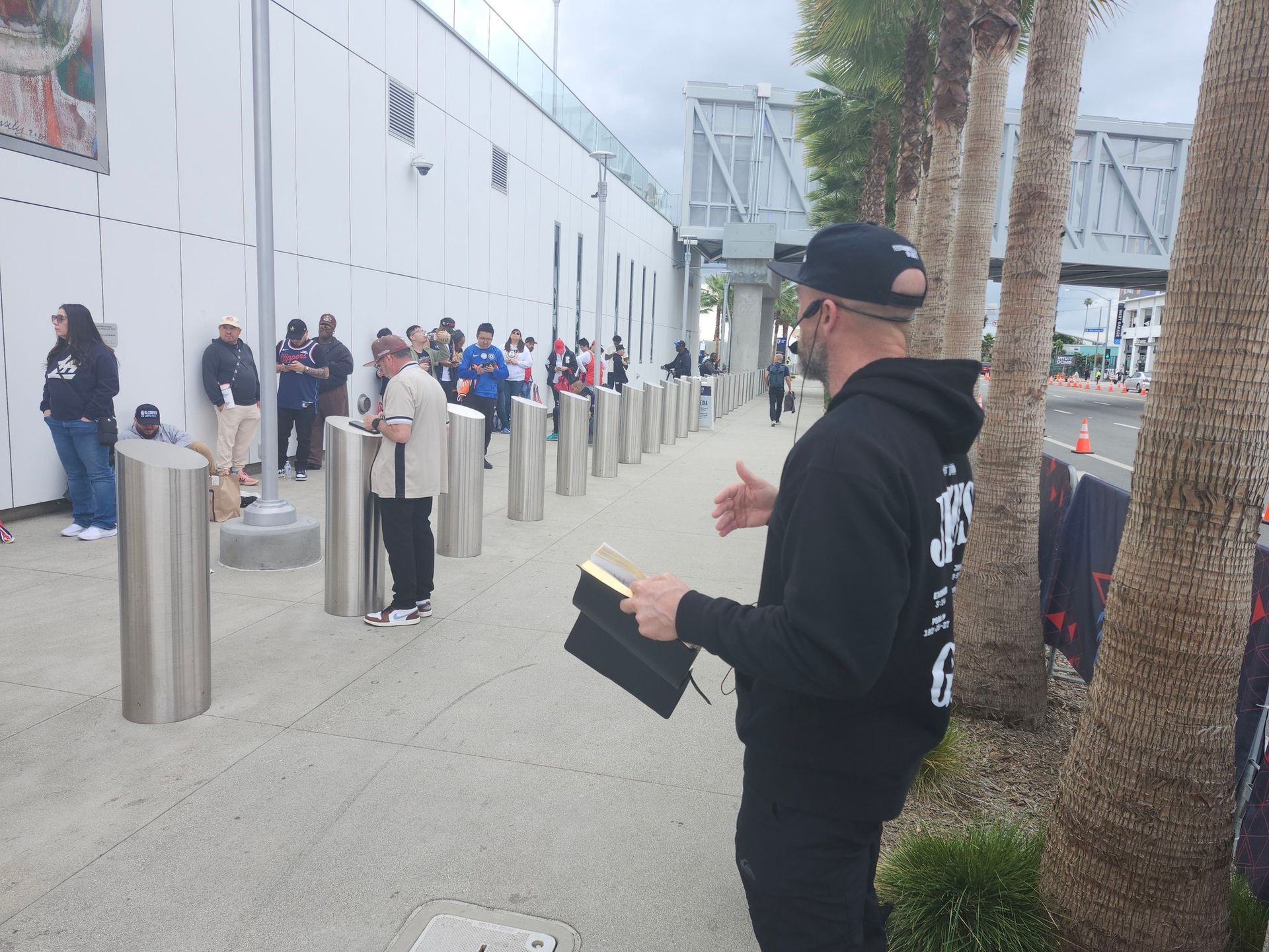 Jason Osborne preaching on "If you honor the Son, He will honor you" outside the convention center in L.A.
