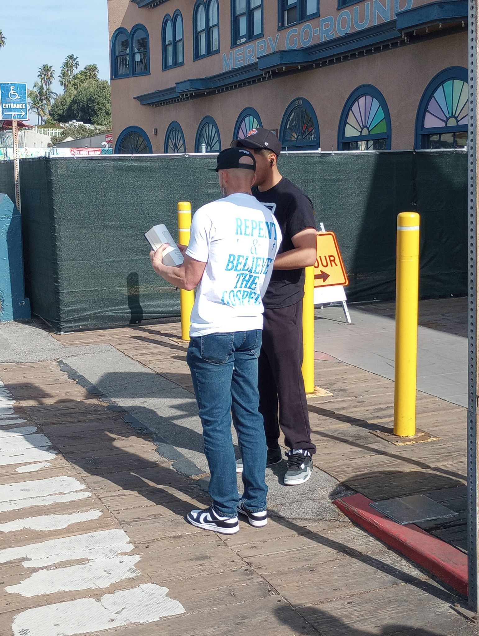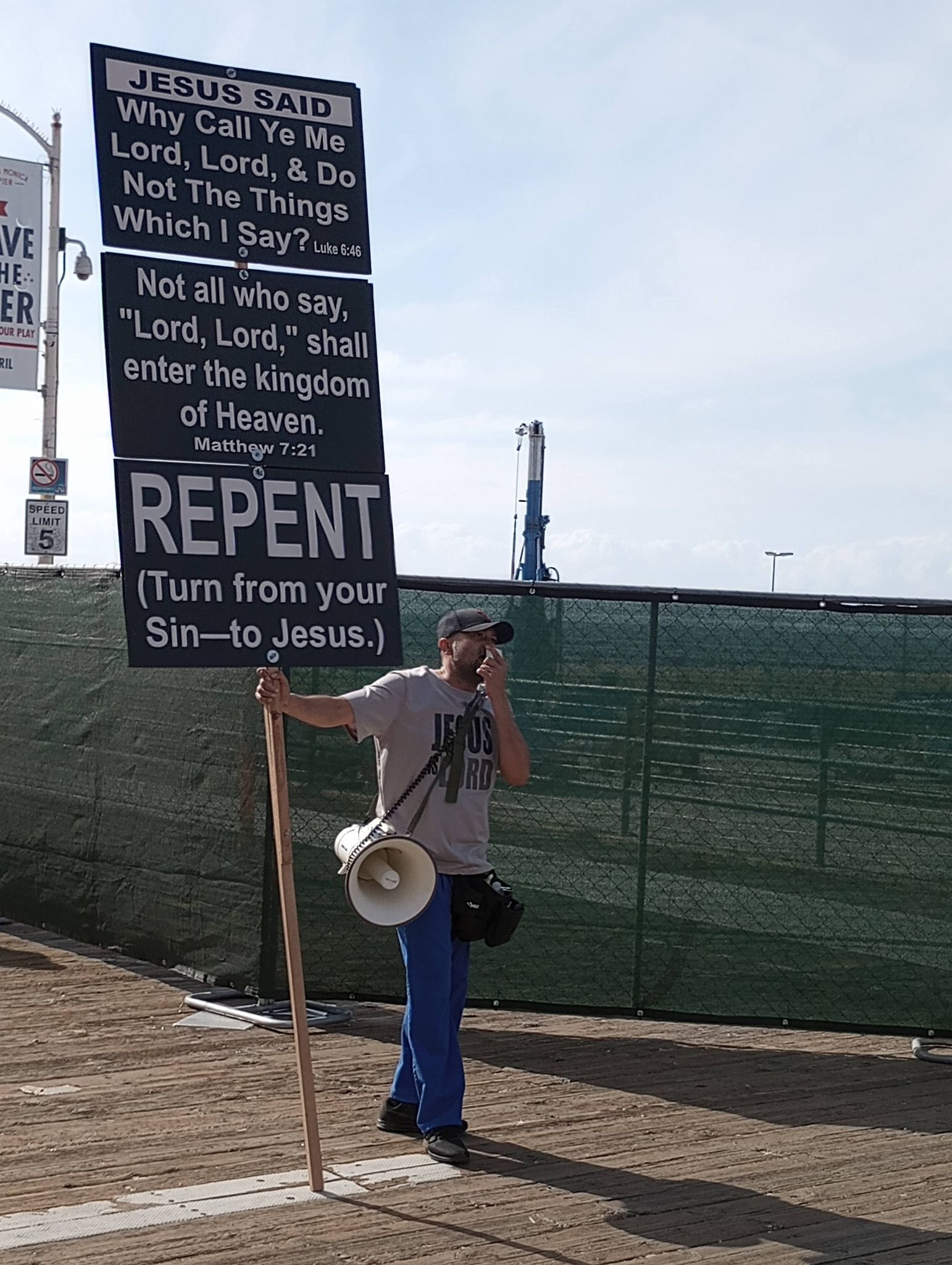 Jason Osborne preaching on "Are you one of God's sheep or not?" at the Santa Monica Pier.