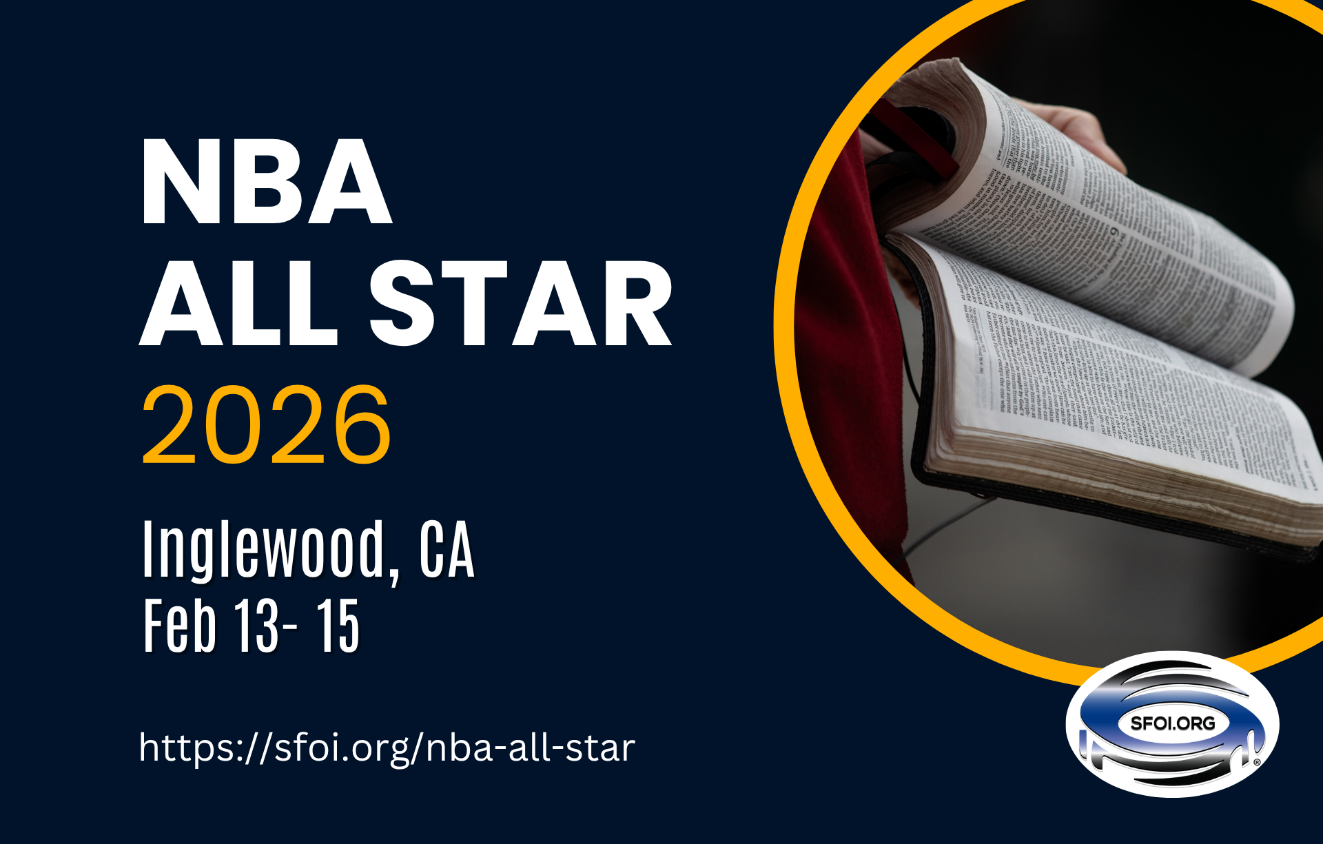 Lord willing SFOI will be there and is looking for evangelists to join the NBA All-Star Team to preach the Gospel for three day to the fans and local citizens; minister to them in the moment and to potentially refer them to a Bible teaching church or ministry for discipleship. Would you pray about joining the SFOI Team in Inglewood?