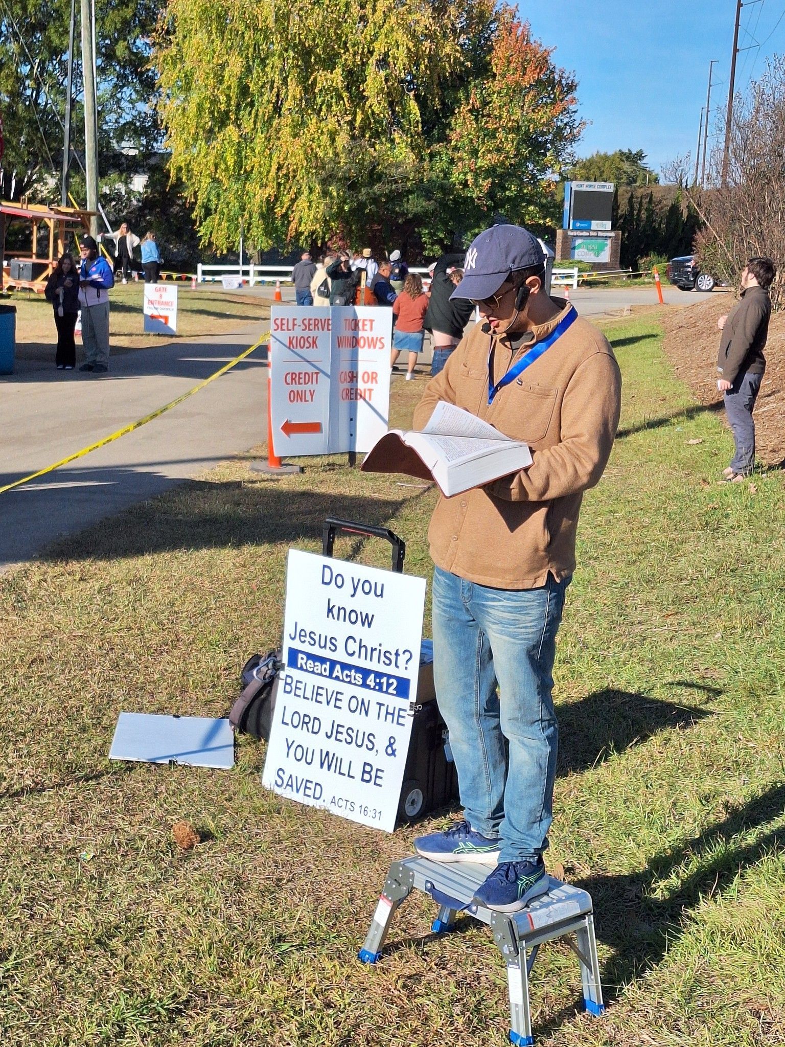 Evangelists preaching to the fans as the come and go to the NC State Fair: