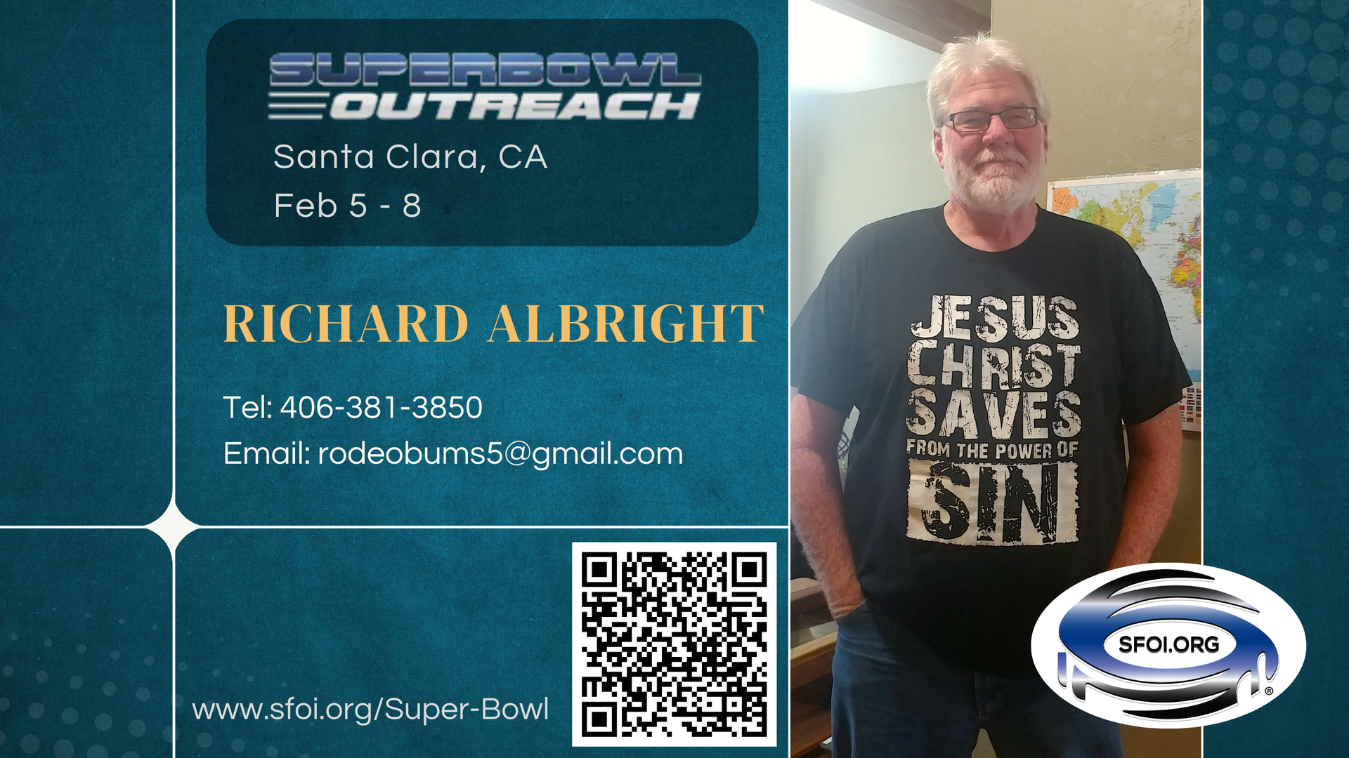 My dear wife been married 40yrs. We have three grown children all of which have been redeemed by the grace of God. I was a men’s pastor of a small church for many years, my wife and I had a small ministry at a convalescence for years until Covid shut us down. I have been privileged to preach this glorious gospel at colleges, street corners, sporting events, country fairs and churches. I feel humble to be a part of SFOI to see souls saved the gospel of Christ.
