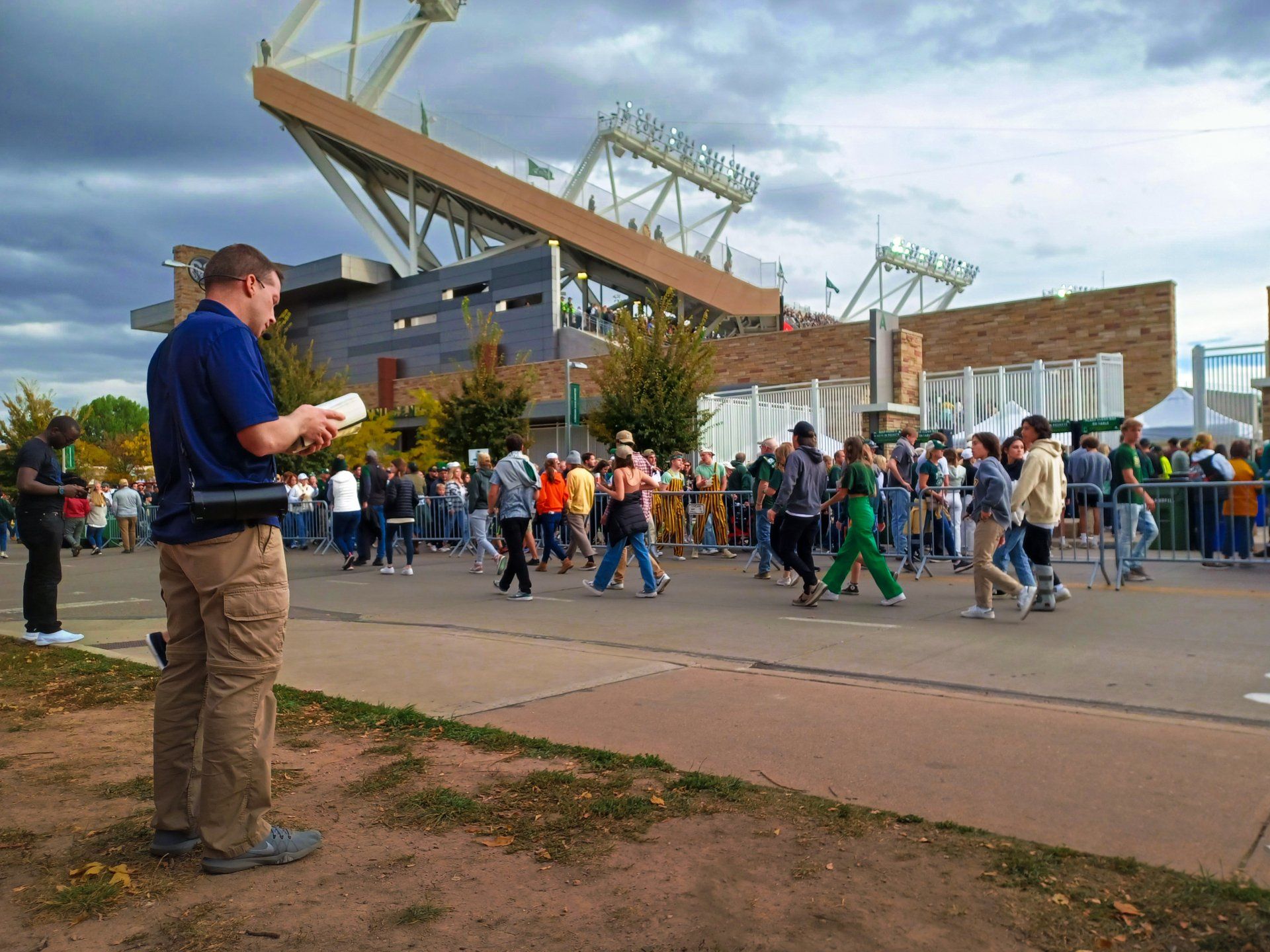 - This week was homecoming at Colorado State University. The weather was very nice and the crowds were plentiful. Larry Helmuth and I were preaching at the north gate of the stadium from about 2:15 to the 5:00 PM kickoff. I preached from Psalm 107, Matthew 8, and John Chapter 4. Larry also preached from several passages concerning the kingdom of God and our need to enter into His kingdom by faith alone in Christ alone. We were blessed to be out in our community striving to represent Christ and to preach His gospel well.