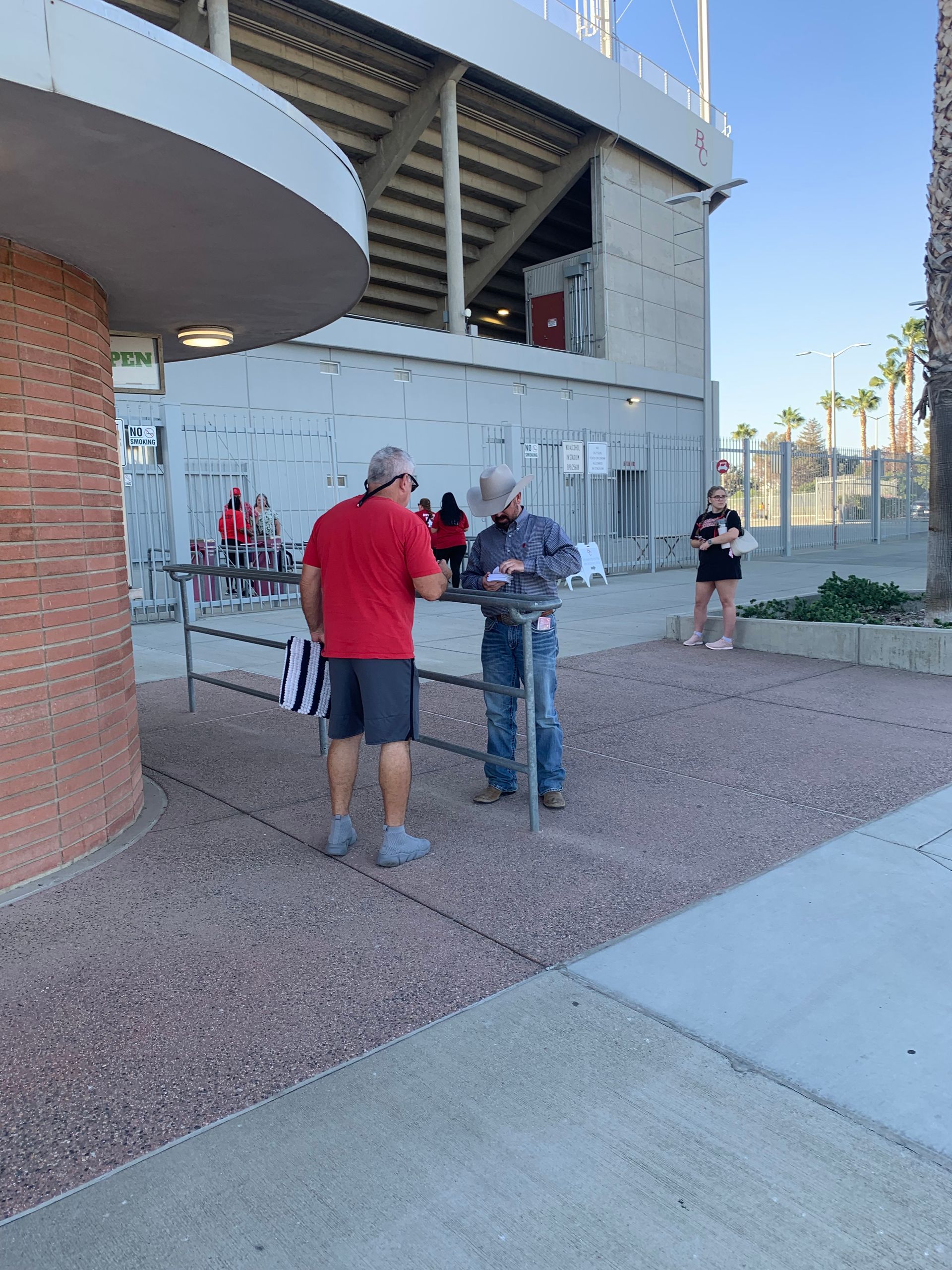 I attended the first home game of the season at Bakersfield College on Sept 9th, 2023. I invited another to attend with me but he circumstances didn’t allow him to make it. The crowds are usually light and I pass out tracts and engage in one on one conversations. I was able to pass about a hundred gospel tracts and had a wonderful talk with two young men name Bruce and Brian. Bruce had never heard the message though raised in a church. Both were very open. Was able to give a NT to Brian. Attached is a photo of Bruce and Brian
