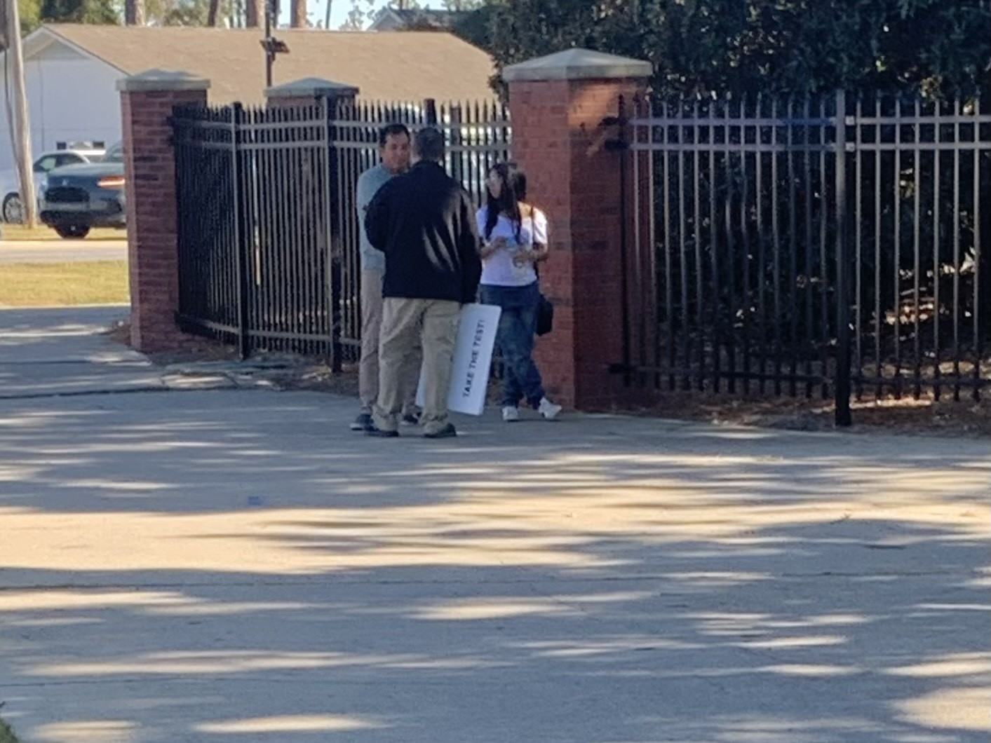 "We got to our parking spot meet up at around 2:30 and the last person to arrive got there at around 2:45. We made the 20 minute walk to our spot at the corner of Lanier Drive and Chandler Road and set up the speaker and got our signs and tracts out. The foot traffic there was pretty good, and we will set up near there if not in the same spot next time.