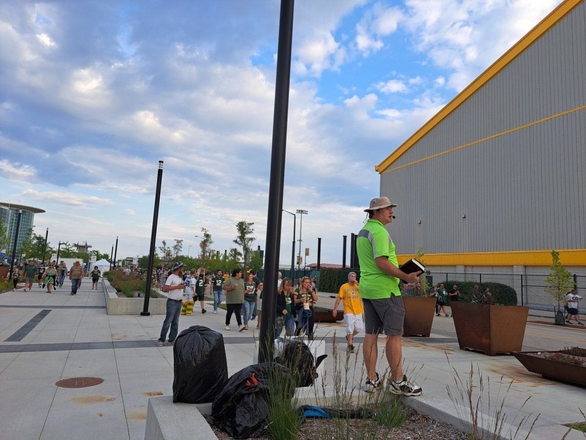 8/19/22 - Heath Report - It was great to be back preaching the Gospel to the Green Bay Packer pre season home game against the New Orleans Saints. We had five evangelists covering three different locations around the stadium. Dan Davis and Heath Pucel were in the usual ministry spot across from thePacker practice field and received a lot of encouragement from believers for being out there. Several came up to thank us for preaching and we also had Harold who usually stops by with his cross as he travels around the stadium collecting cans.