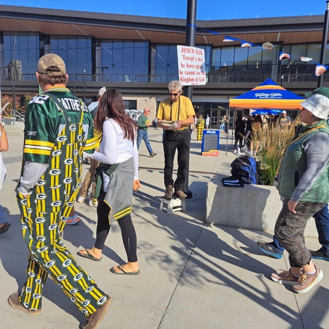 A couple of comments from fans attesting to our consistency "They are always here." Even a Minnesota Vikings fan commenting that preachers are here like in Minneapolis. A Vikings fan came to give me with a huge hug and encouragement for being out there during game day.