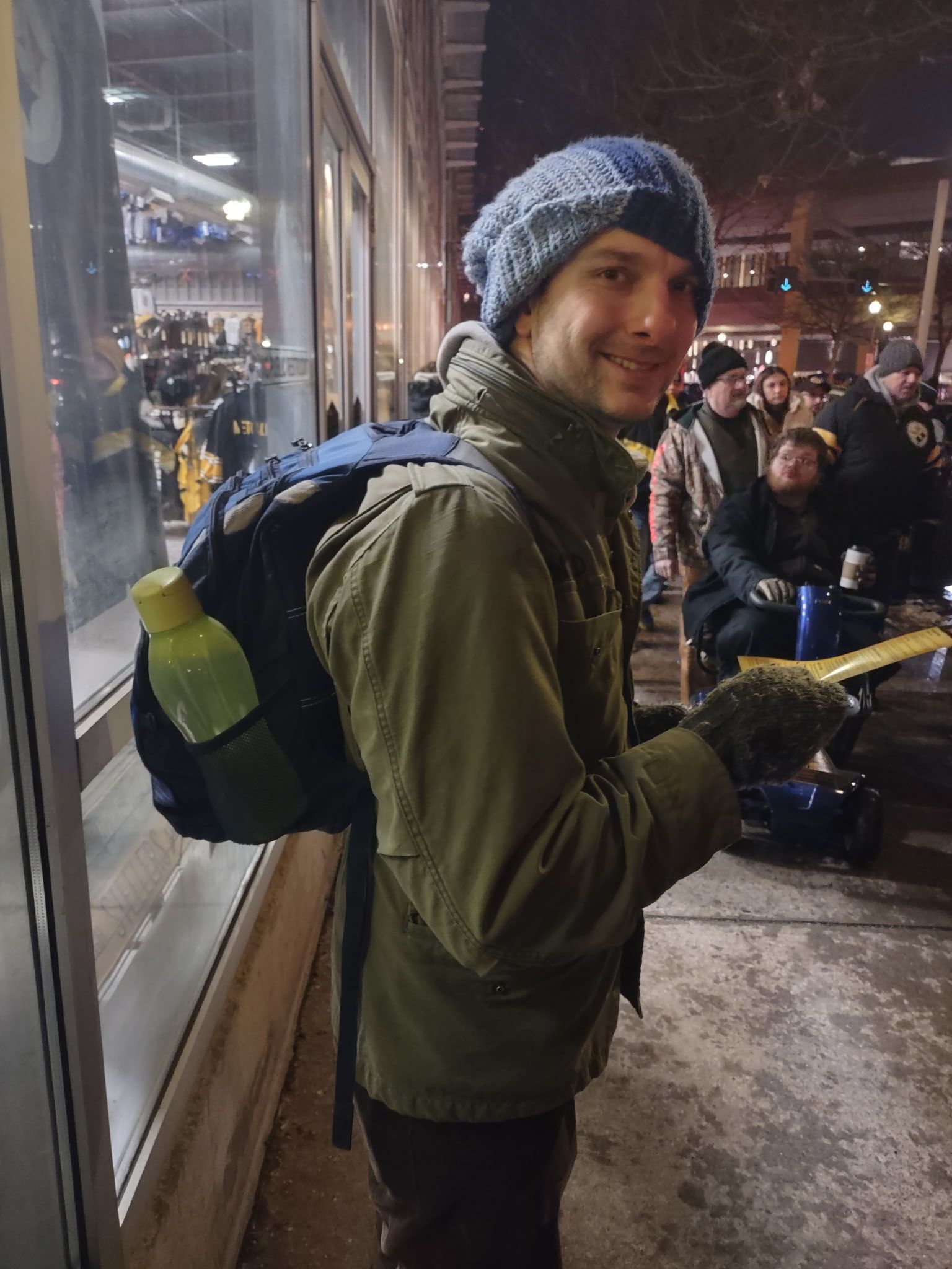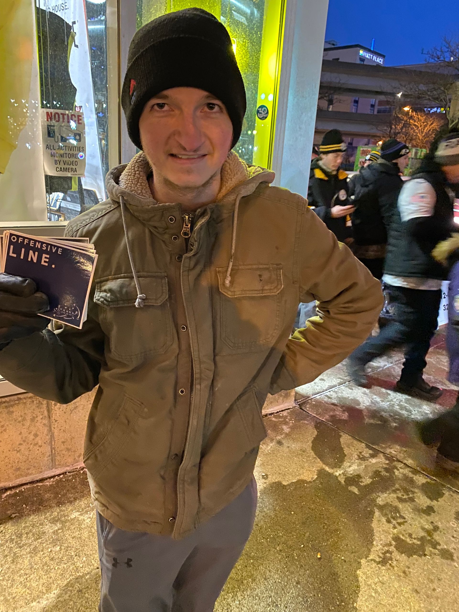 It was the coldest day of outreach all season for a Steeler game yet, for the first time, I had two other evangelists join me, and we probably handed out about 80 gospel tracks maybe less, but we were able to preach from Colossians chapter 1, John chapter 3, and Luke 15. We had a few interactions. It was a good day of ministry despite the cold.