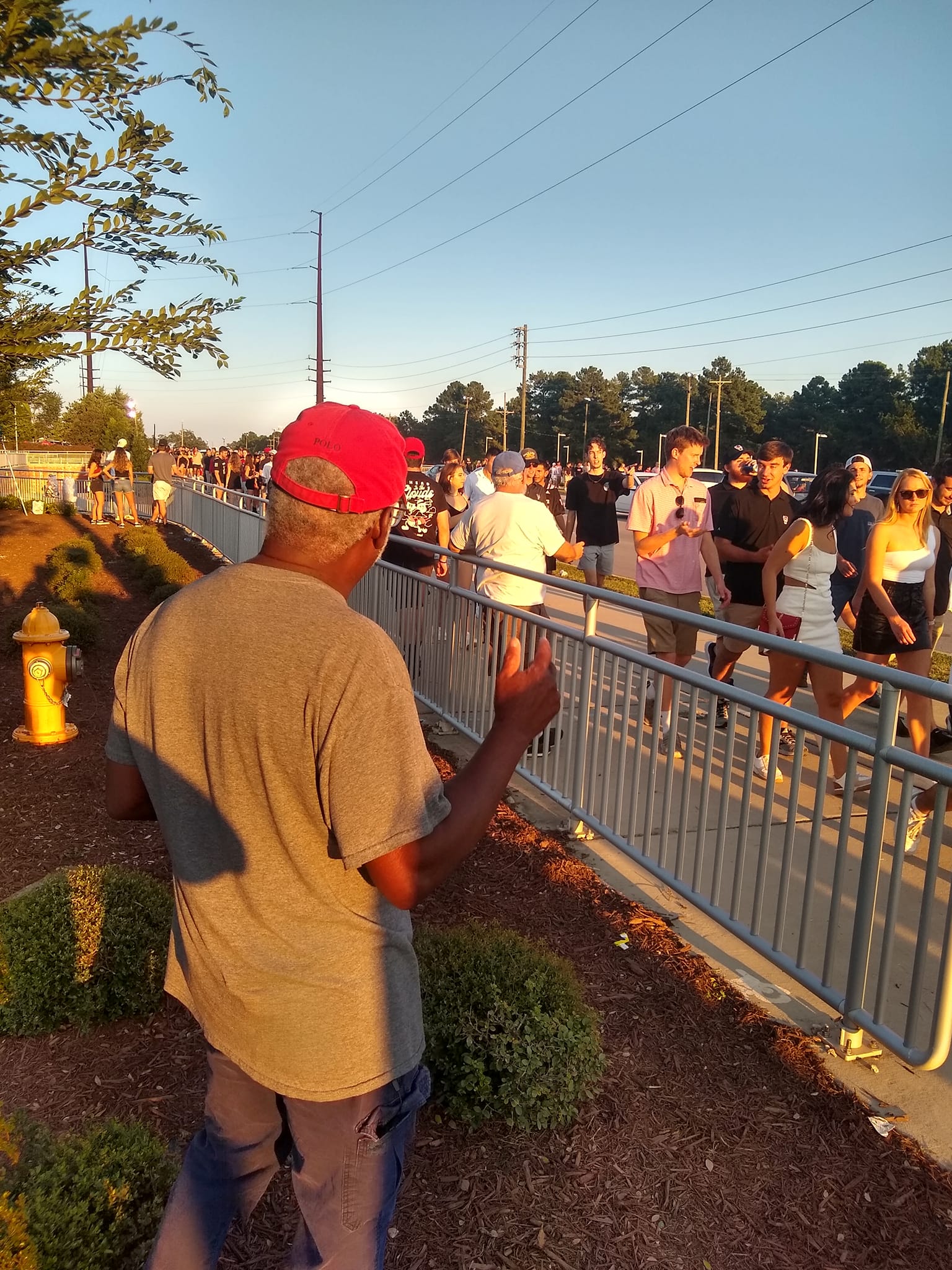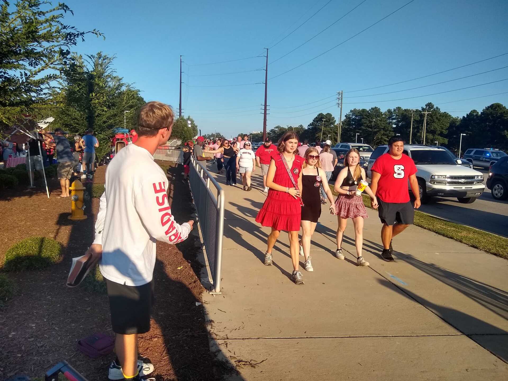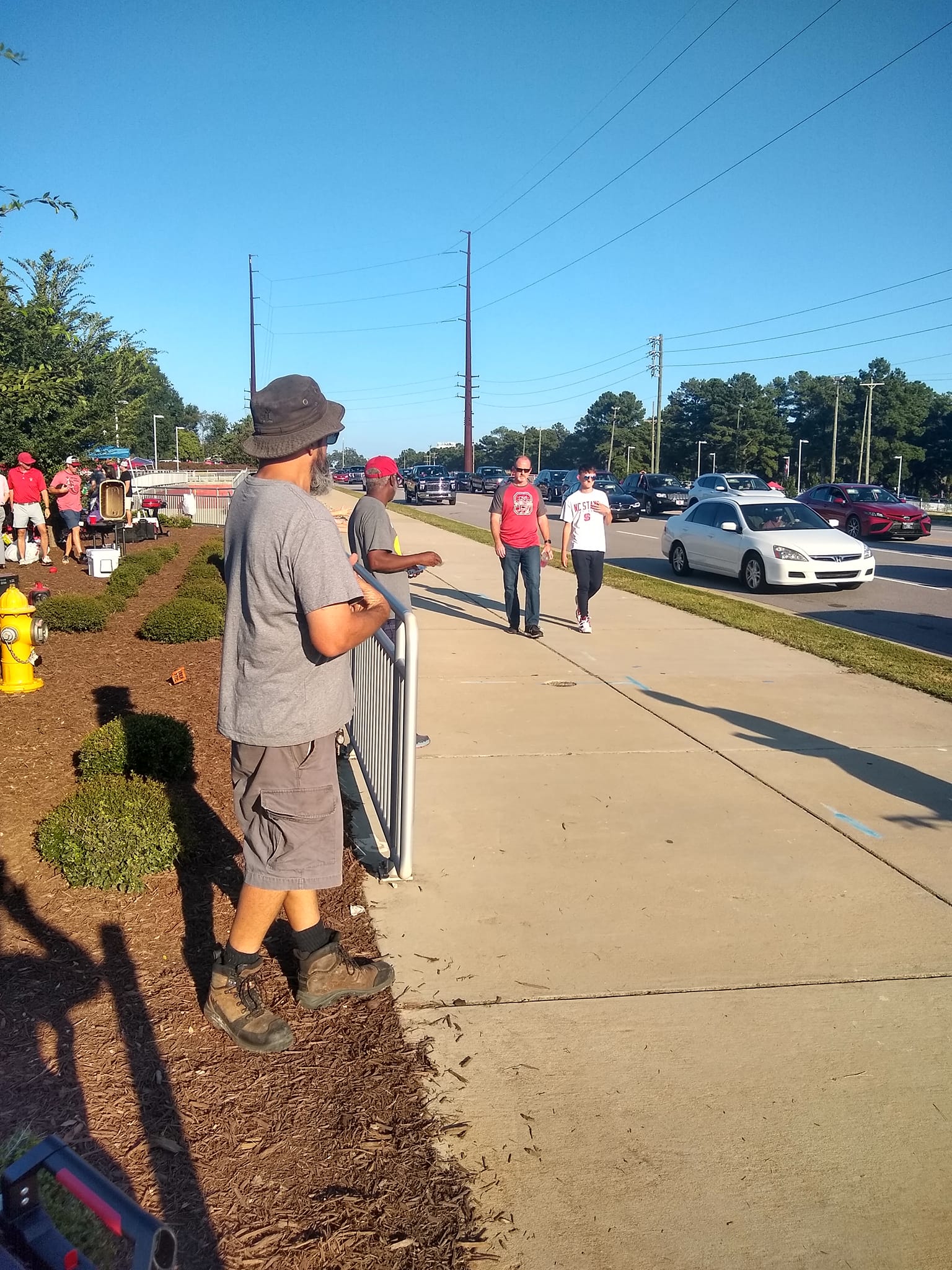 Many hear the gospel at the NC State game today. We had a team of five men preaching at the NC State football game this past weekend. We passed out about 600 gospel tracts and had a few conversations. The team members consisted of Kevin Creasy, Peter Firth, Daniel Springs, Joseph Toy and Michael Seethaler.