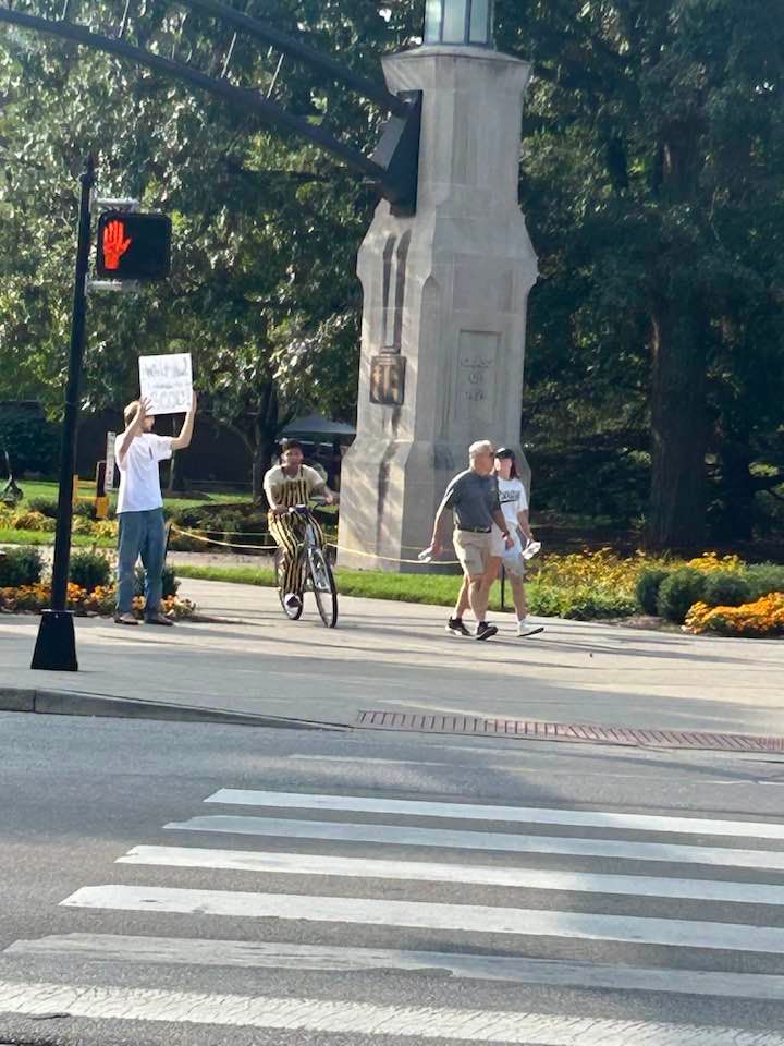 Riley, Everett and Tim join me this week at Purdue University to preach and share the gospel of Jesus Christ. All the fans flowed in for 2 hours, unable to enter due to a supercell storm approaching. Then by God's grace they all came past us again for another straight 2 hours while lightning and rain poured on us all. Though we got soaked, many heard the gospel and many questions were asked and answered, including how, as Christians and non-Christians, do we respond to what took place this week with Charlie Kirk and his assassinator, Tyler Robinson. Everett is handing out tracts.