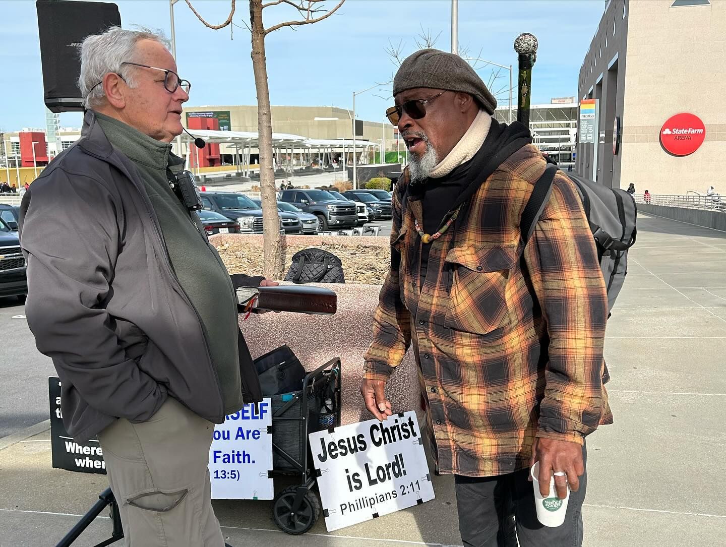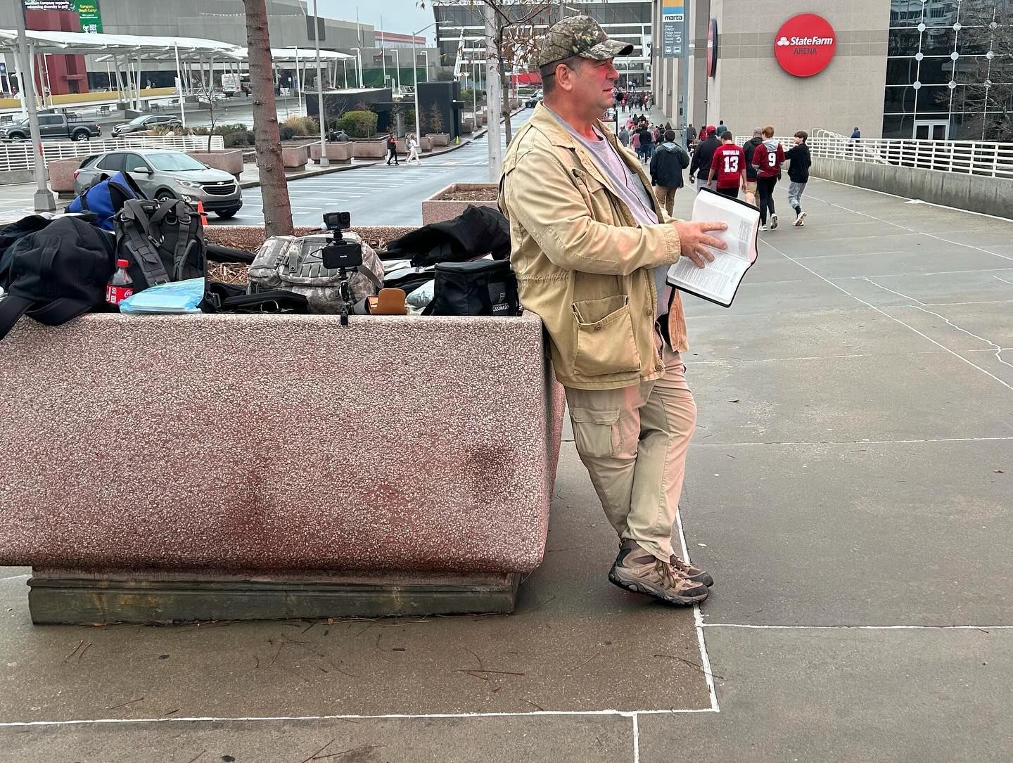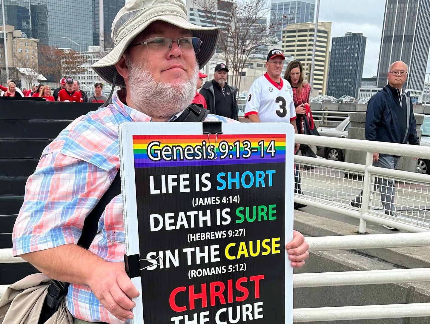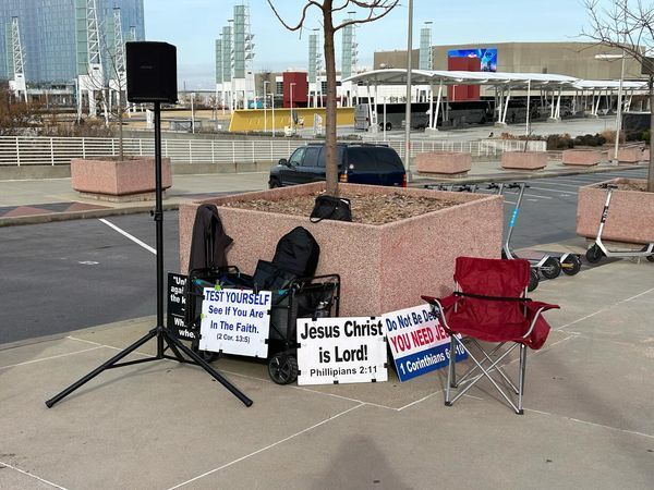 For the SEC College Championship Game at the Mercedes Benz Stadium in Atlanta today, we had six Evangelists preaching and distributing gospel tracts and having conversations with many of the fans. In summary, it was an overall fruitful day in the Lord.
