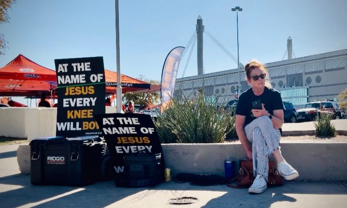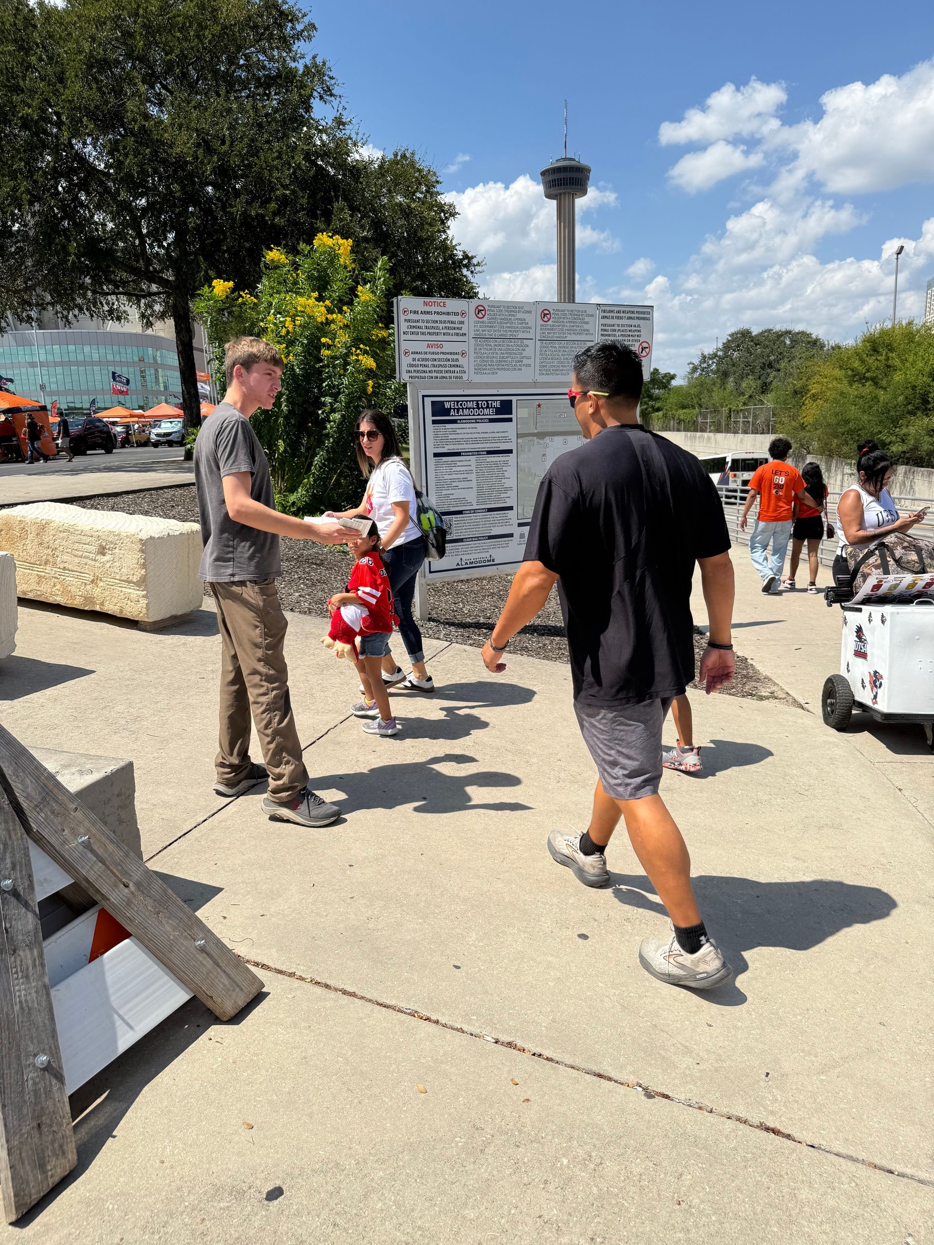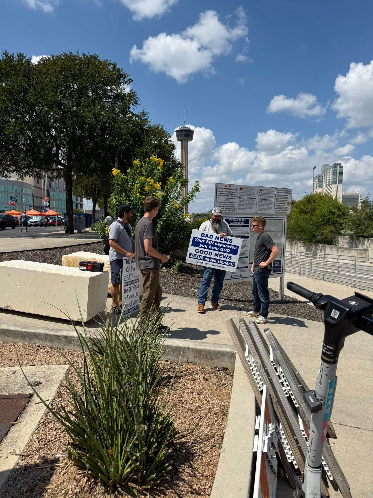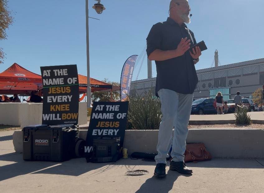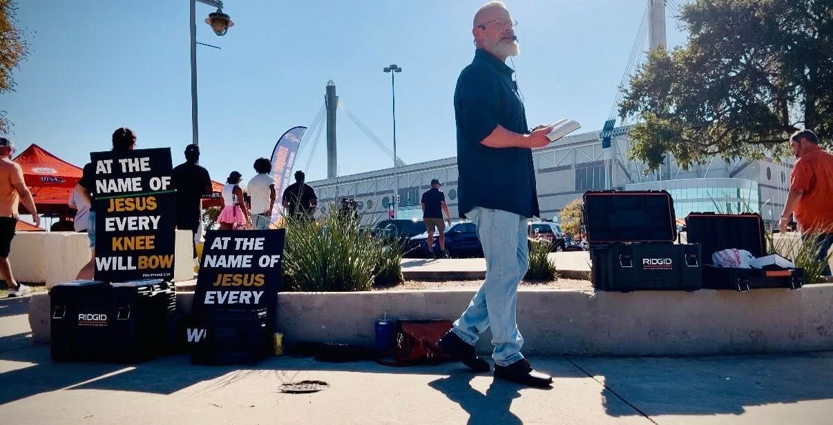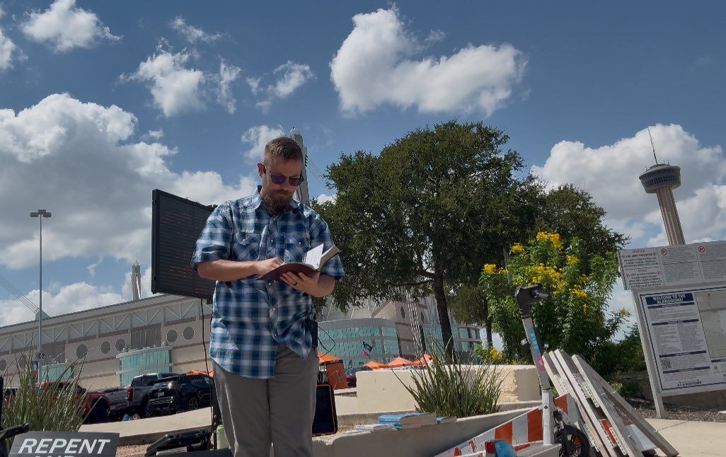 This past week, I proclaimed the Gospel at the Alamodome for about 2 1/2 hours as people were walking in. A little bit less crowded than last week, but the gospel was proclaimed nonetheless. Great one-on-one conversations as well.. Then on the Lord's day after Church, we met again in Boerne Square @ Marketdays with many great conversations, a little opposition, but also fruit of genuine reception to the gospel.