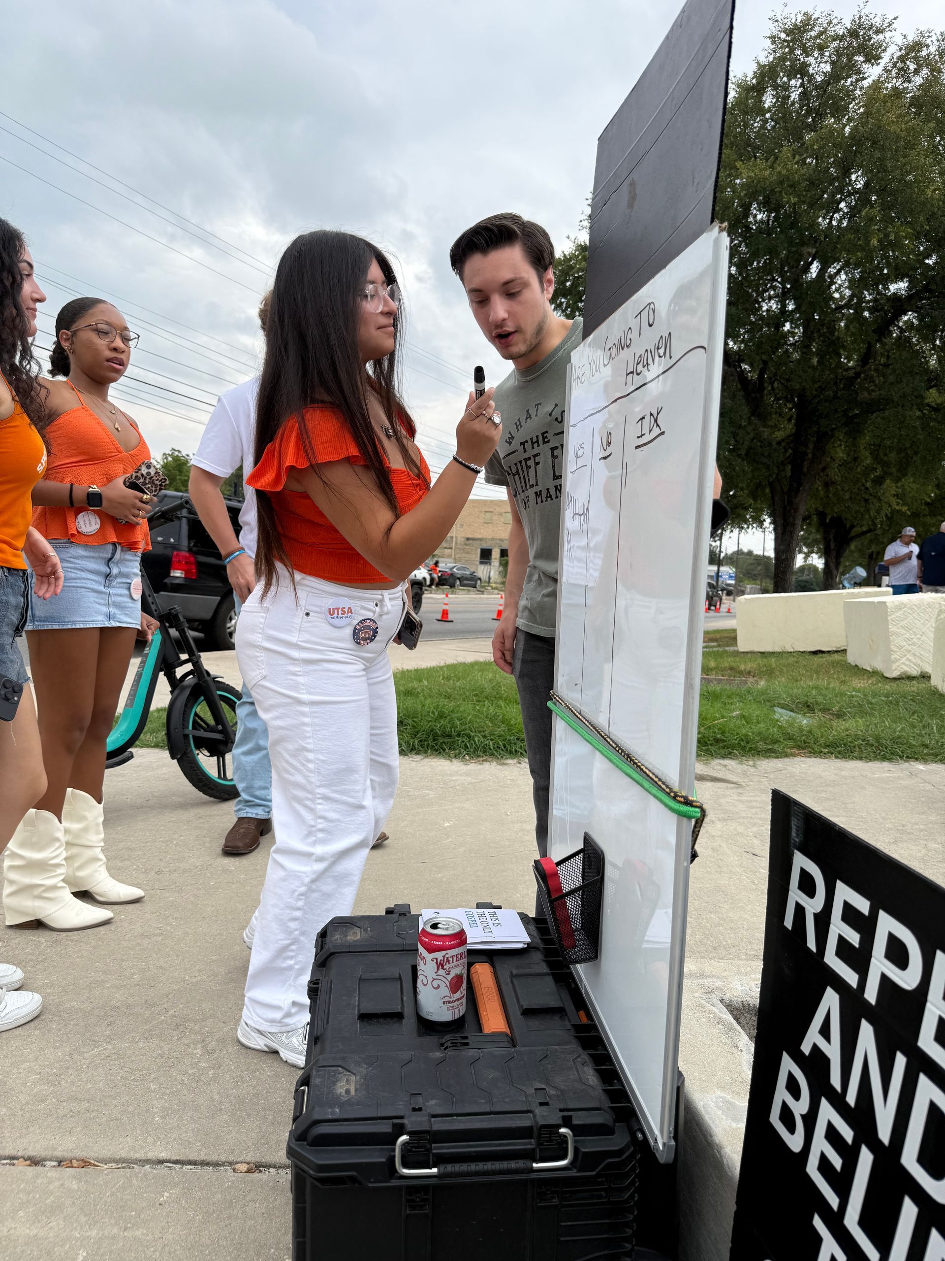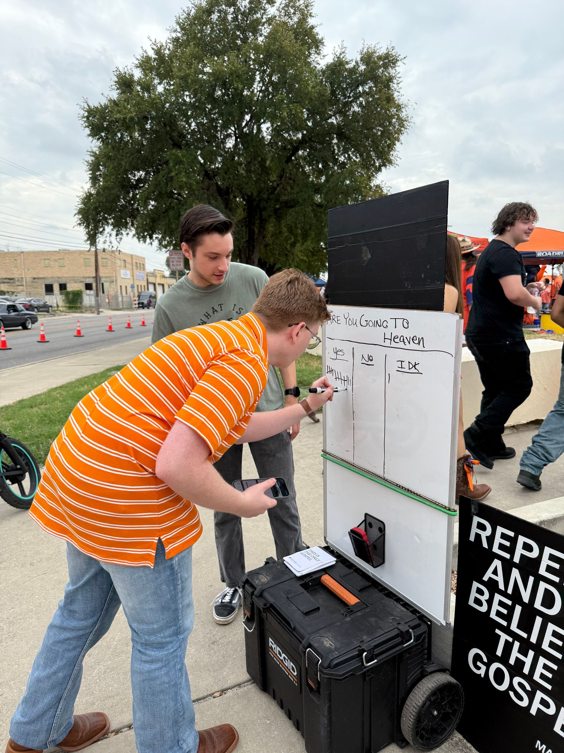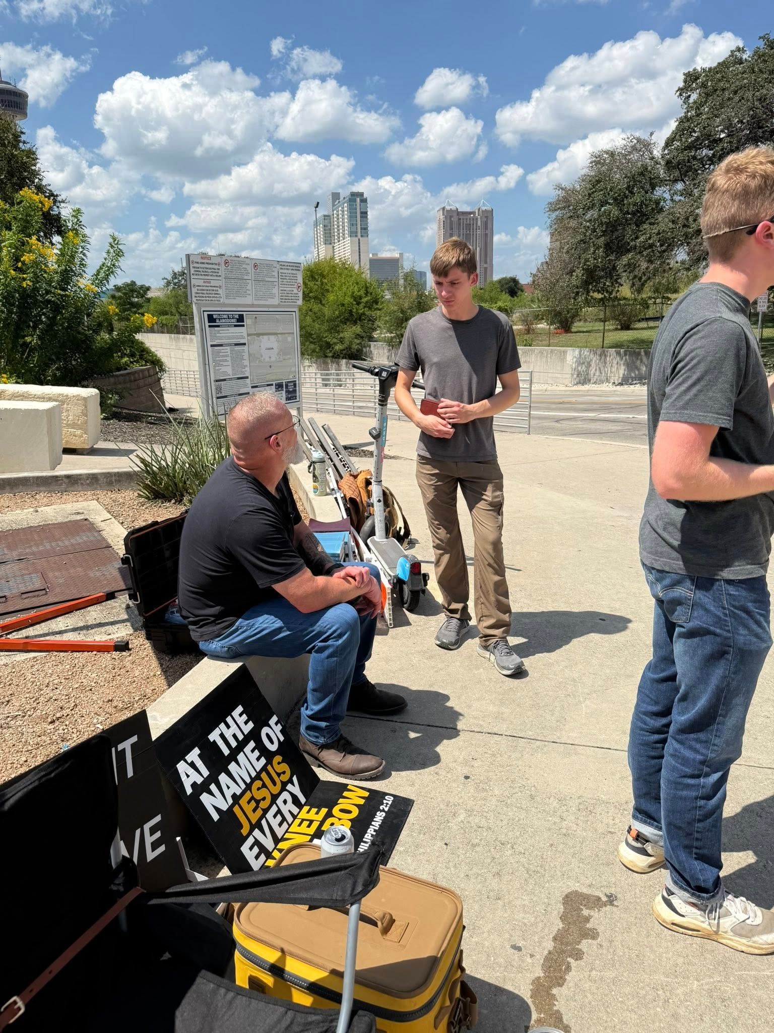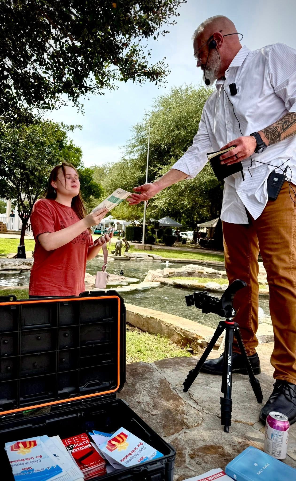 This past week, I proclaimed the Gospel at the Alamodome for about 2 1/2 hours as people were walking in. A little bit less crowded than last week, but the gospel was proclaimed nonetheless. Great one-on-one conversations as well.. Then on the Lord's day after Church, we met again in Boerne Square @ Marketdays with many great conversations, a little opposition, but also fruit of genuine reception to the gospel.