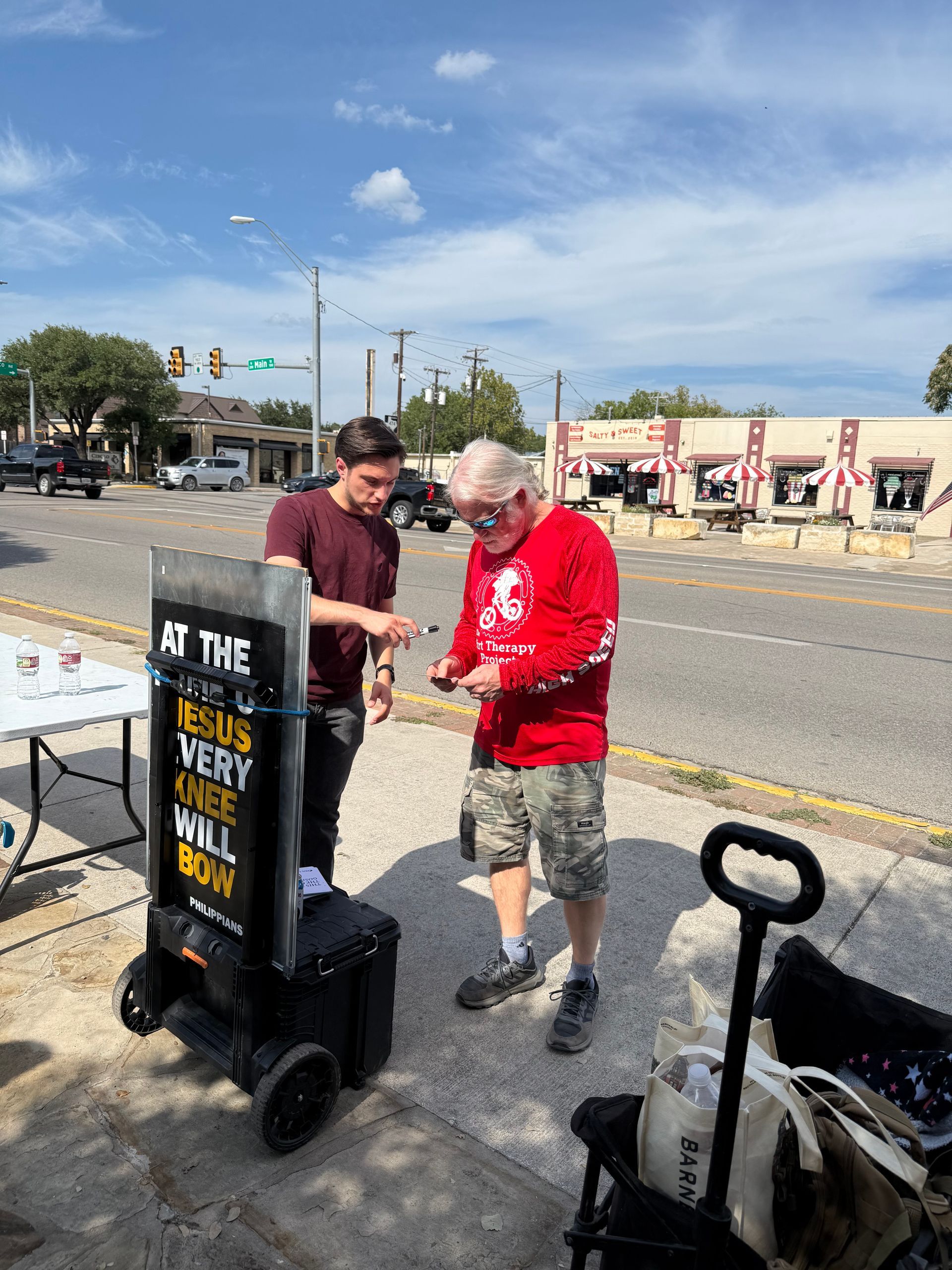 Very hot day - we stayed out 2.5 hours and met several believers who encouraged us in proclaiming the gospel.
