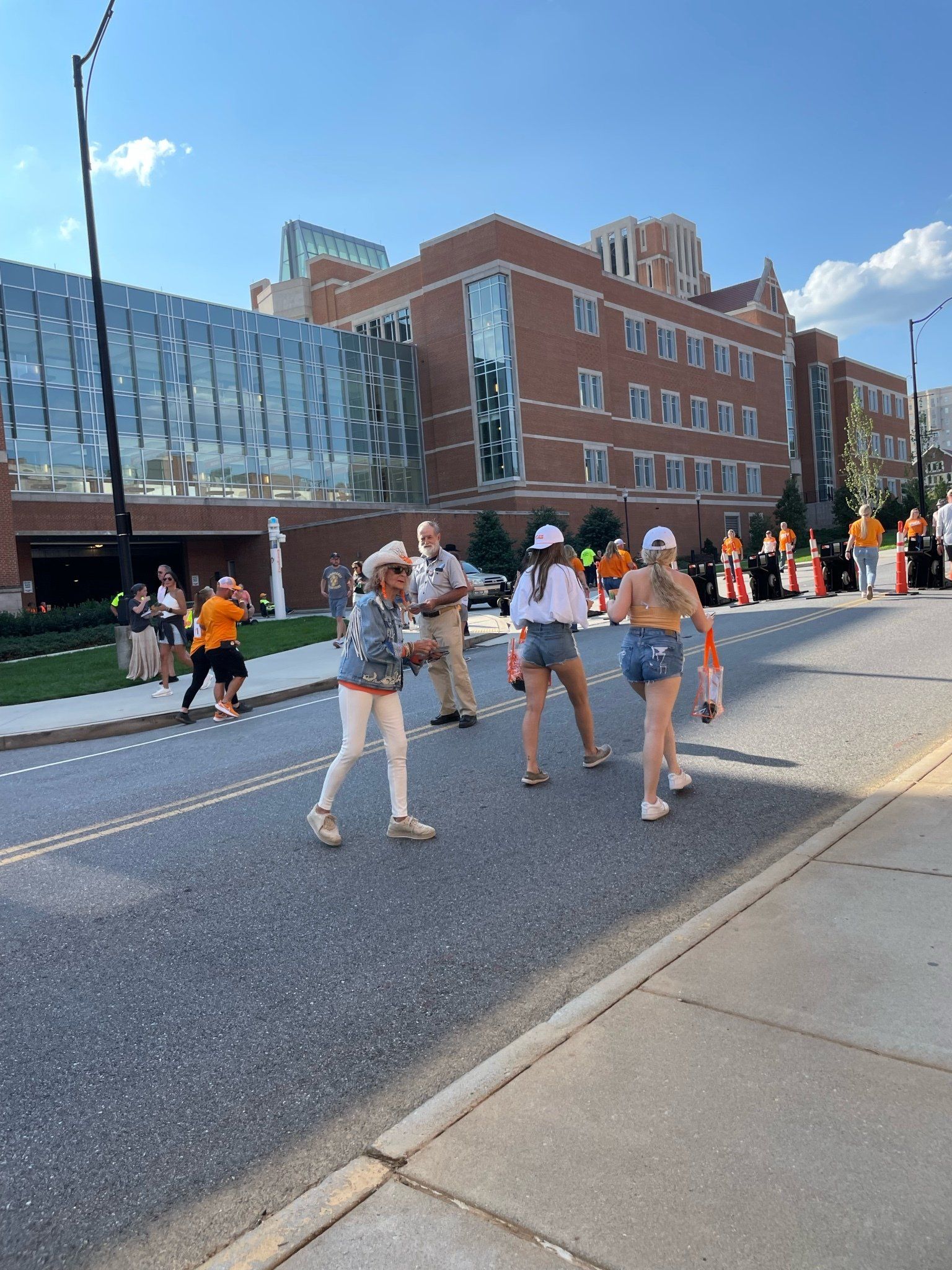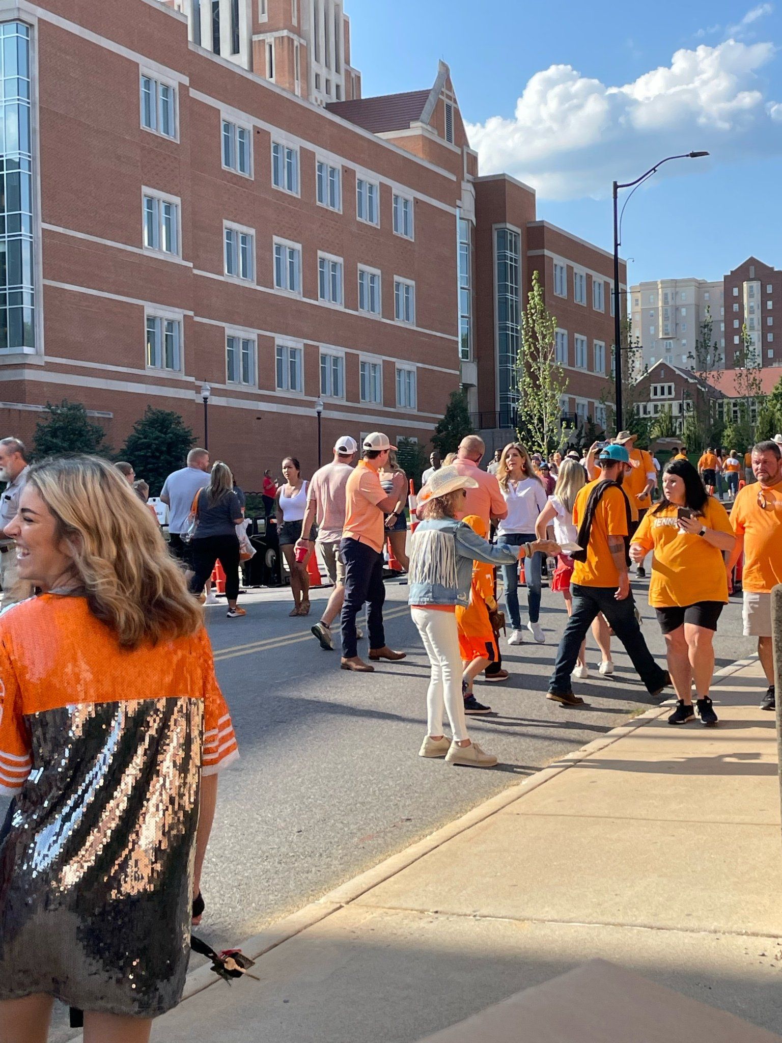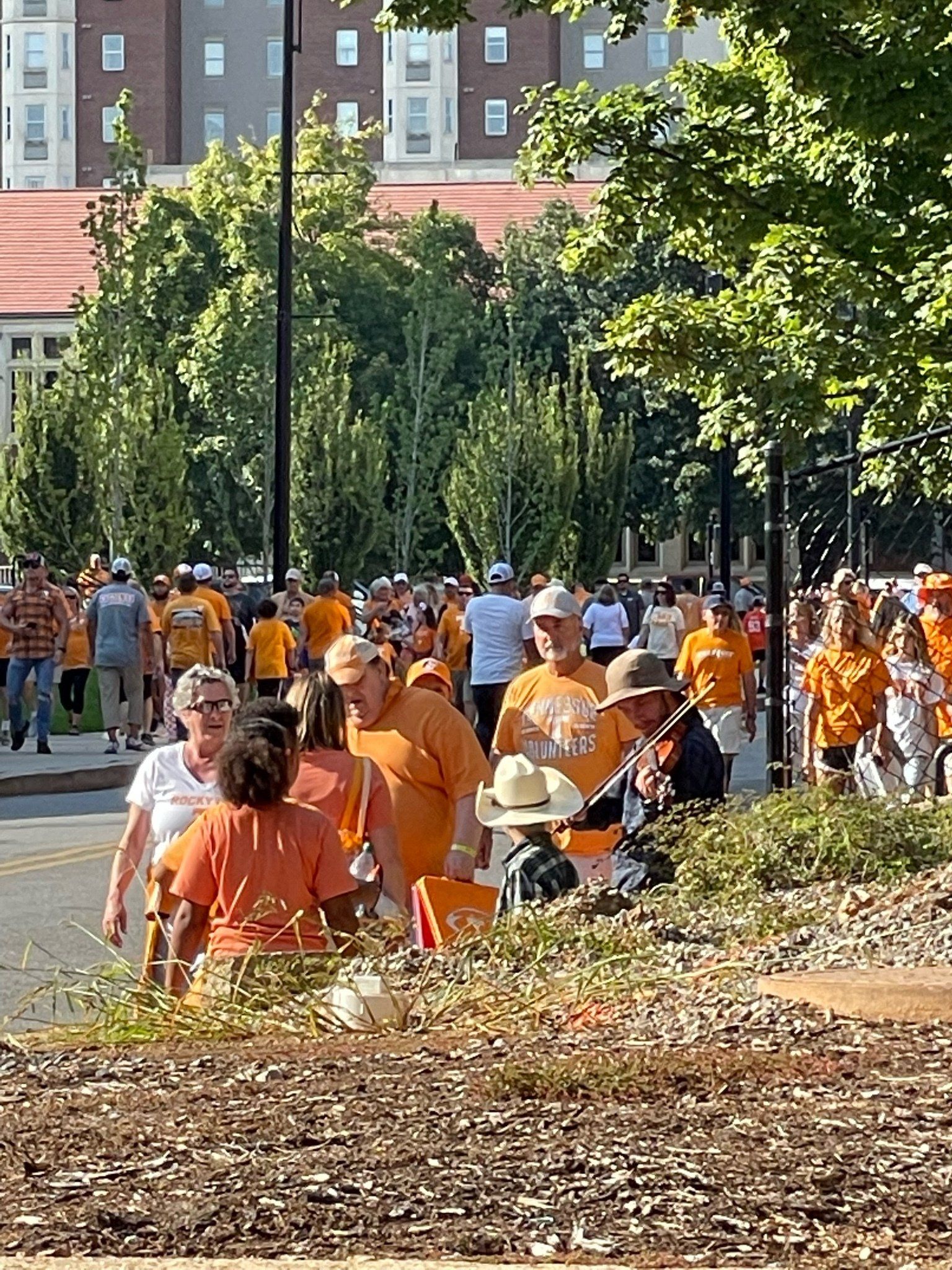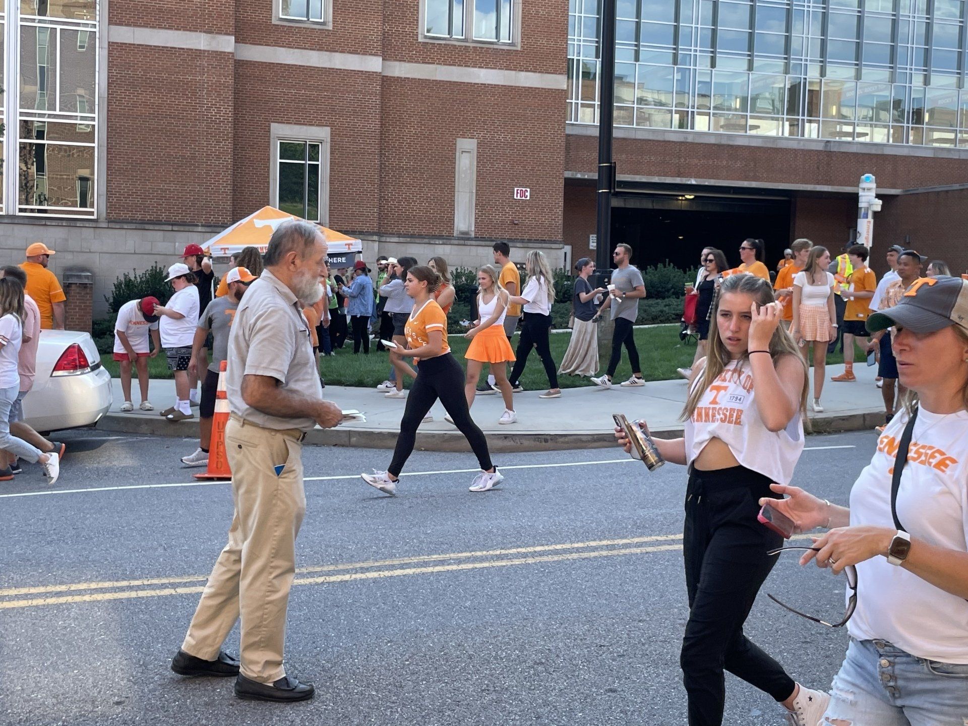 9/17 - Saturday's UT outreach was outstanding! First, Wendell Shrock brought 4 of his children with him; Wendell's friends Tony and then Matt joined us and another of their friends who was witnessing to the fans individually stopped by and lastly Aaron, at the game by himself, joined us. In all a total of 11 evangelists were at the game.