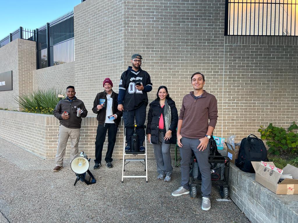 It was another great day of ministry at the Longhorns game! The evangelists present were Tom McLaughlin, David and Ana Santisteban, Chris Popso and Sebastian Cordova and myself. As we were setting up, one of the evangelists heard a comment from the crowd that said, “There they go again, preaching at the same corner.” We praise God that people are recognizing our consistency and we pray that they are also listening to the message that we are consistently preaching.