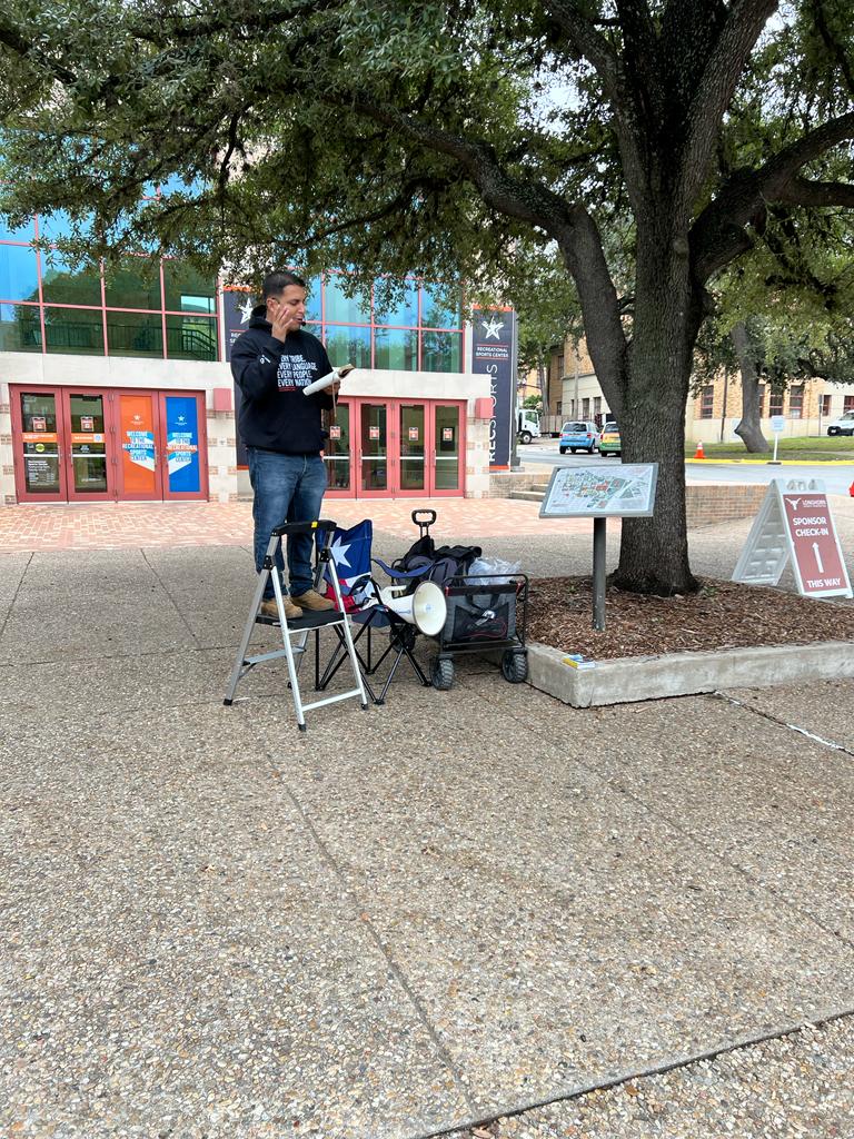Another evangelist named Drew eventually joined us, he got in the preaching rotation, and handed out tons of gospel tracts as well. Overall, it was a very good day of ministry. We had many positive responses from the crowds. One older woman even came up to us, gave us a hug, and told us that she was so happy that we were out there. That was very encouraging to us. We praise God for all the opportunities that we had this season to minister to the lost here in Austin. We pray that God will use the preaching of His Word for His glory!