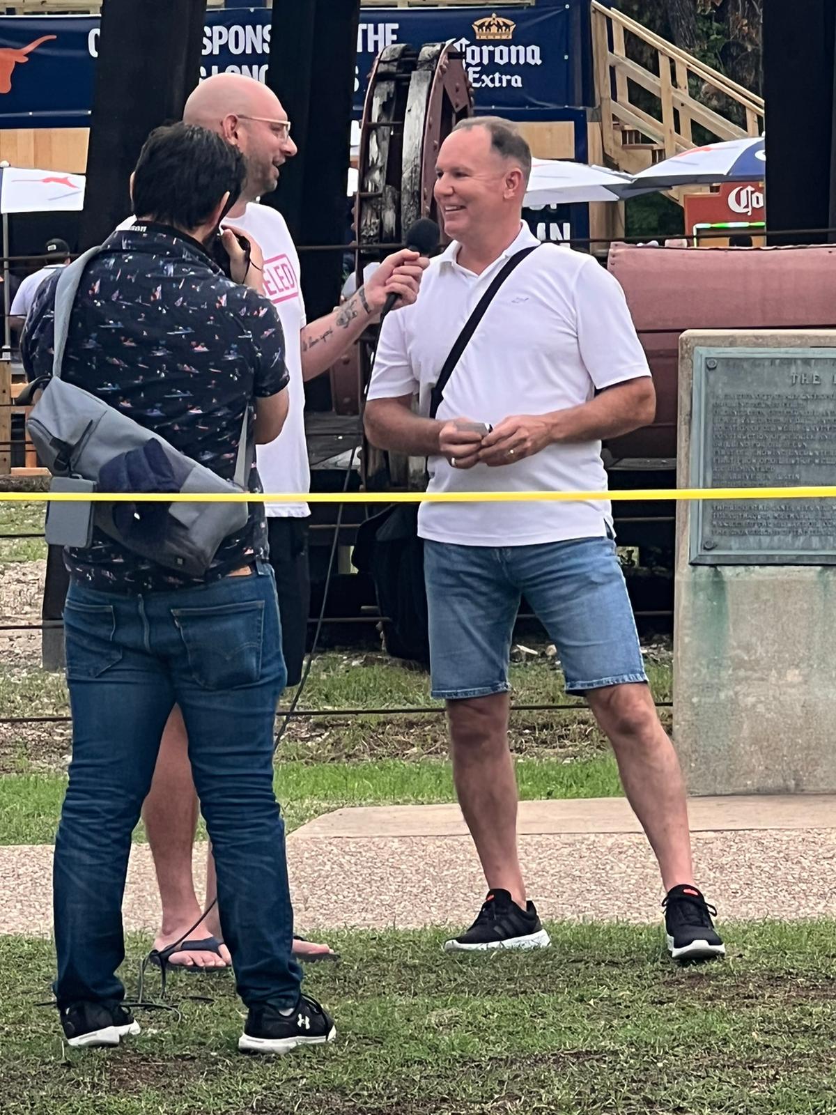 During these three hours, we handed out hundreds of gospel tracts. We pray that the Lord will use some of these to bring people to Himself. We also had the privilege of engaging in several gospel conversations. In one memorable instance, two individuals approached Kurt with a microphone and some recording equipment and asked him if he would be willing to be interviewed for their podcast. Kurt of course agreed and took this opportunity to proclaim the gospel to them and to the listeners of that podcast. Praise God for that opportunity.