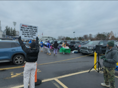 We had a fruitful time of street ministry at the Military Bowl in Annapolis today. We were also extremely blessed as the Lord held off the rain. We spent five to six hours preaching and moving to where the crowds were, and the Lord was truly with us. We were able to pray for someone in need, and it was a joy to watch Roy witness to a group of children. We left feeling blessed and thankful for the seeds planted today. We thank you Lord for your grace and protection in the name of Jesus