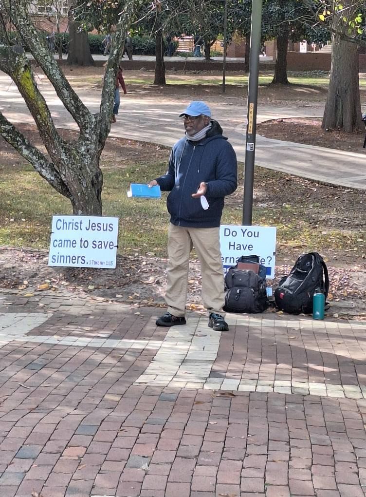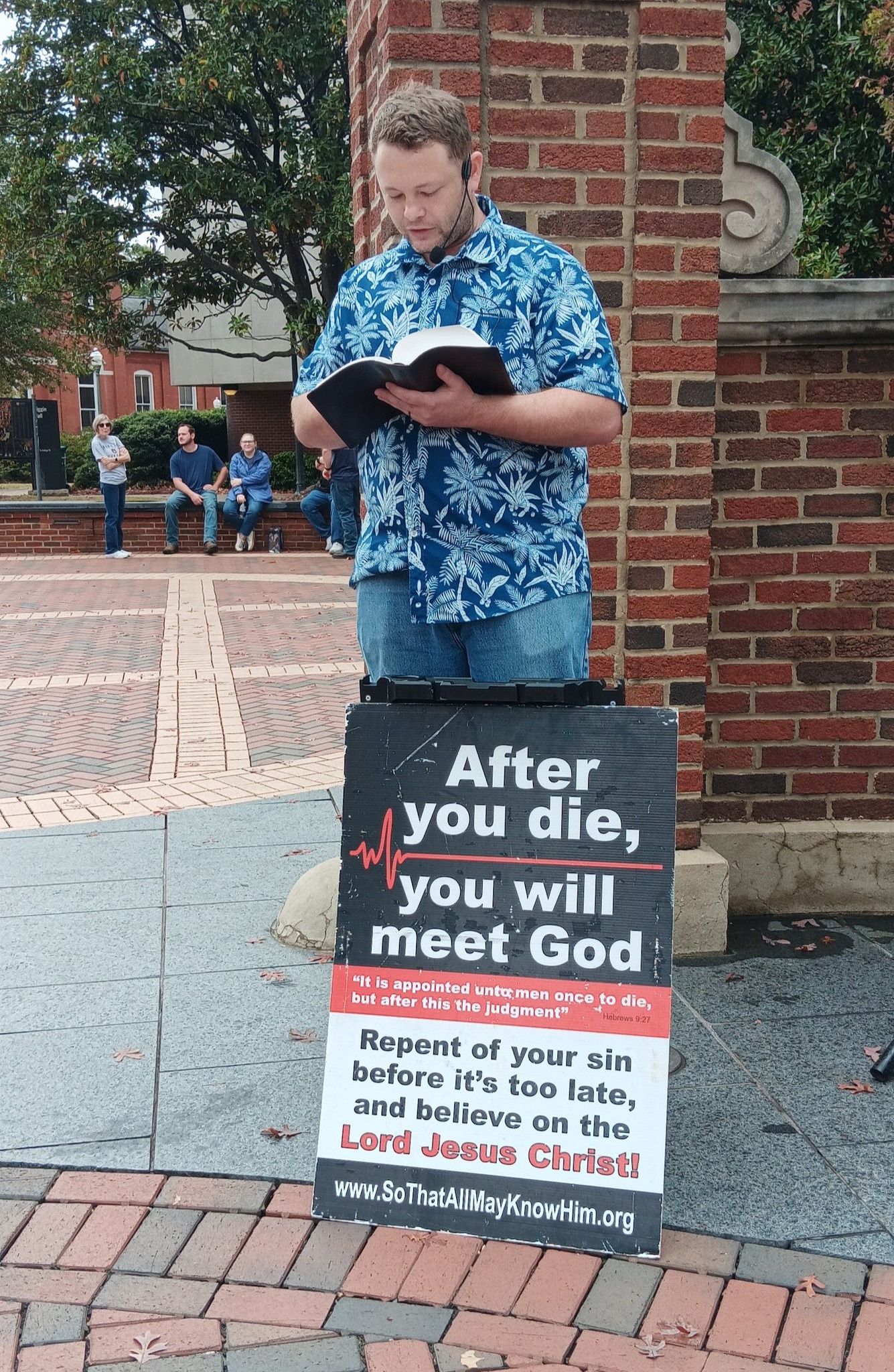 Saturday was a gorgeous day to be outside preaching the Gospel. Brother Ken White was with me. South Carolina fans did not disappoint. They showed up by the thousands, and they heard the gospel. One who stopped to listen said he had a better understanding of the atonement. He seemed to be someone God is dealing with, maybe on the cusp of belief. Another stopped to listen and to give encouragement, as he was a believer. Ken preached and ministered to a group of young men who were professing believers but still walked in their sin. Our prayer is that God will use these encounters to work faith and salvation into their lives.