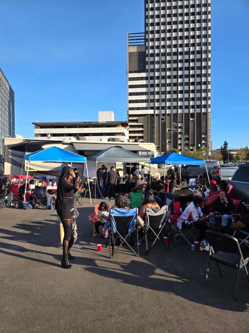 We had a small team of two men, as some men went elsewhere and some could not for various reasons. We proclaimed the gospel for three hours and passed out lots of tracts. We were blessed with a number of conversations and prayed with some people. A lot of believers going to the game thanked us for being there