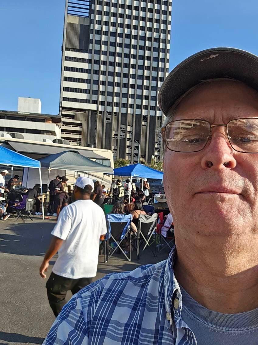 A man took a selfie with me. He said, "Thank you and God bless you brother."