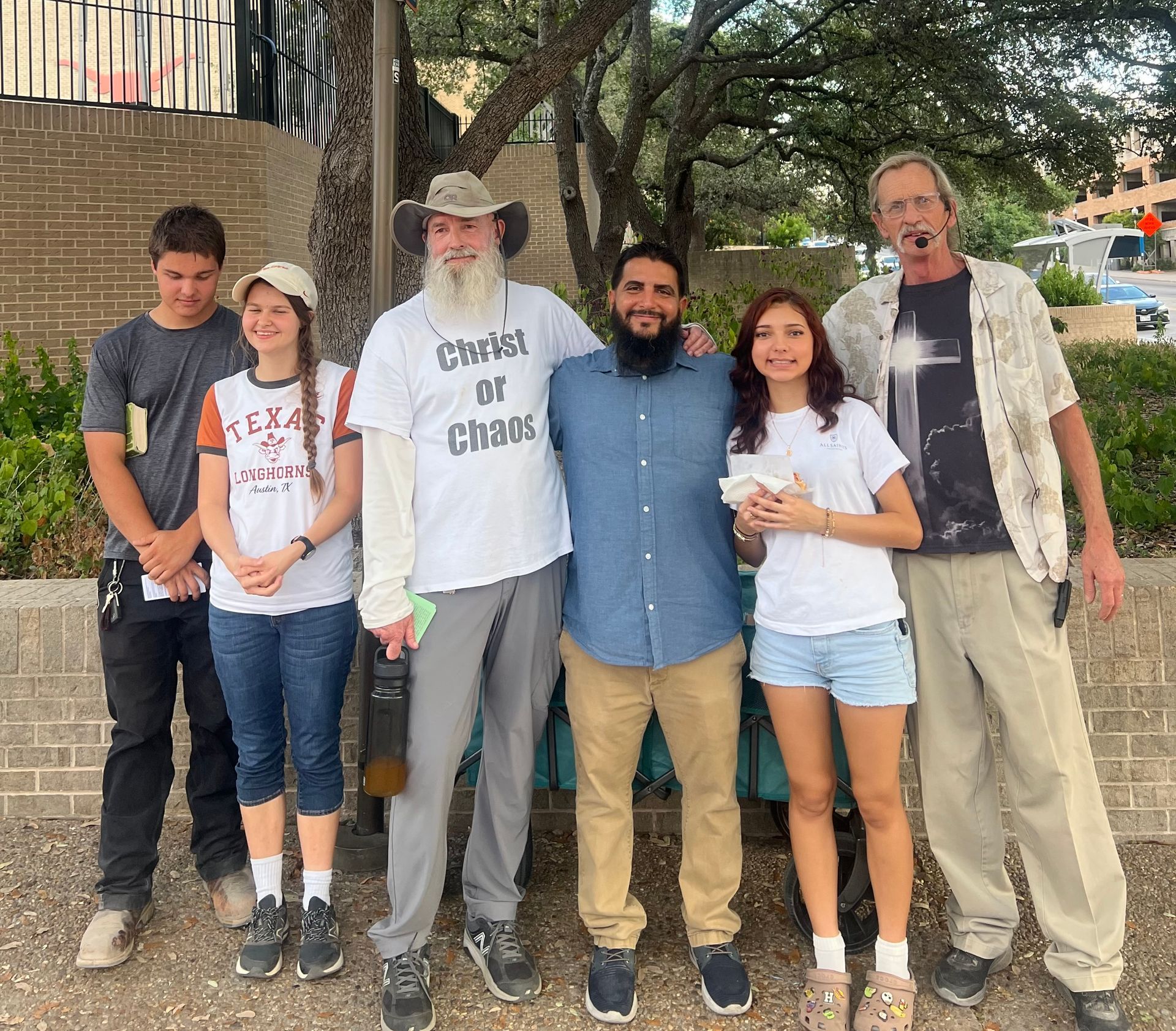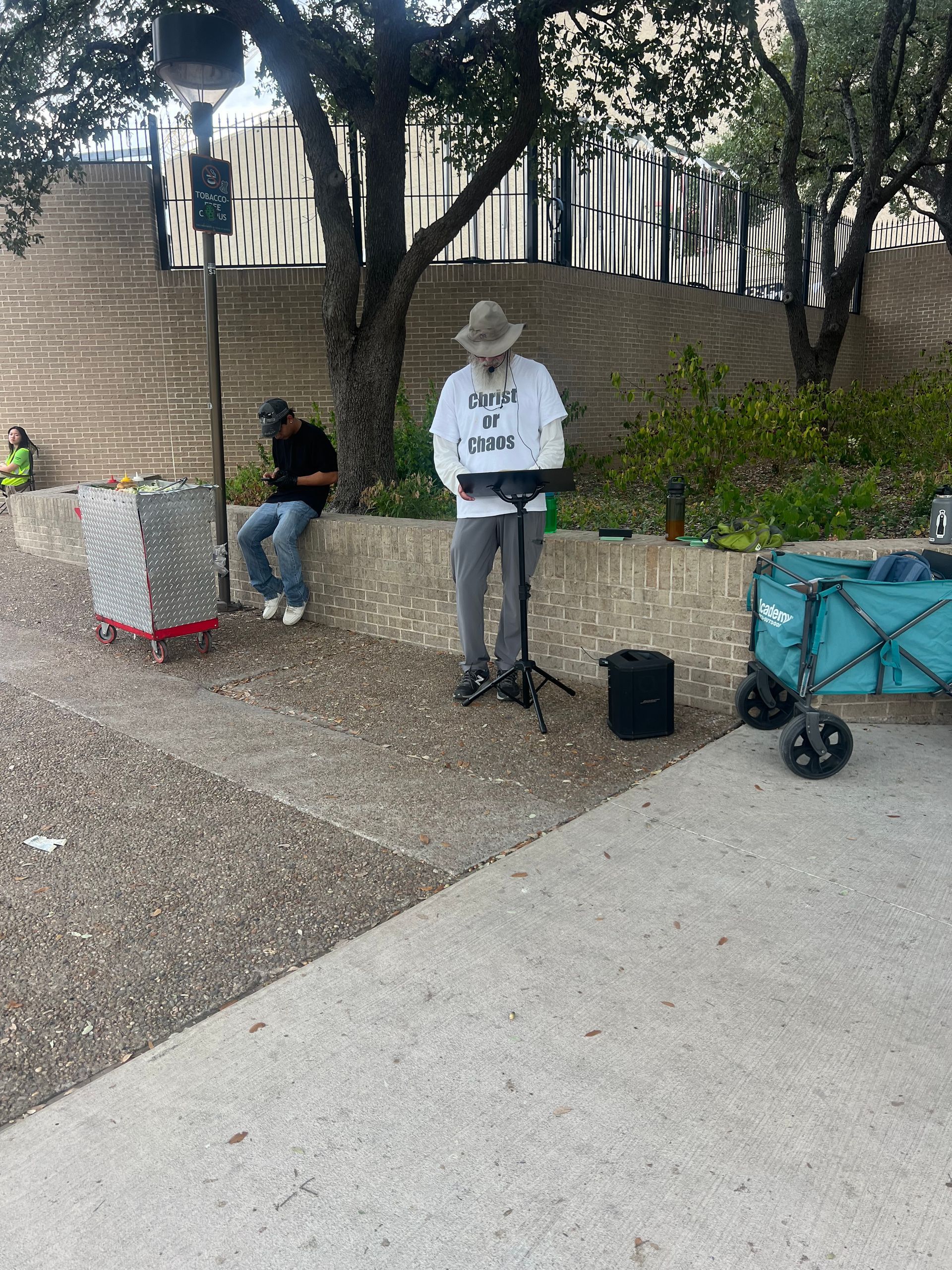 The crowd wasn’t as big for this week, but we were still in an area of good foot traffic, and we ended up splitting the group to cover more ground after about 25 minutes. There was a lot of positive feedback from passerby’s, but we didn’t have as many conversations as last week. We did have a few good ones though, and Grayson, John and Jim Shaw preached messages in the open air.