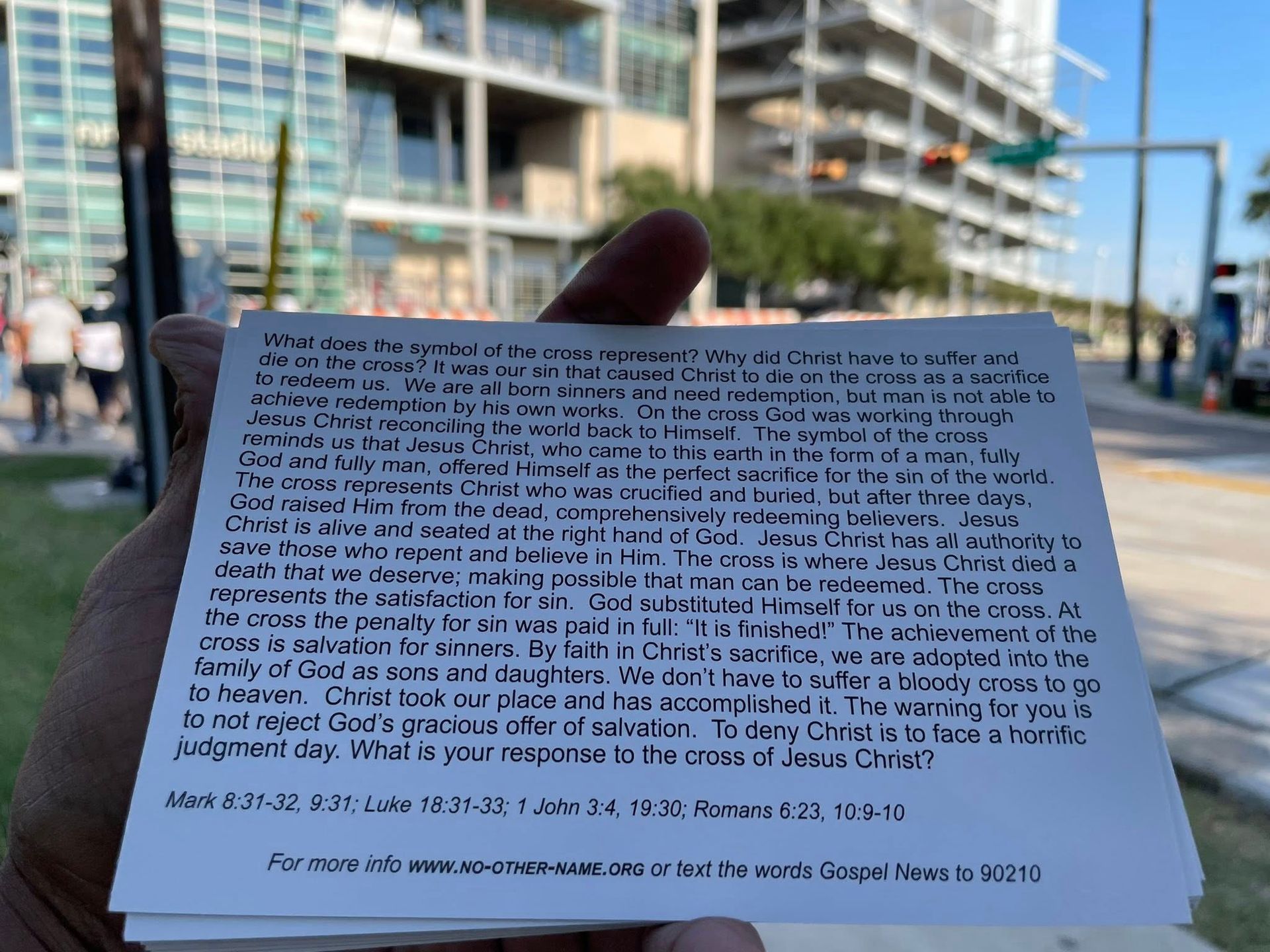 Though by myself again this week I had a wonderful time passing out many tracks this week. Several Christian’s there also thanks me for being at the game. Had a great conversation with one particular individual who I thought at first was a heckler but he ended up being a seeker and he was very open to the message of the gospel. Also invited him to my church.