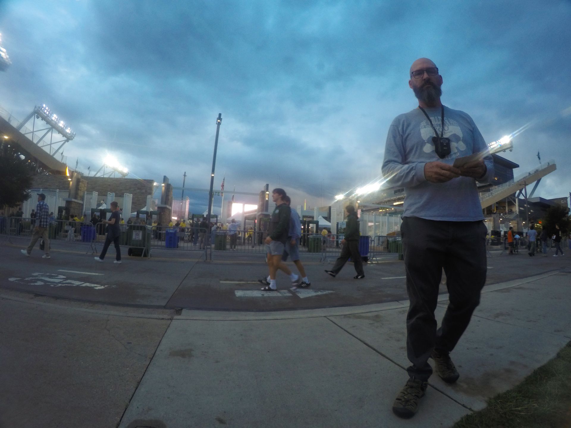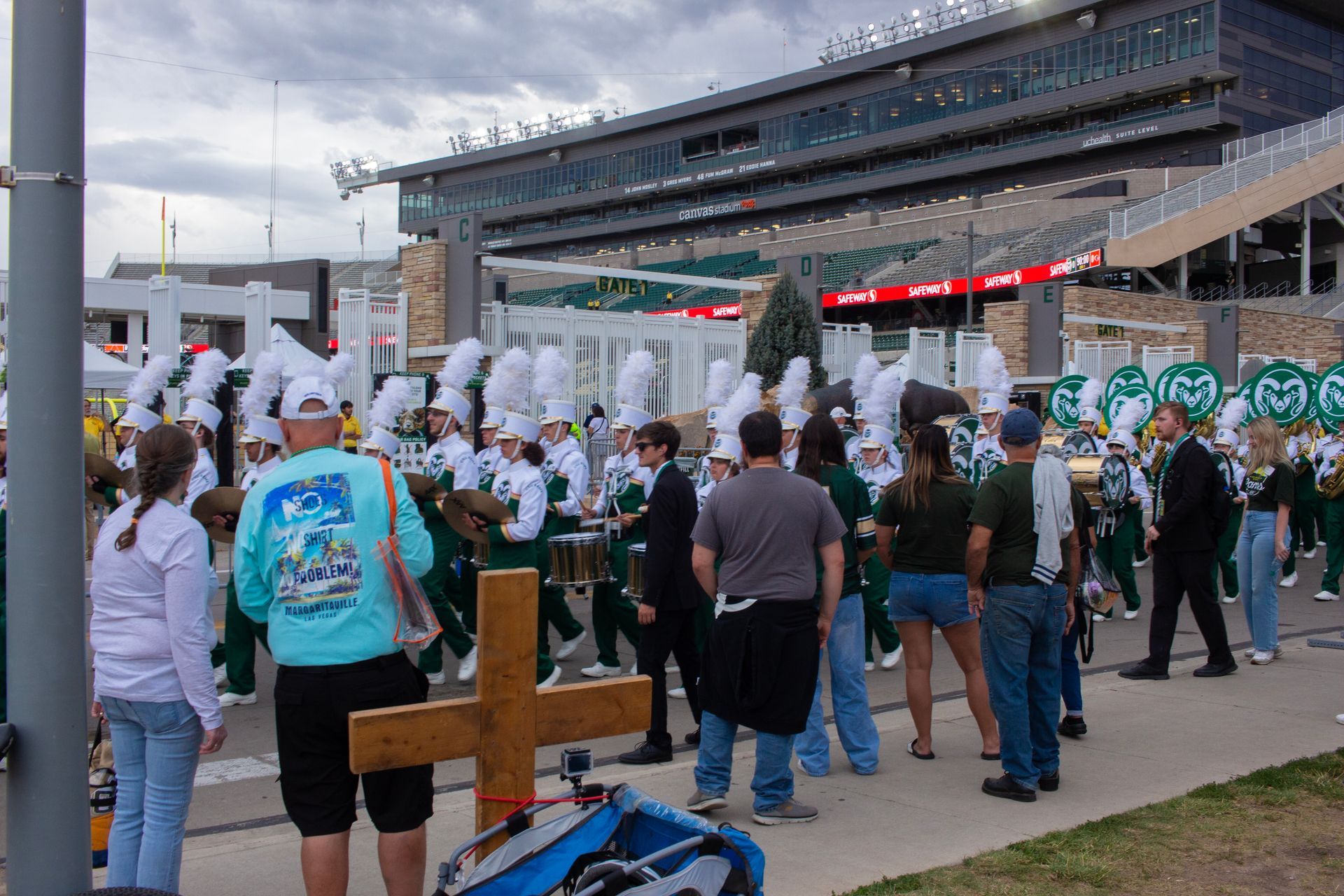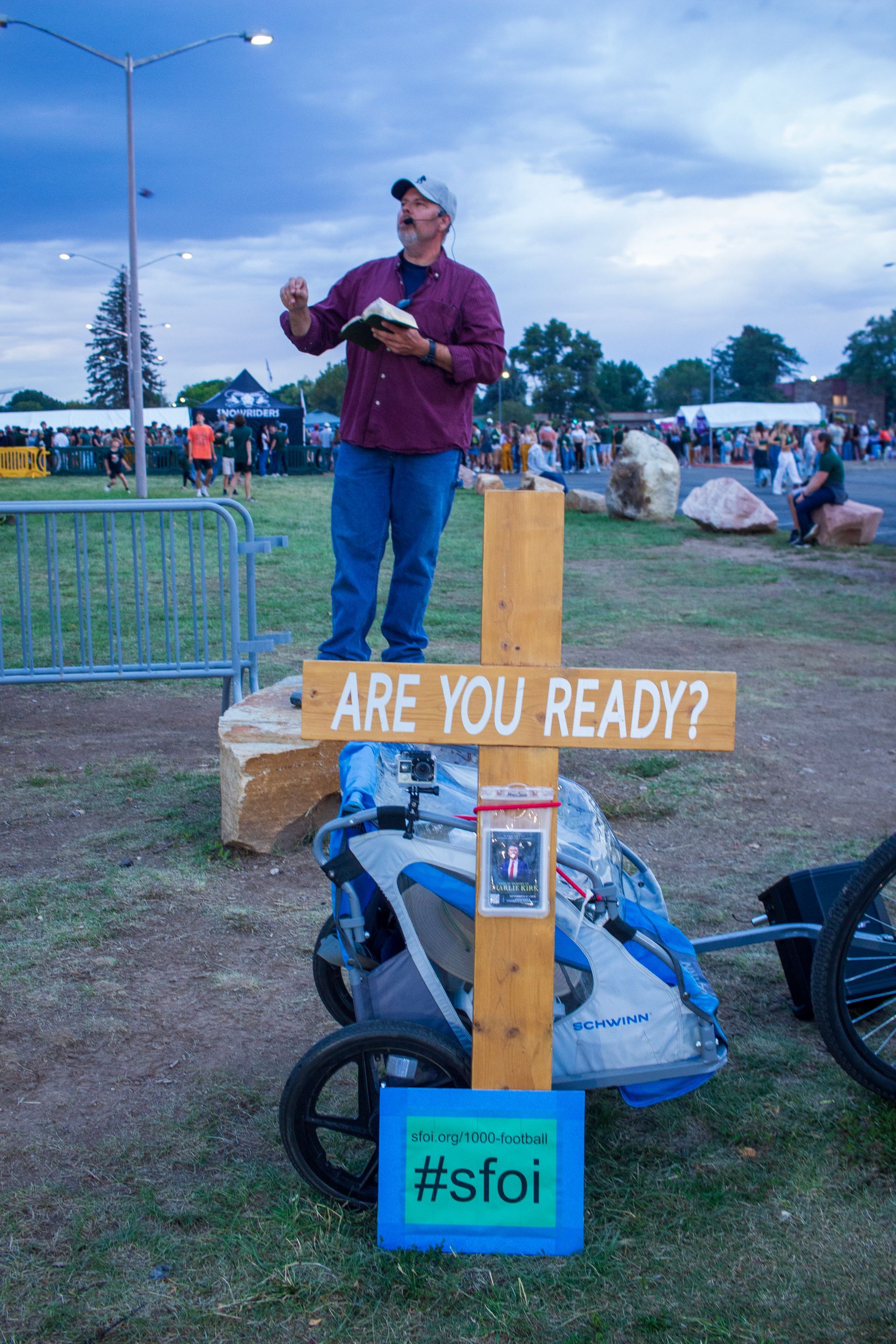 Mike and I were out at Canvas Stadium for the CSU Rams v the USTA Roadrunners game. I arrived about 5 pm and stayed until about 8:30 pm. Mike had to leave a bit earlier. We were able to preach to the fans for a good portion of that time, leading up to kickoff at 7:30 pm. Our message was about Christ suffering for us so that we would not have to be afraid or troubled when we are called to suffer for righteousness' sake. 1 Peter 3:13 "Who will harm you if you are devoted to doing good?" The answer is that no one can ultimately harm you in that case. Even if you are persecuted for Christ, you are blessed. We pointed out that CK, as someone who strove to interact with people with gentleness and respect as he defended the reason for the hope he had in Christ, was and is a great example of that truth. After the preaching, there were about 5 or 6 students that engaged me in conversation for about 45 minutes. It was a great opportunity. I praise God that my brother Mike could join me and I was blessed by his preaching! Join us if you can! Next home game is on Sep 27th.