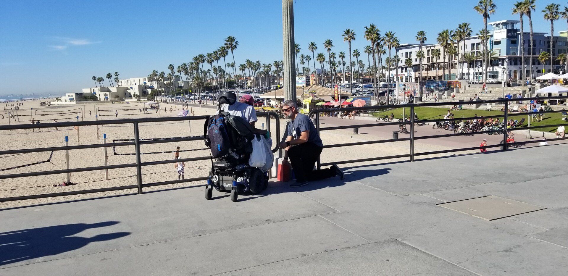 Day 2 was a nice change. Hollywood Blvd. can be a bit hectic and wear on you after an entire day so going to Huntington Beach Pier on day 2 was a nice change. Again, as Rich and I went to park, Scott got the team set up on the pier and began preaching, passing out tracts and engaging people in conversation. A man came up in a wheelchair who had asked God that morning how he could serve Him on that day (paraphrase).