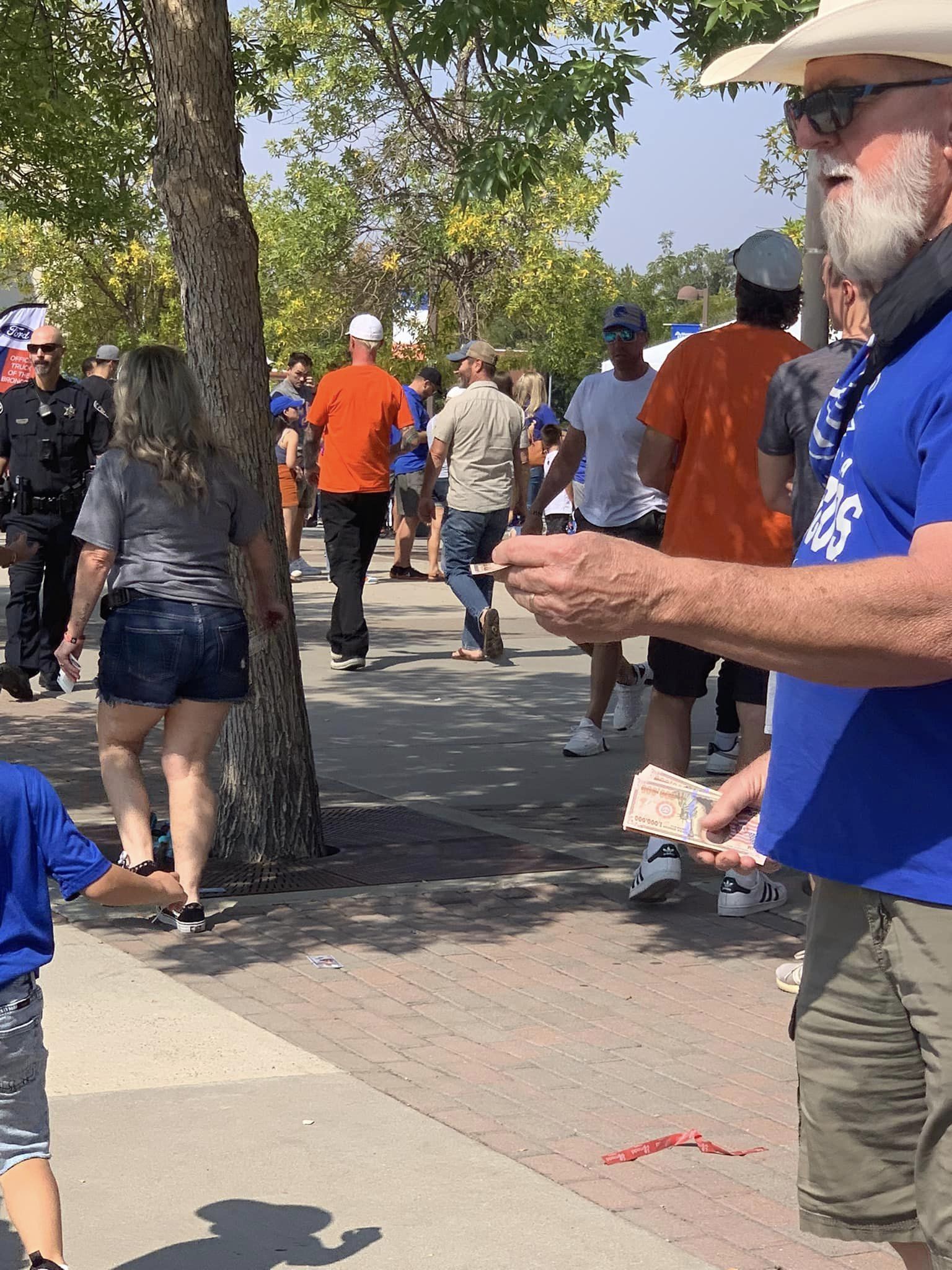 I was blessed to partner with Robert Viera, his wife Beata. Our outreach began at our usual spot near the C Gate—the main Albertsons Stadium entrance. We arrived a little over two hours prior to the 5pm kickoff.