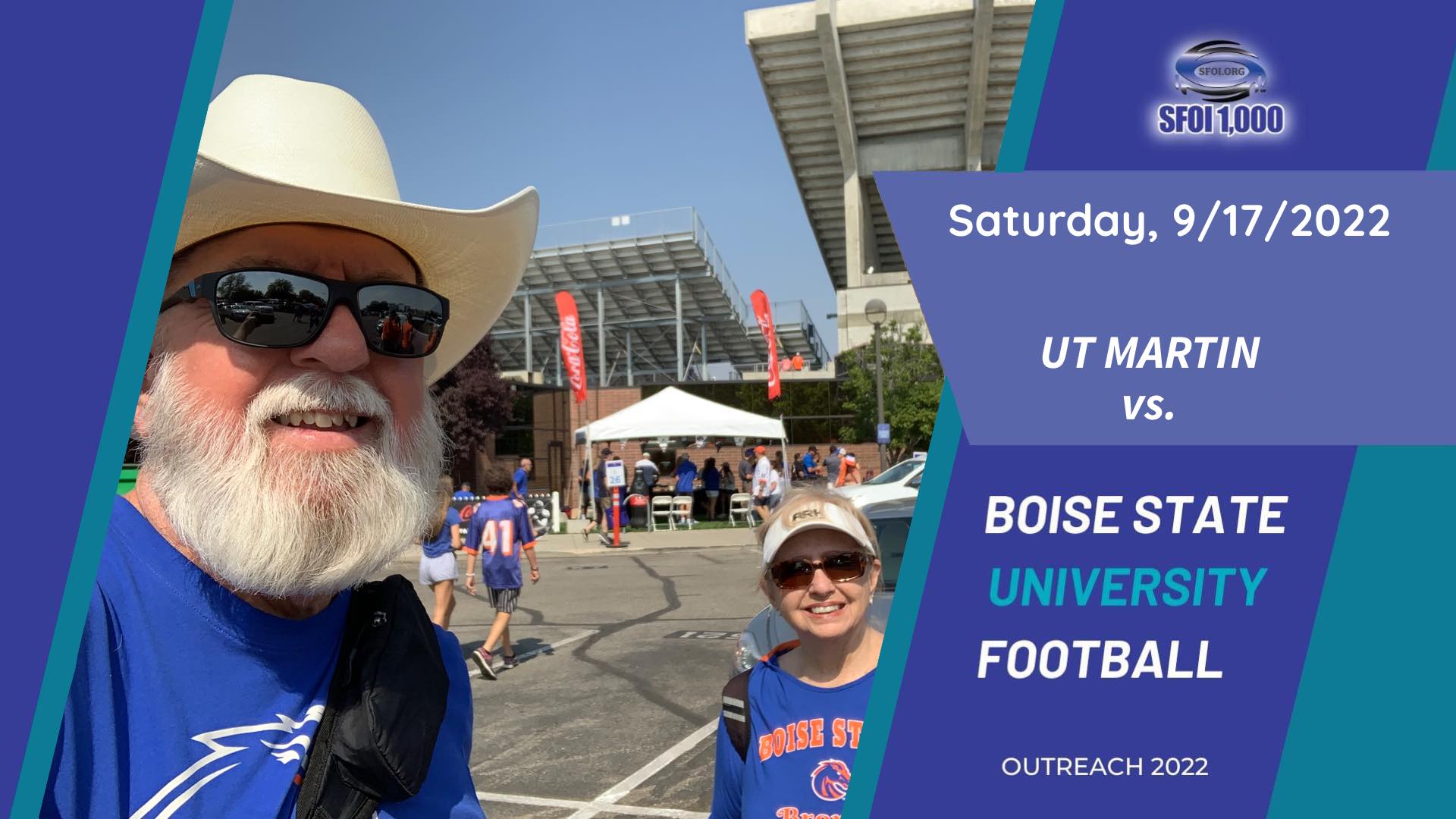 My wife Rosie and I were blessed to outreach this afternoon’s UT Martin vs Boise State (BSU) football game at Albertsons Stadium on the campus of BSU.
