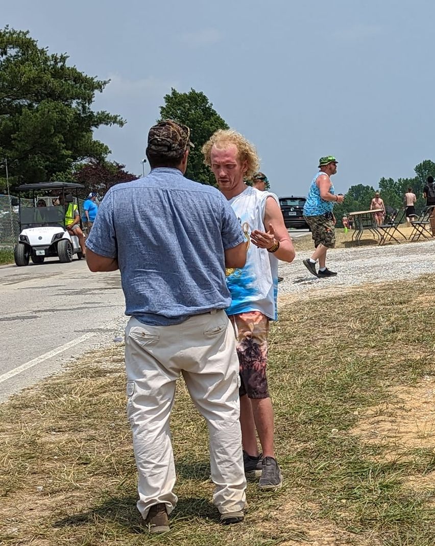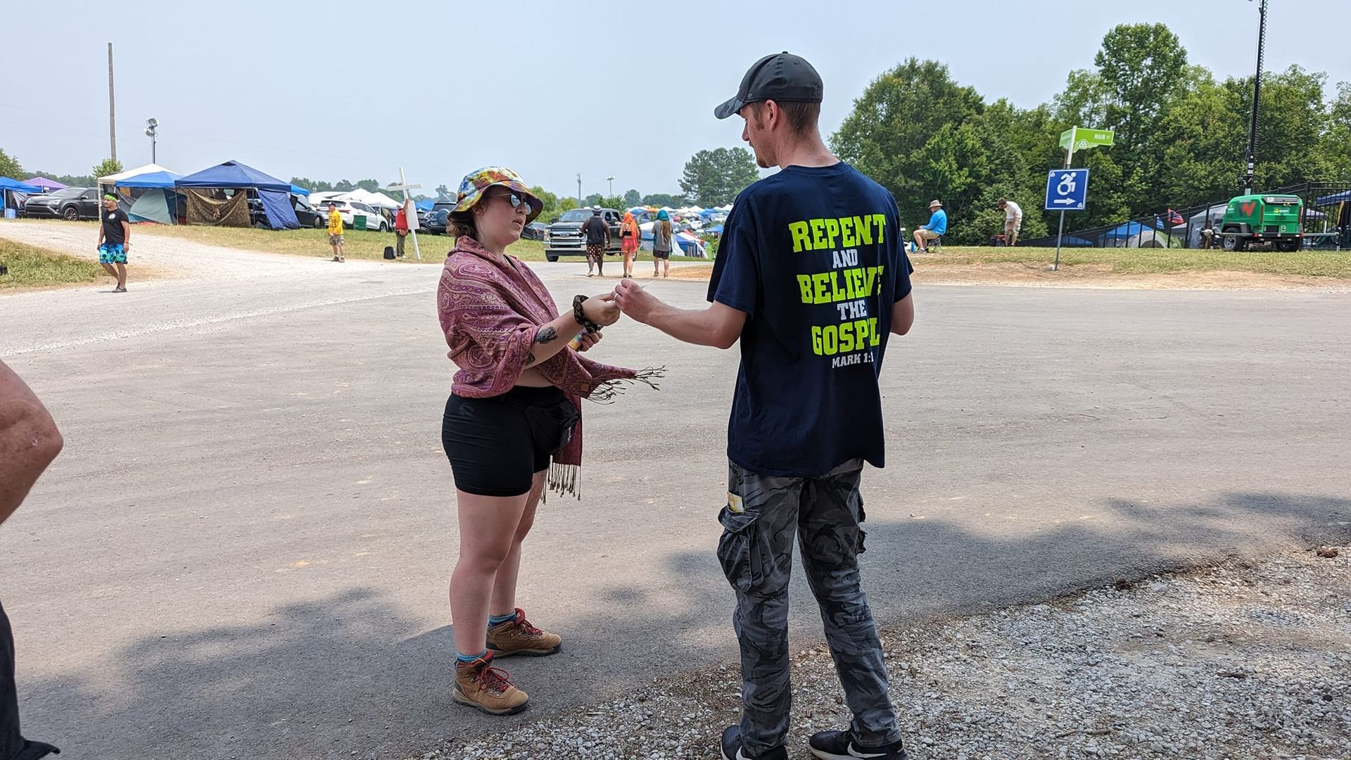 This heckler and his friend approached Andy and debated about the origins of the Bible