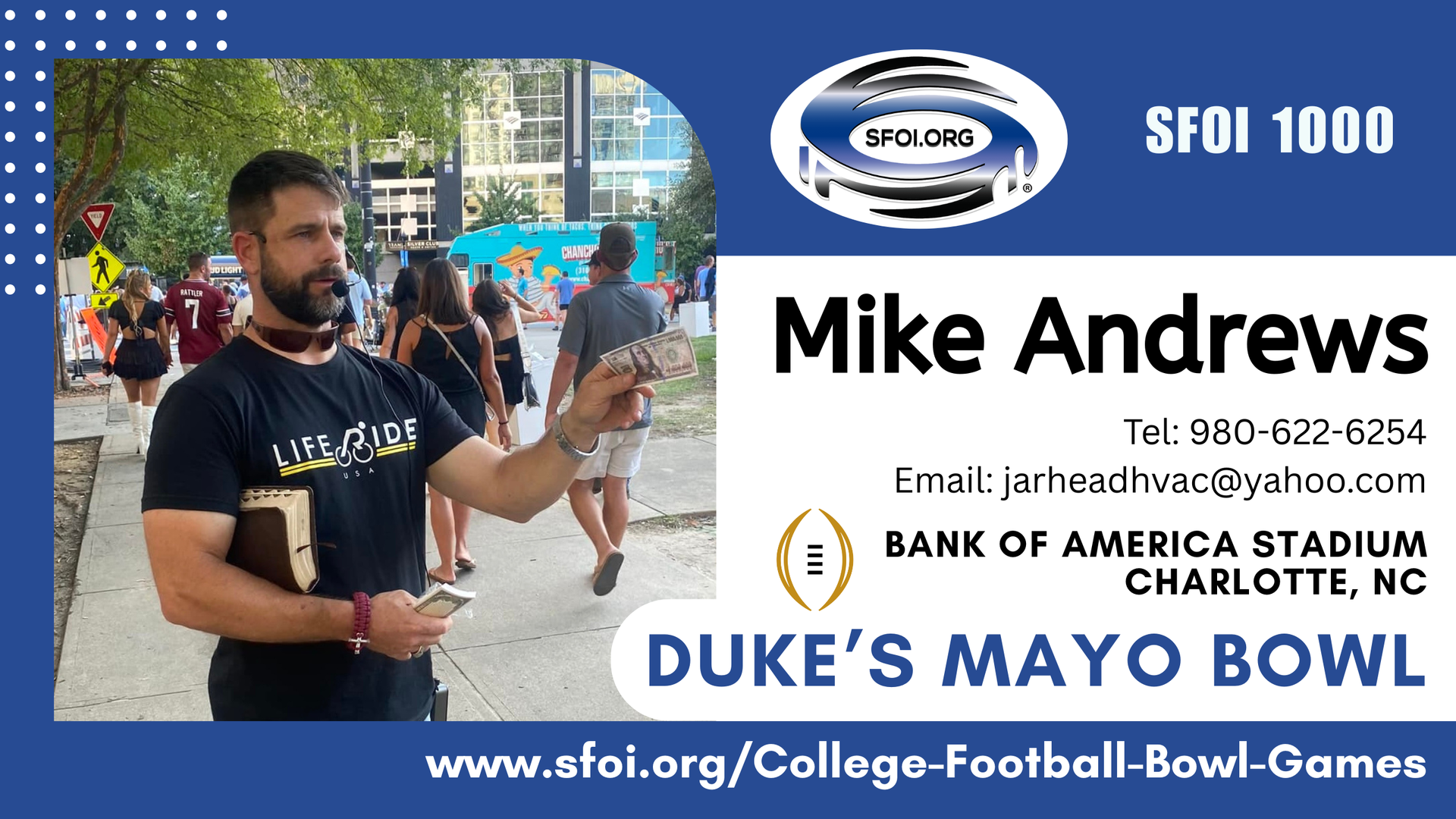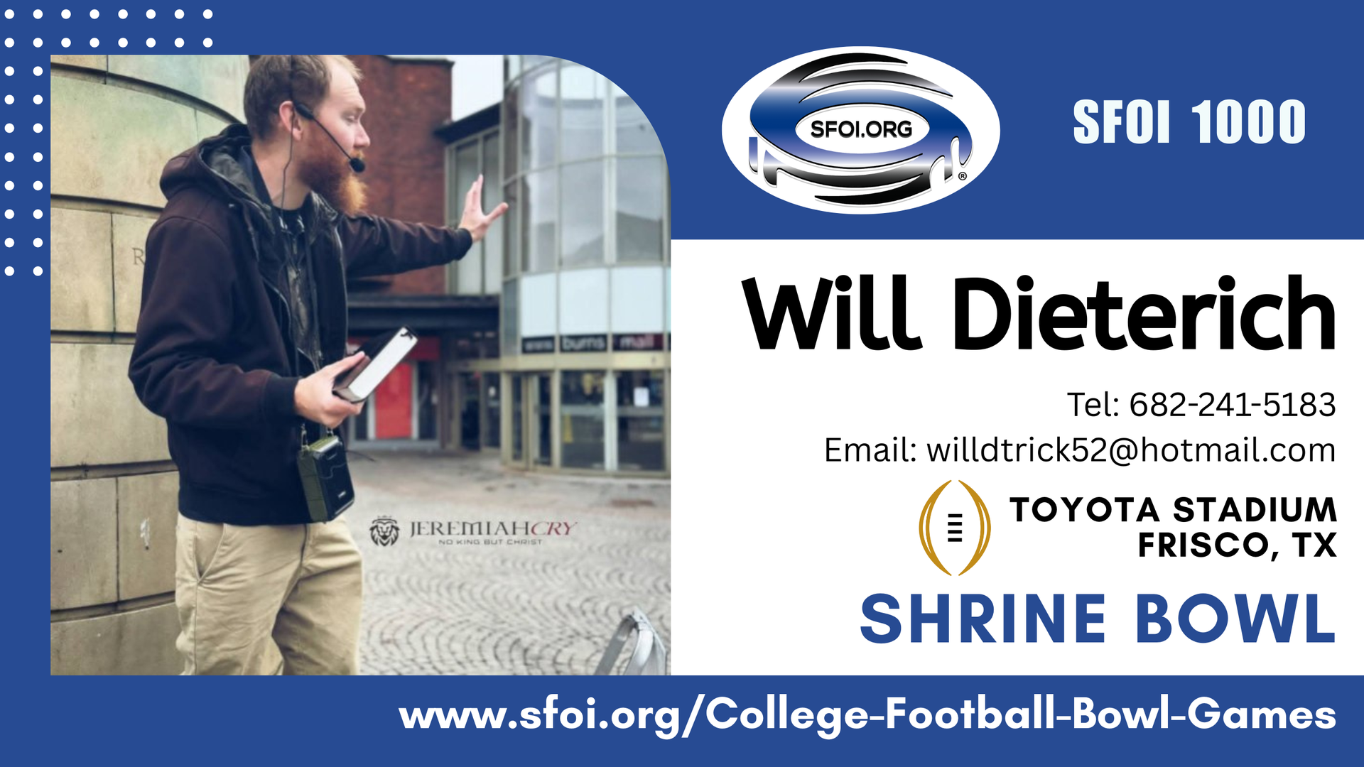 If you can preach at one or more of these Bowl Games then please email: info@sfoi.org or text: 423-250-9308. Click the link of the game and the page will scroll down for you to see the details: location, time, etc.