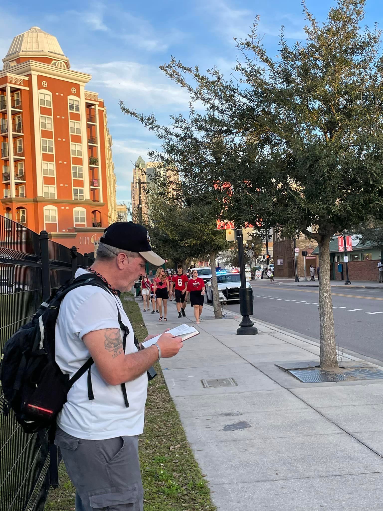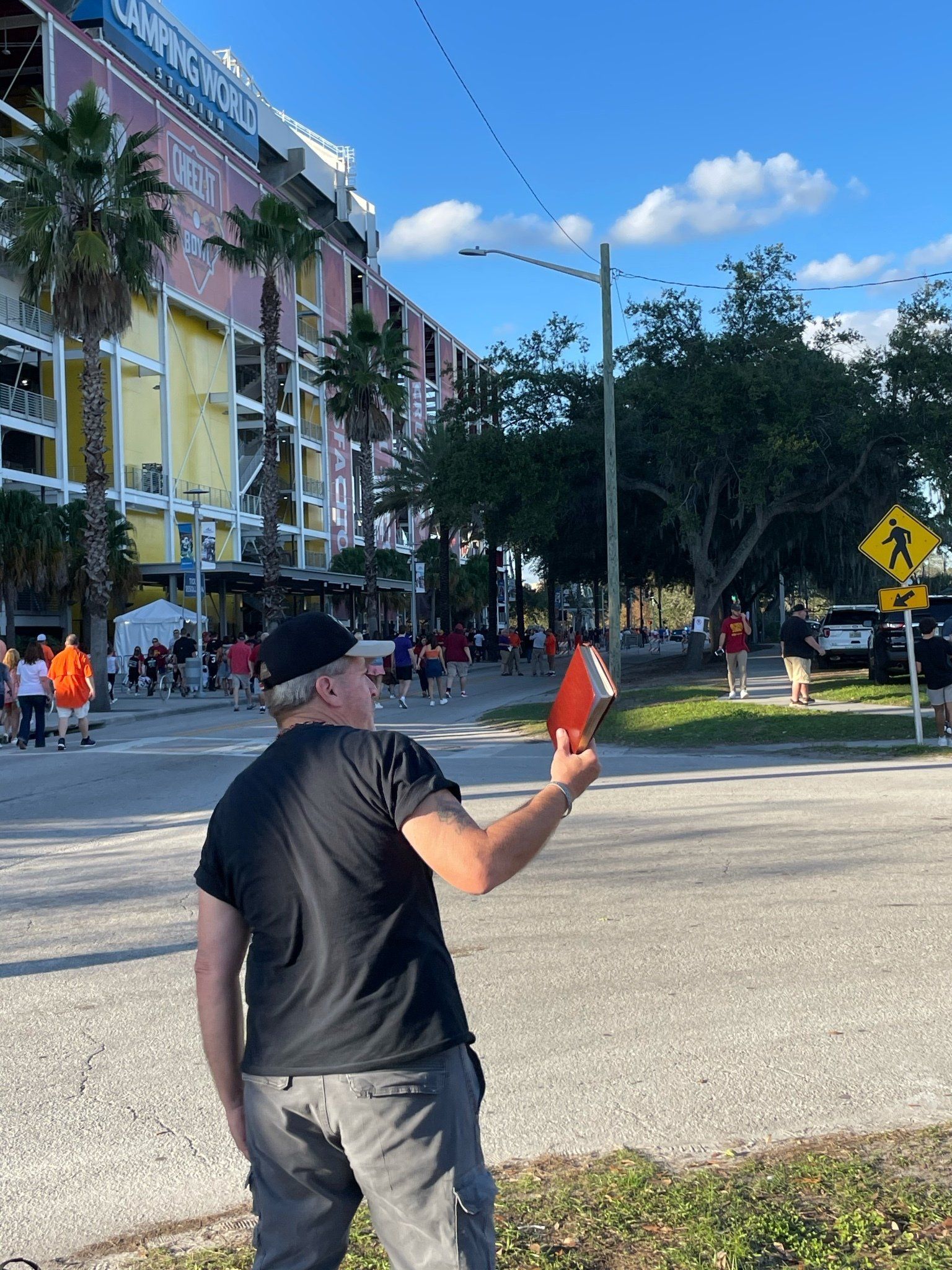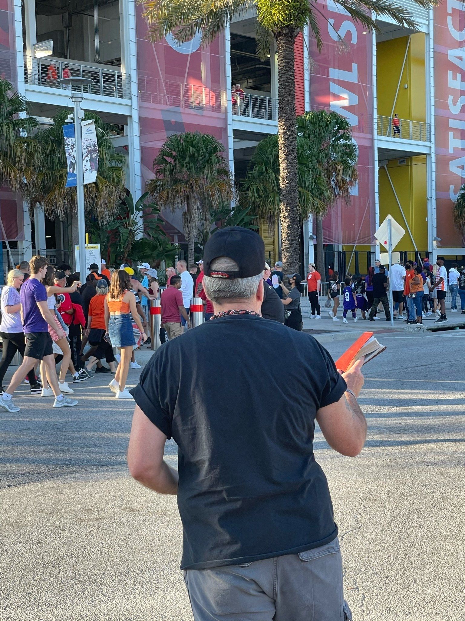 Gasparilla Bowl-a couple of crowd views and intersection pictures. Great night of Gospel preaching! Saw an old ticket seller friend and lots of affirming responses. Christ was exalted so He would draw all men to Himself and the Father glorified thank you Holy Spirit to bring to remembrance what needed to be said.