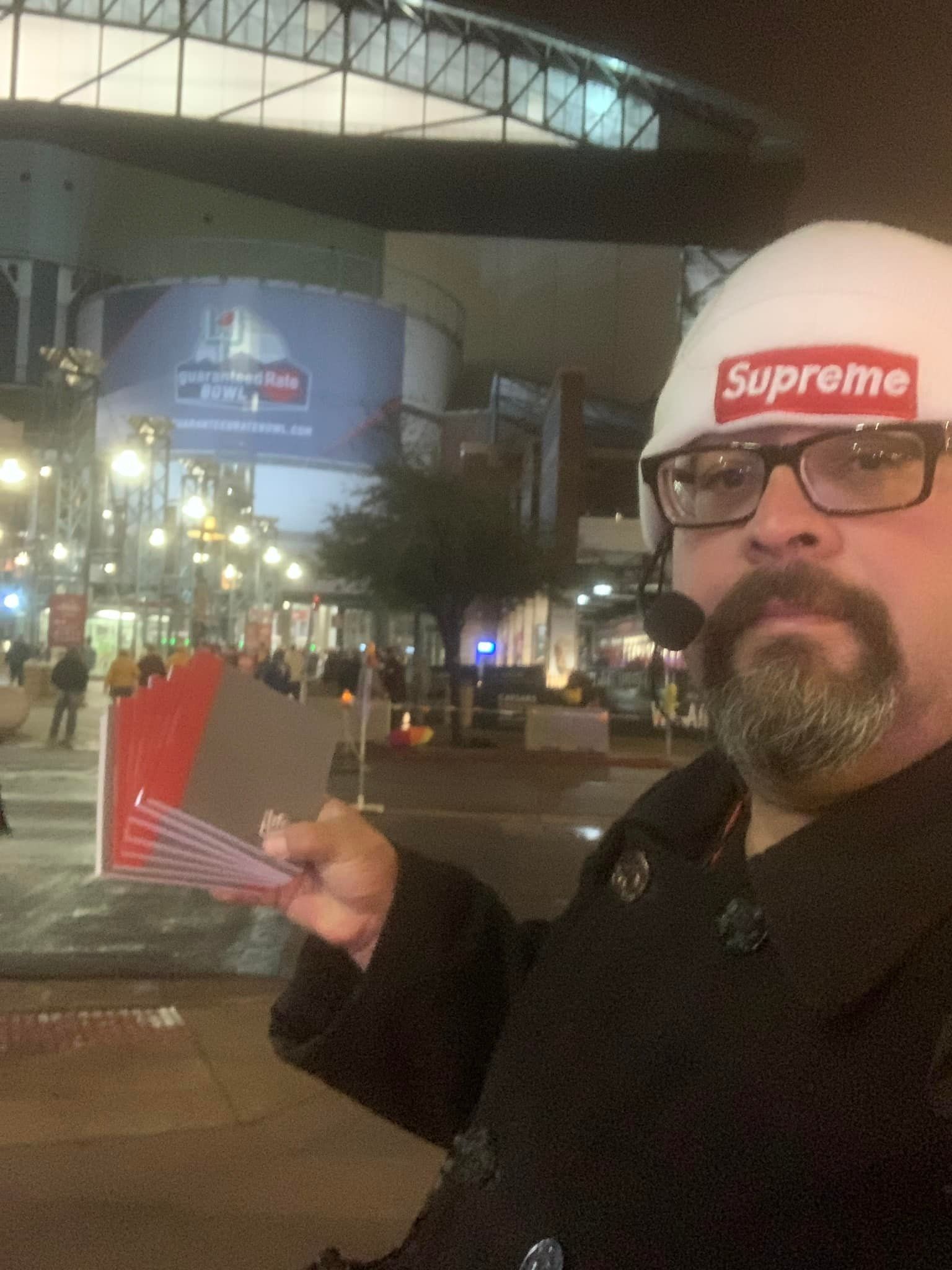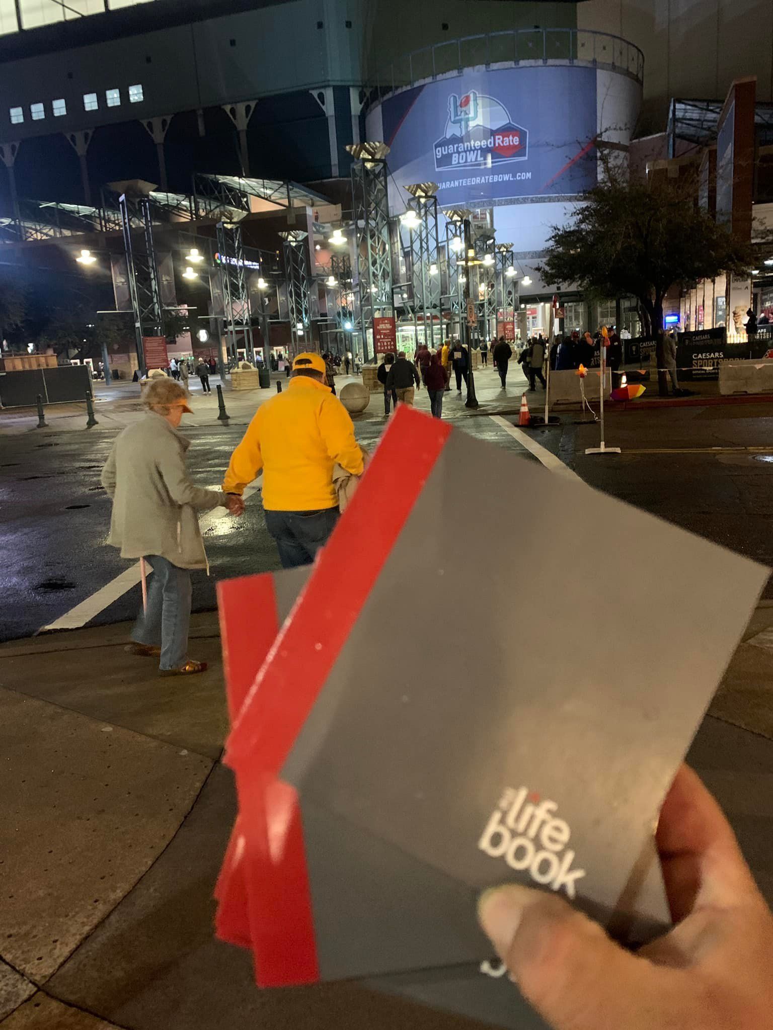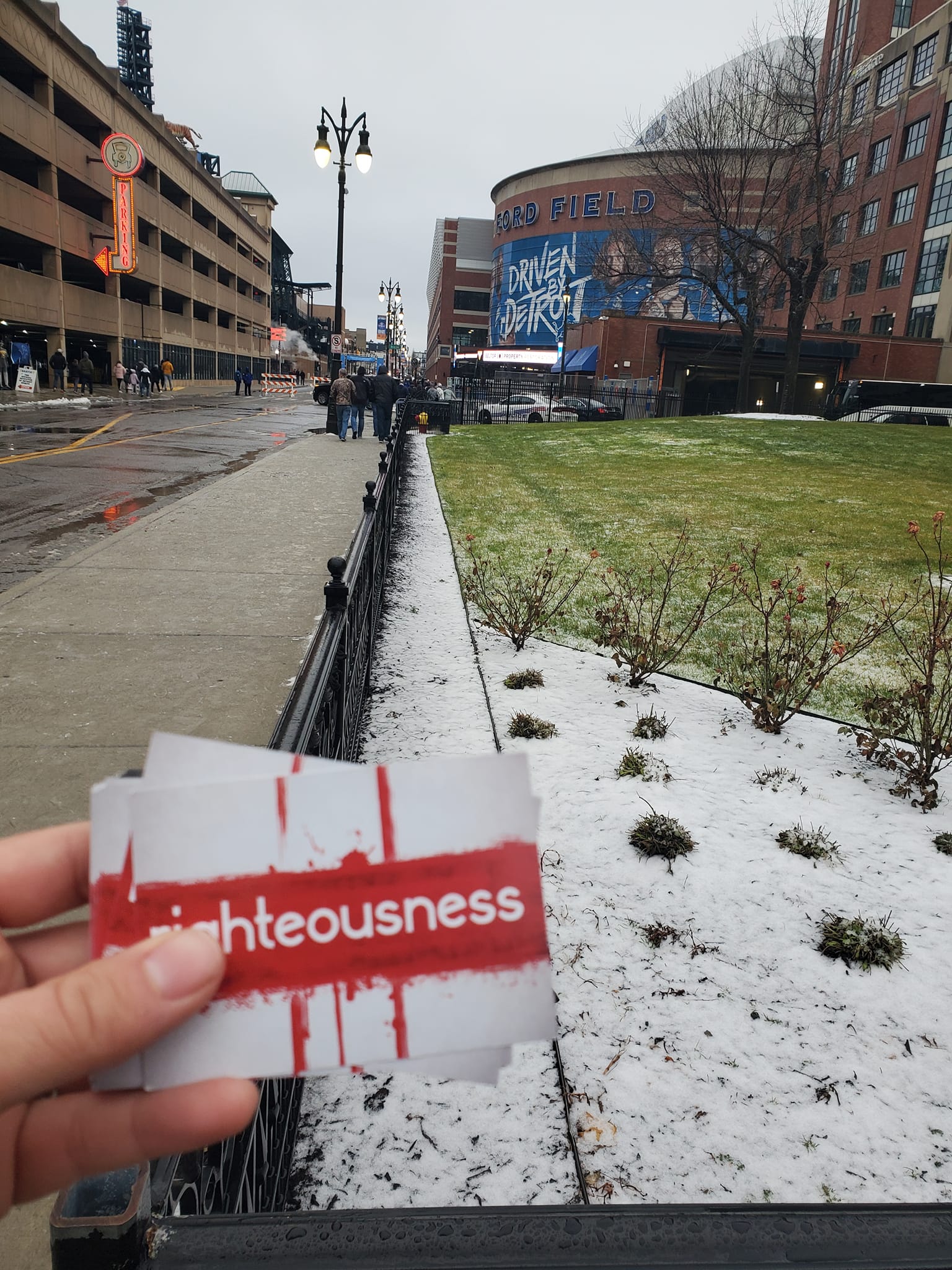 Praise report! 300 miles and over 5 hours of driving later, 381 positive responses at the SFOI Quick Lane Bowl in Detroit, MI made it all worth it. 100% chance of rain was prayed away, and stayed dry and warm the entire length of ministry. One highlight was a fan had his selfie stick out while I was singing Christmas carols, and filmed me afterwards giving me $2. All glory to God! #SFOI1000