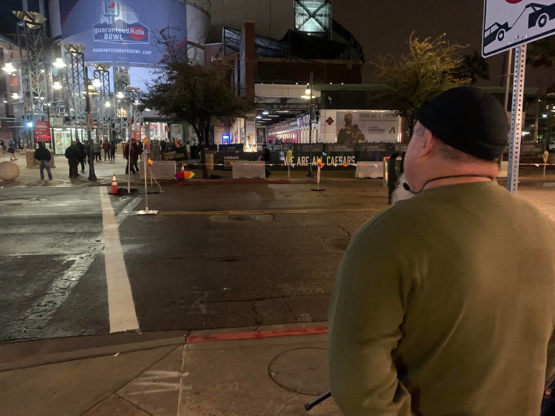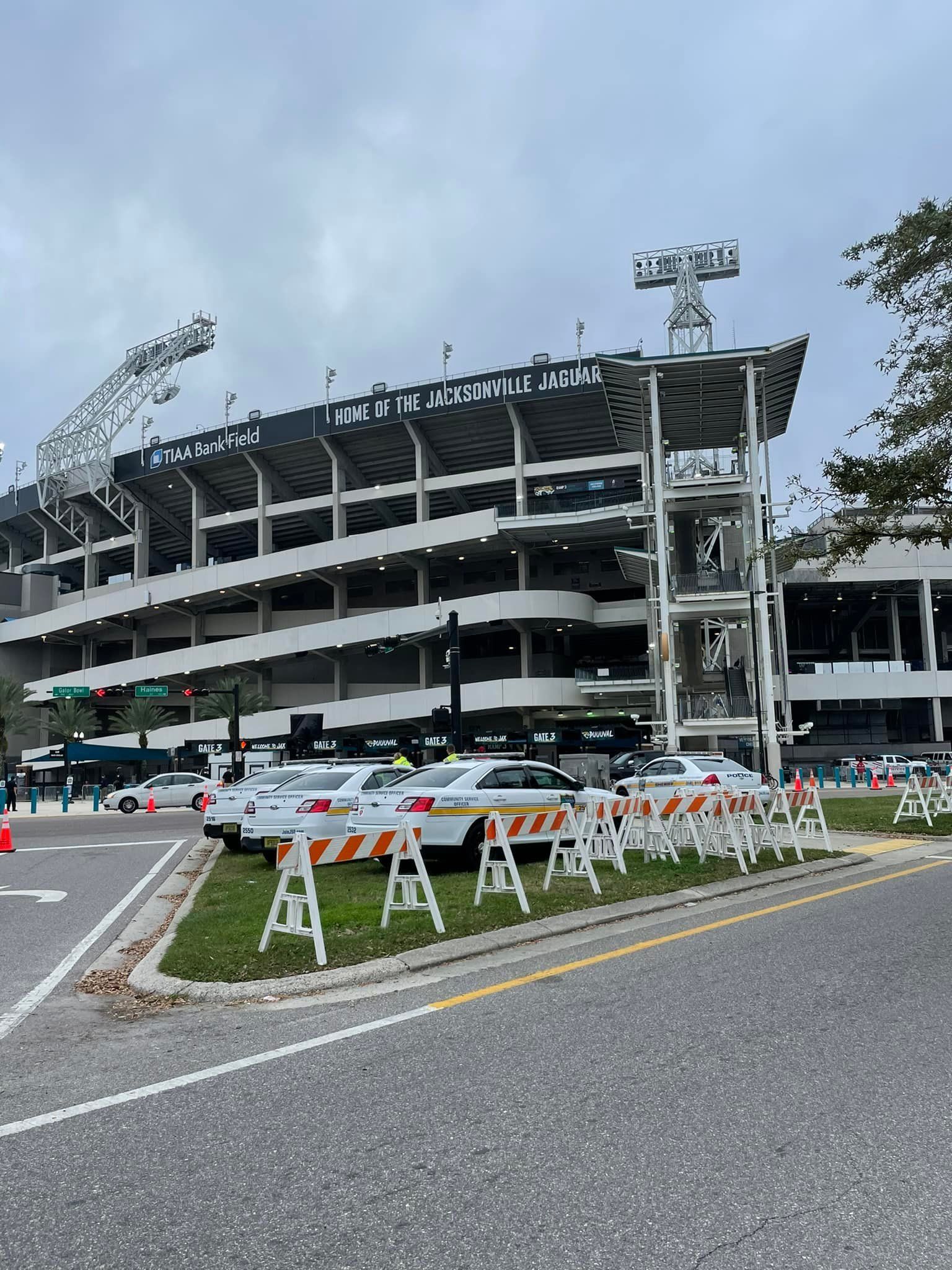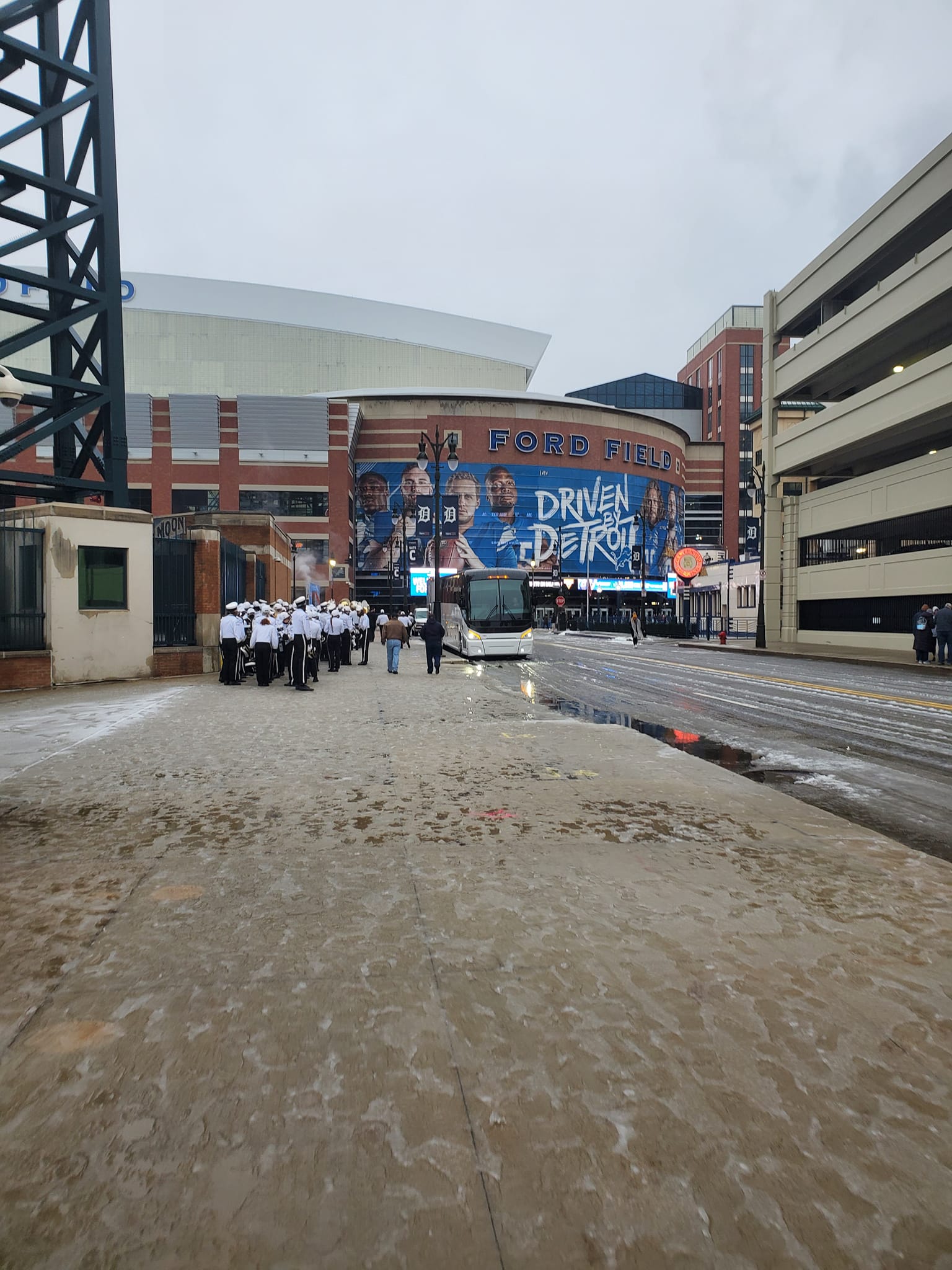 Game Day at Lucas Oil Stadium required locating at 5:00 PM Monday to the intersection of S. Capital Avenue and W. South Street in front of the stadium.