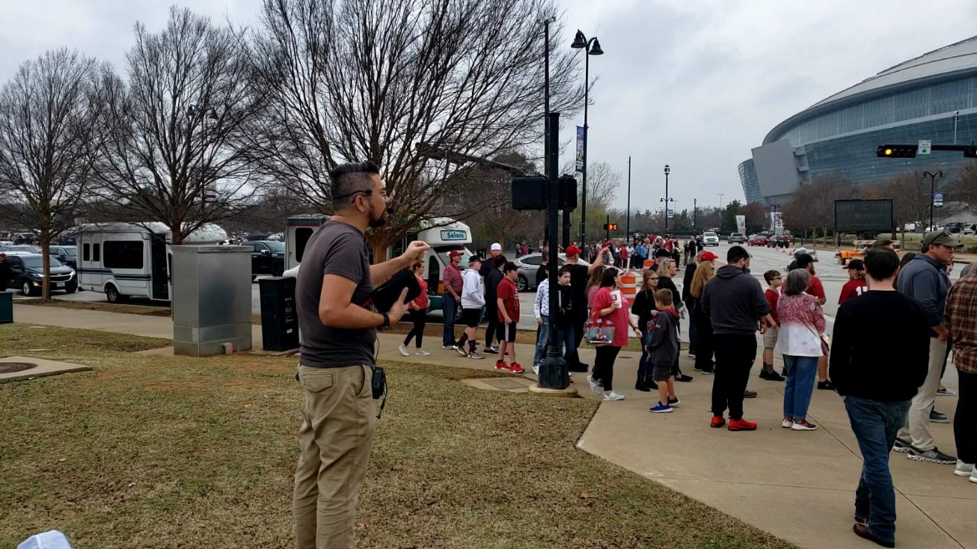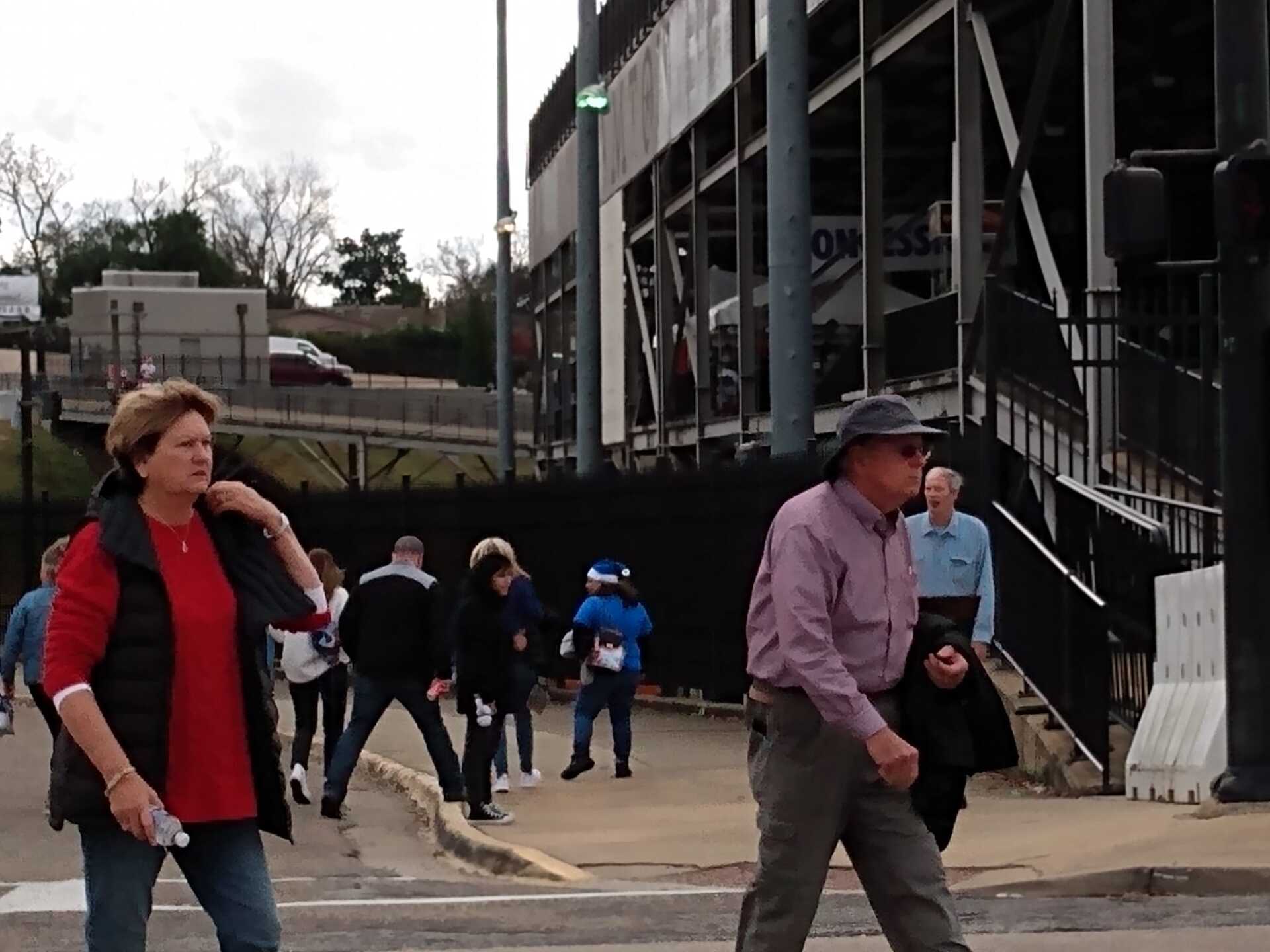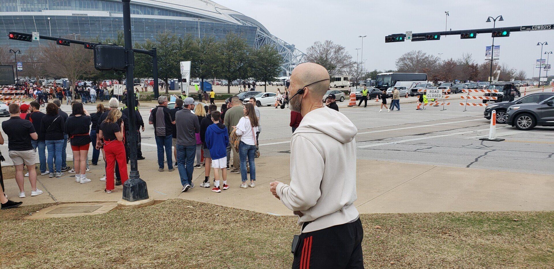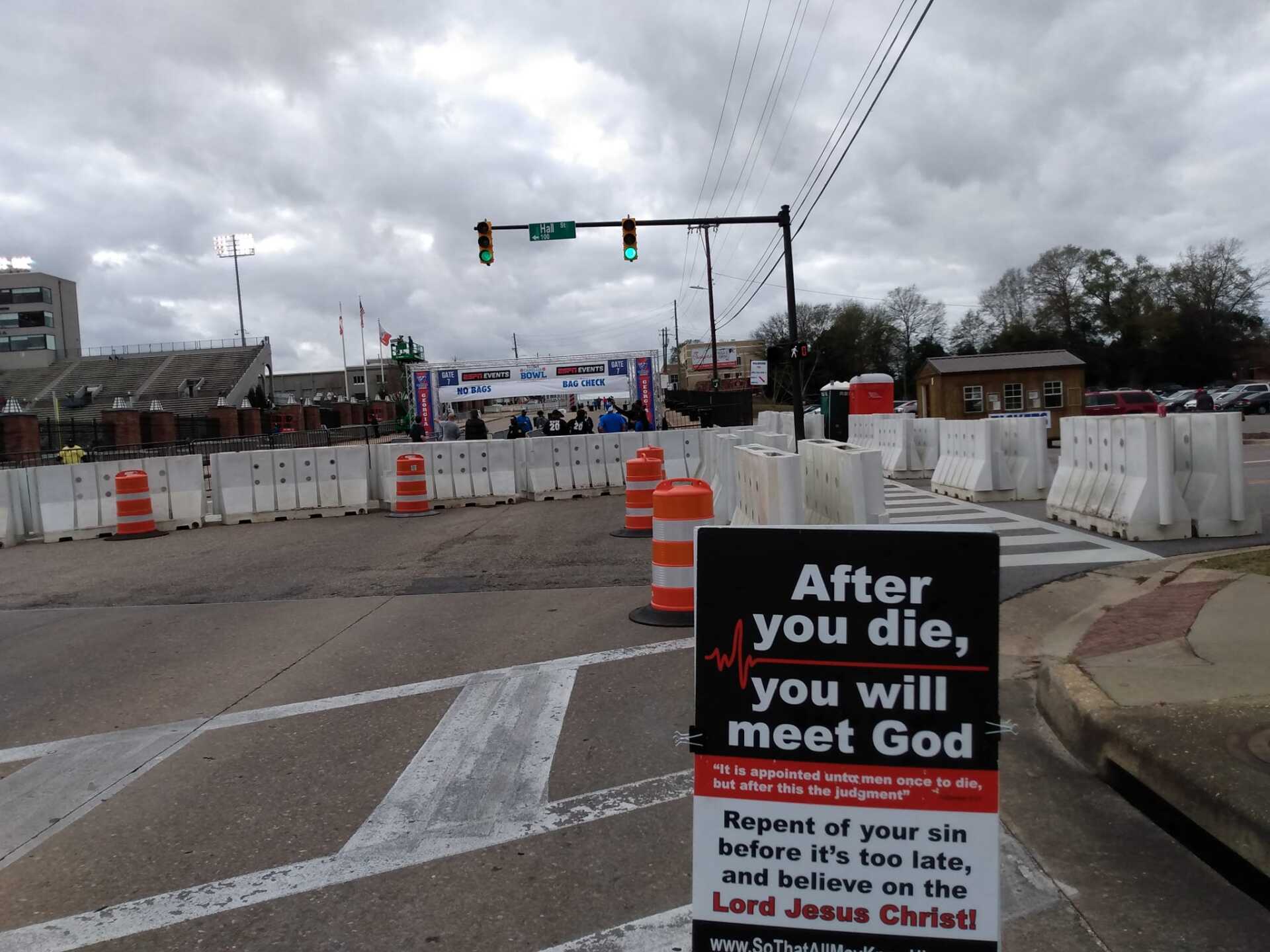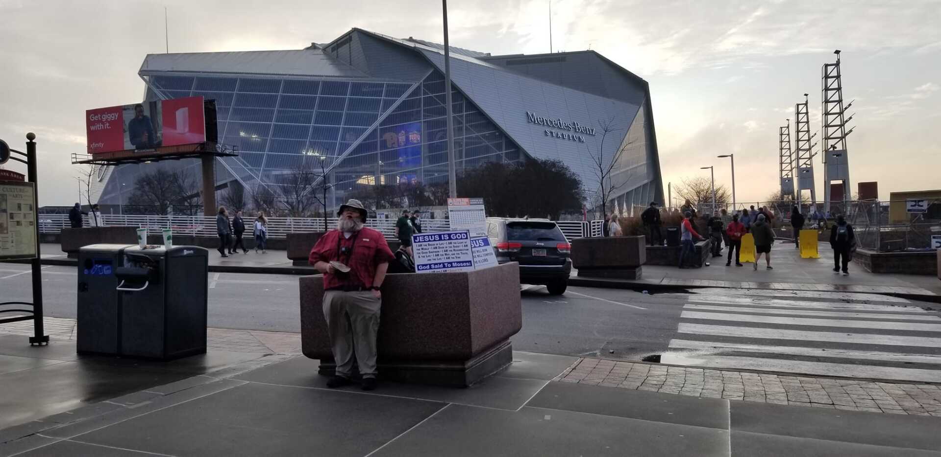 It was about 45 minutes before kickoff that we noticed that a substantial crowd had accumulated around the “C” ticket gate. That large group of fans allowed us to be able to do a bit of open-air preaching. Mike and I began by singing our a cappella rendition of “O Come, All Ye Faithful”. From there, I transitioned to reading the account of our Savior’s birth from Luke 1:39-56; Luke 2:1-20. I concluded by open-air preaching the gospel. Mike also open-aired the gospel to wrap today’s outreach. We both enjoyed a series of short gospel conversations throughout the outreach.