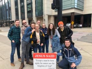 Praise the Lord for a fruitful weekend in Indianapolis last Saturday - Monday for the College Football Championship. Five of us labored for 8 hours each day amongst thousands of fans and local citizens. Below is the team. Left to right: